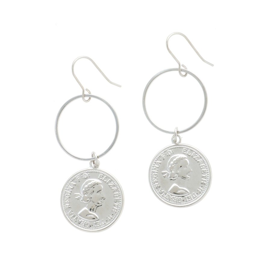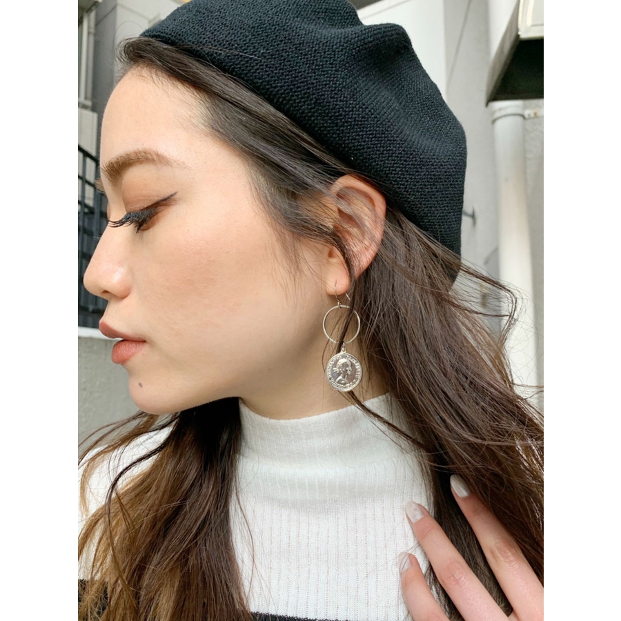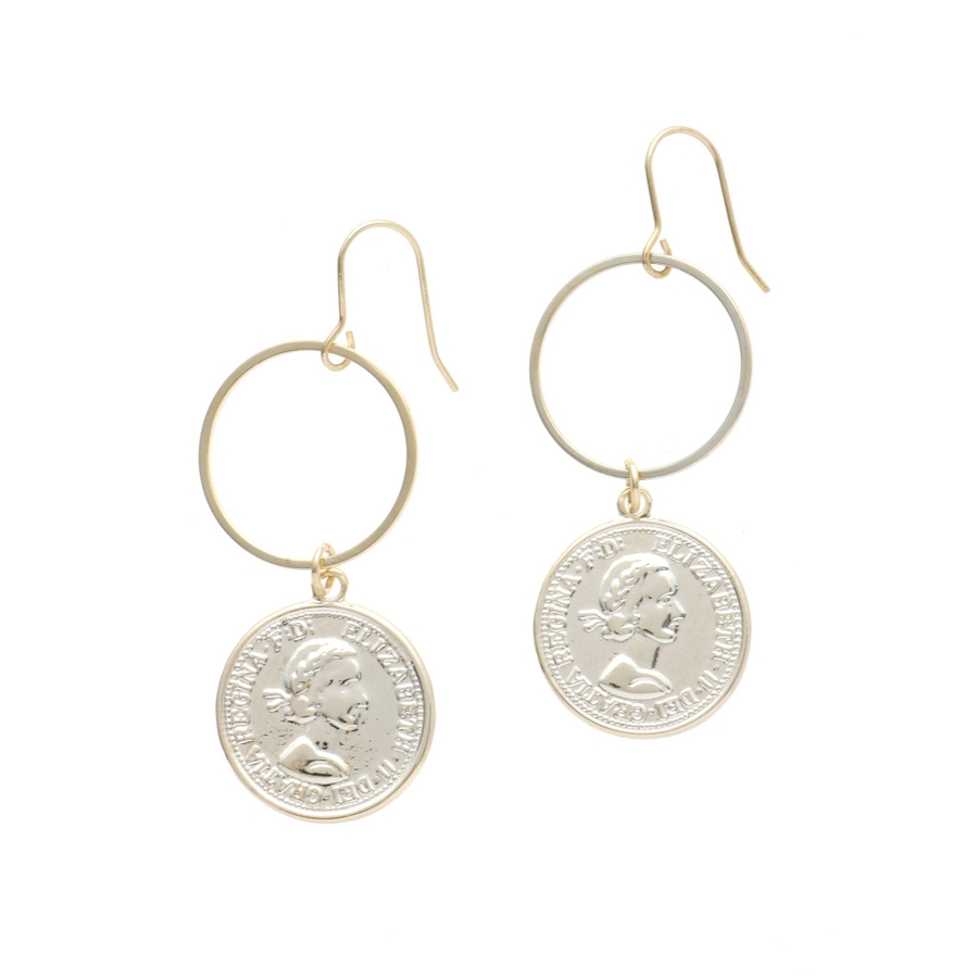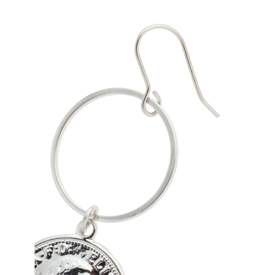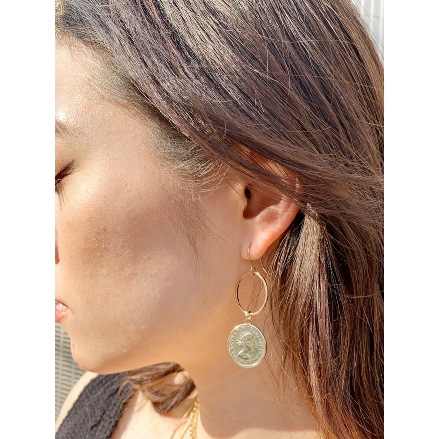 コインTOPが付いた小ぶりなサークルピアスです。揺れるモチーフが涼しげでこれからの季節に◎