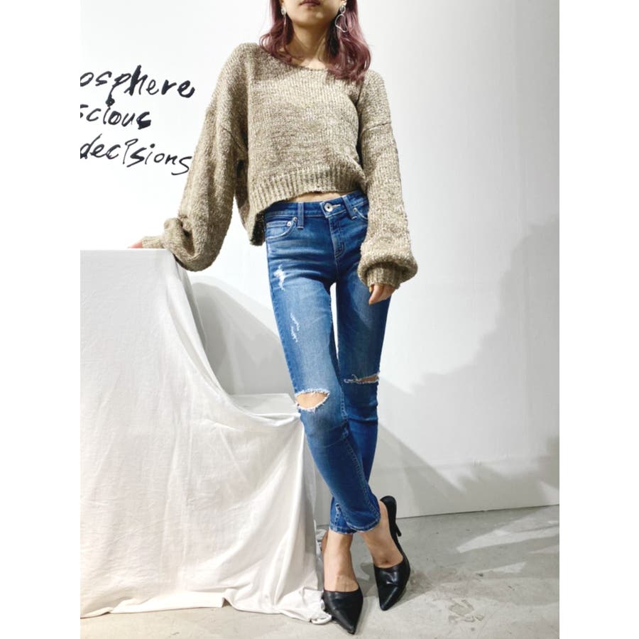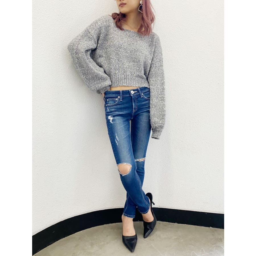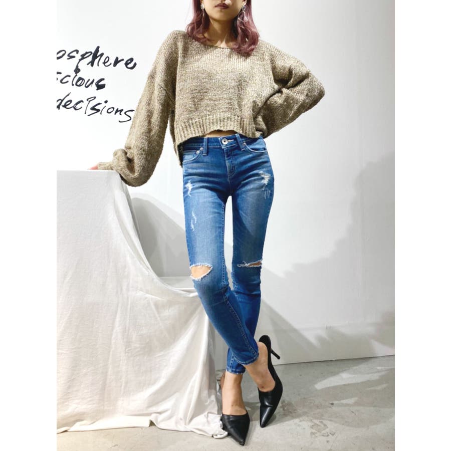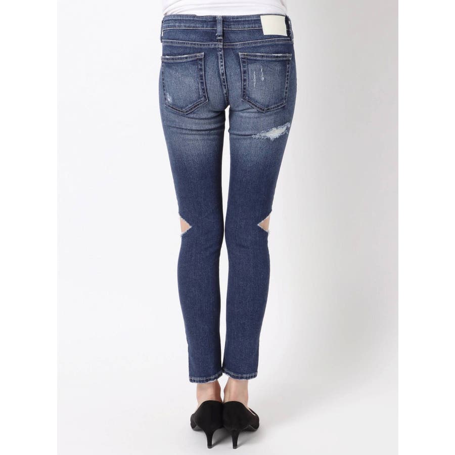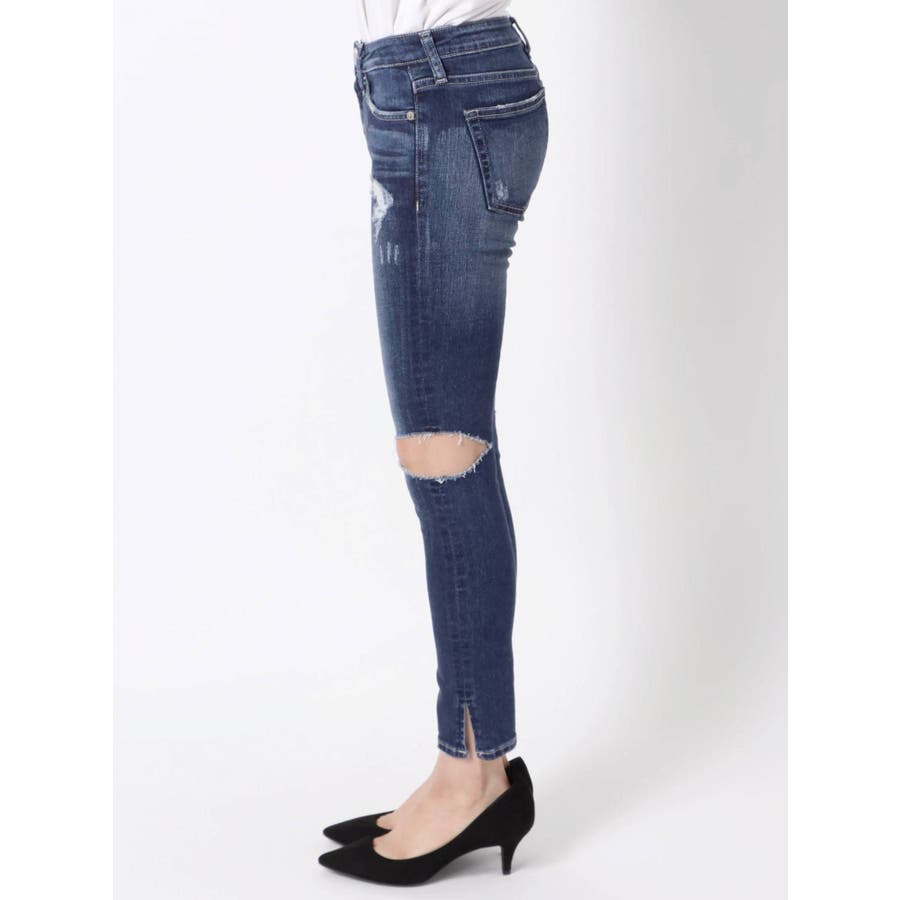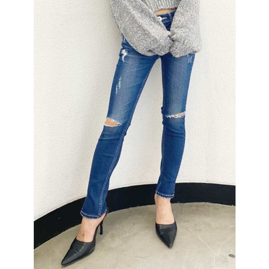 SIDE KNEE RIPPED スリットスキニーデニムパンツ