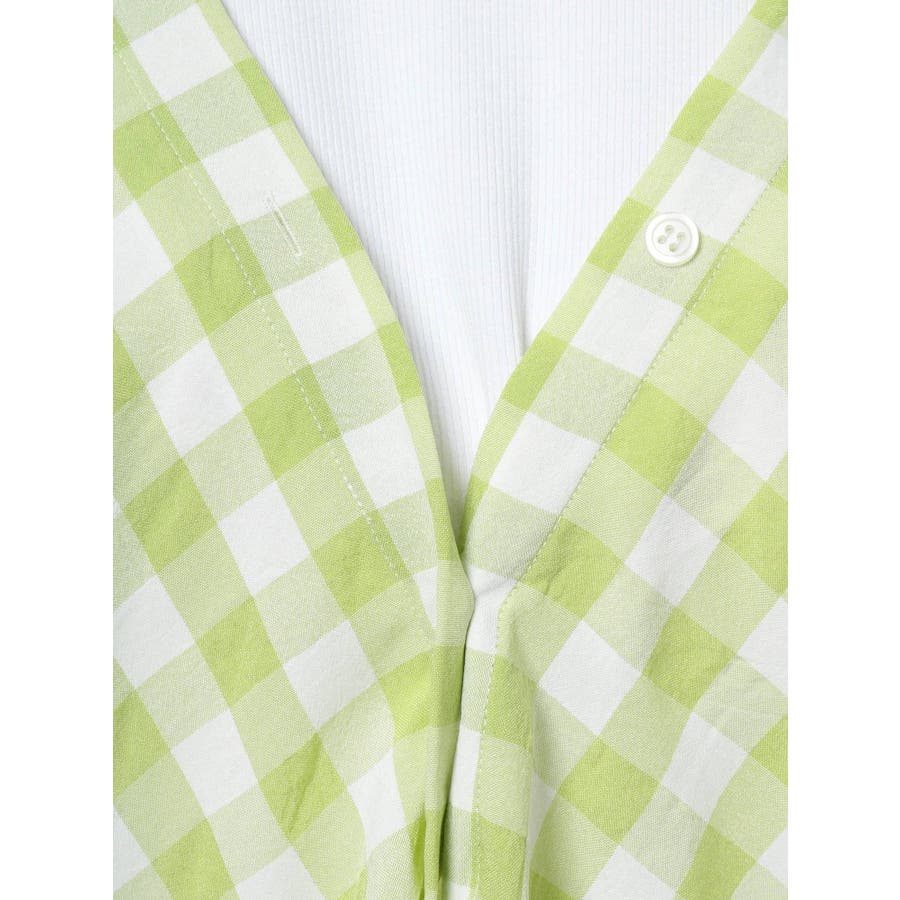 【ミントグリーン】ギンガムチェックドッキングシャツ