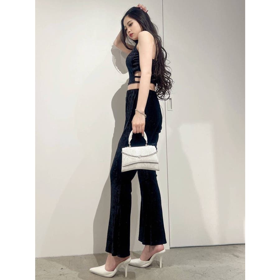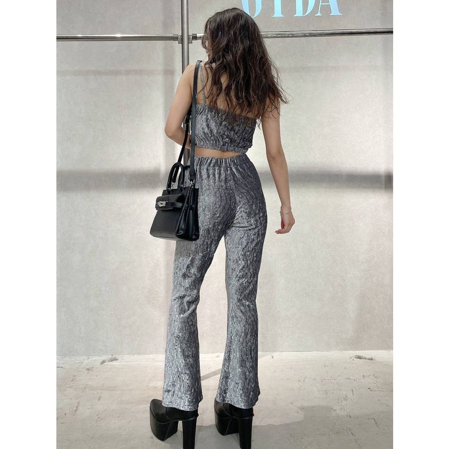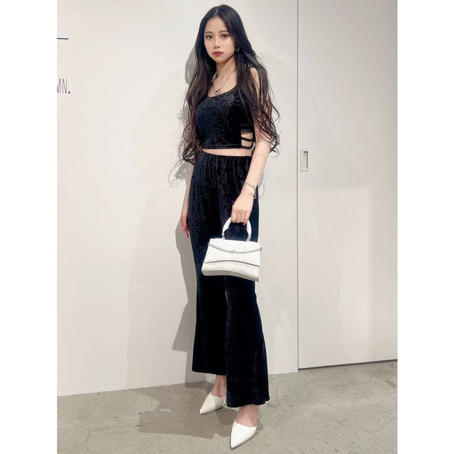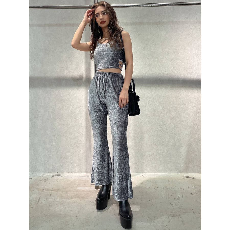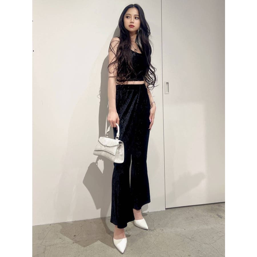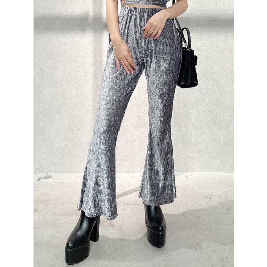 【セットアップ】サイドスリット ベロアプリーツパンツ