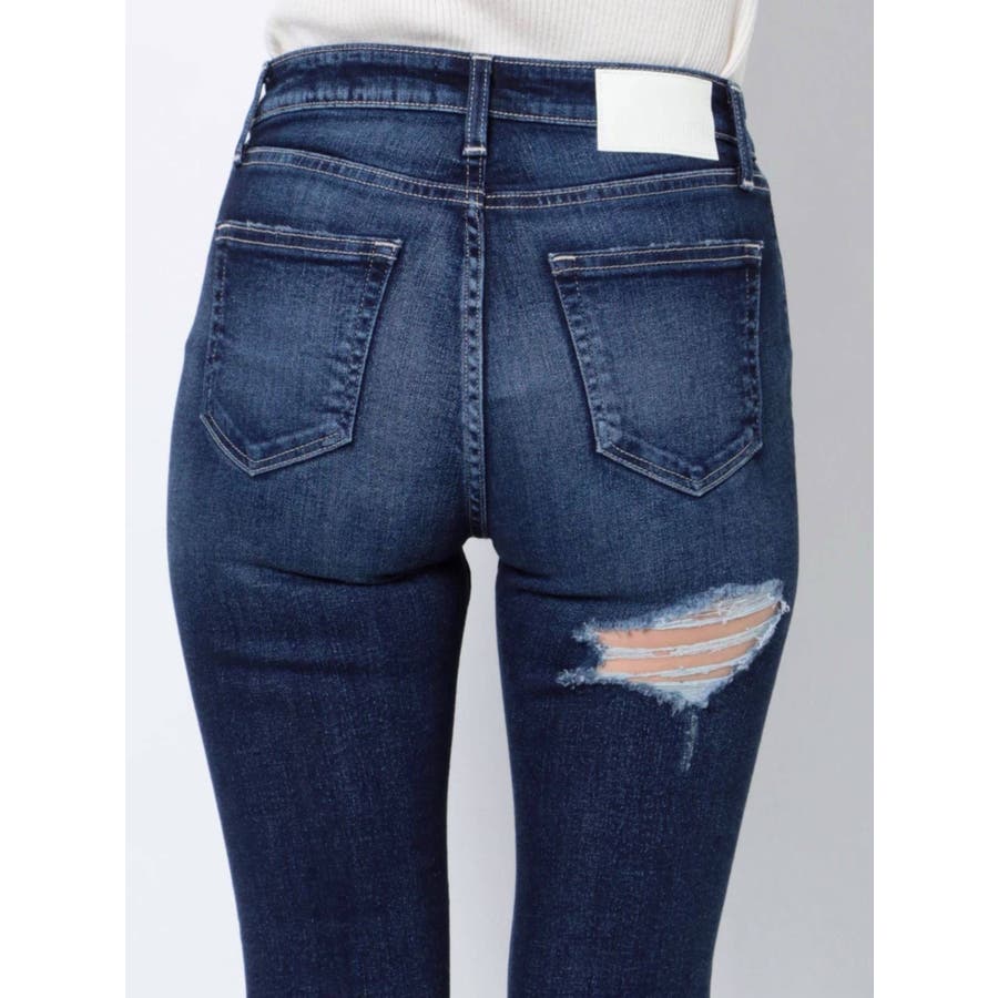 少し細身で後ろにヒップダメージ入っててめちゃくちゃ可愛かった!買って正解でした!股上深めなのでお腹が目立たなかったです!