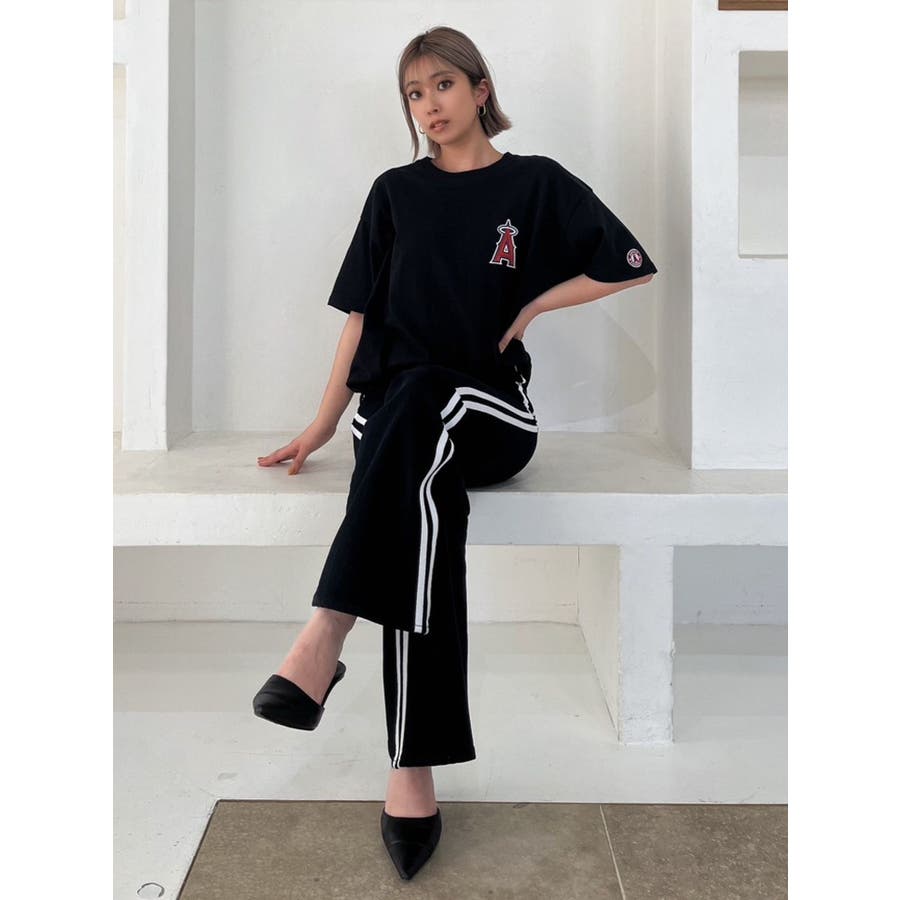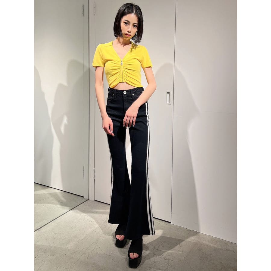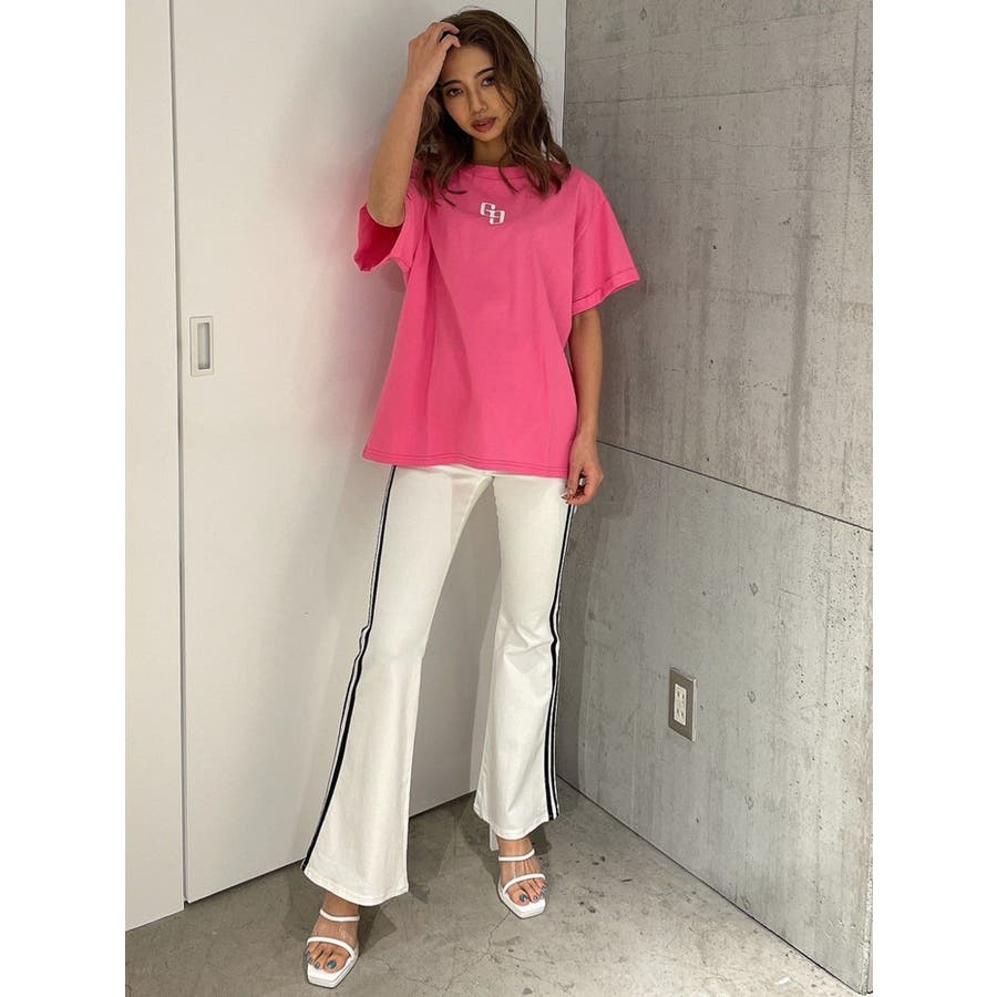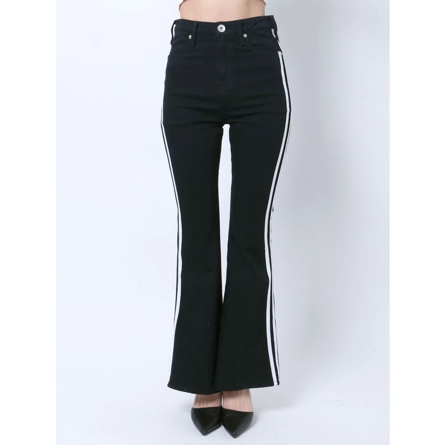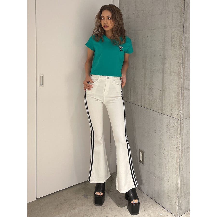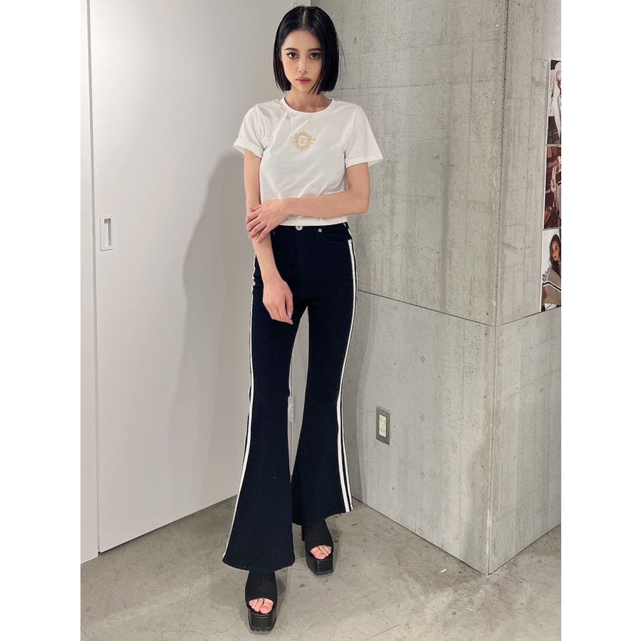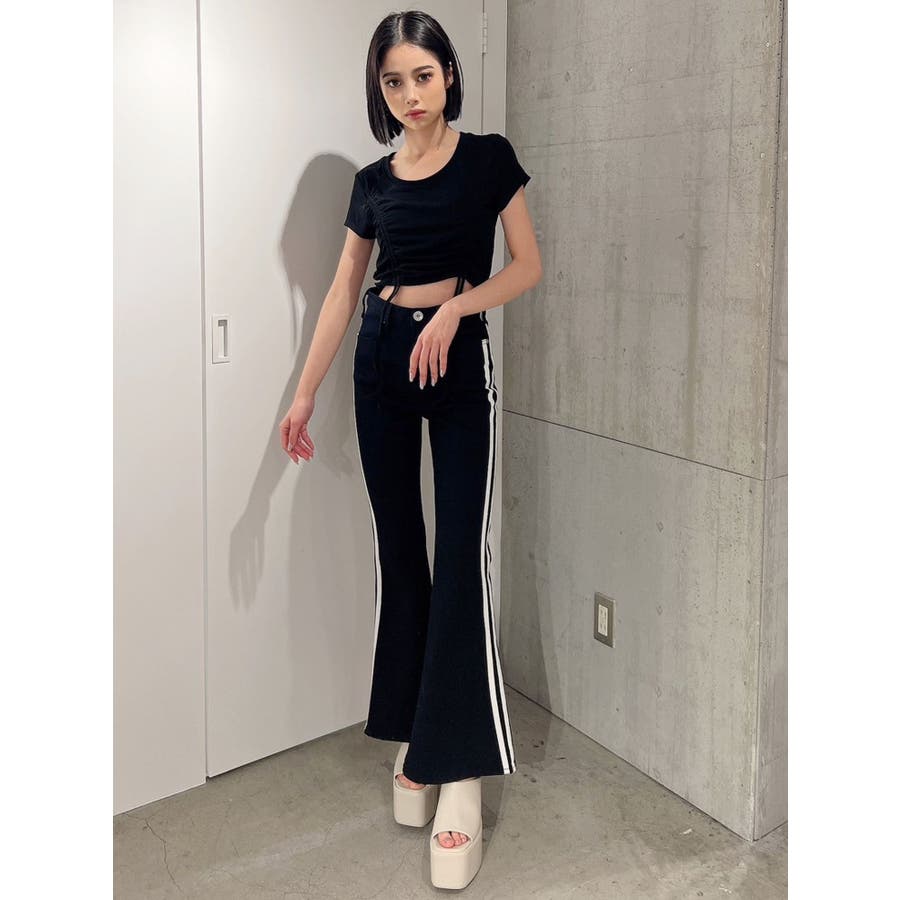 サイドにグログランテープの2本デザインを施したスポーティーのフレアパンツです。