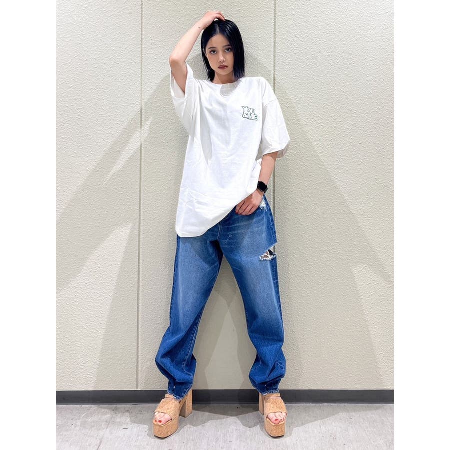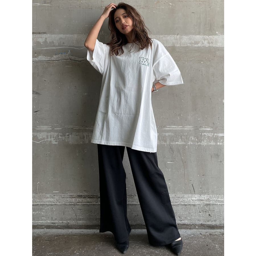 商品コメント: GYDA×みちょぱコラボ商品。 UNISEX着用できるオーバーサイズスペックのTシャツはカラーの配色に拘った1枚。 前は刺繍で、後ろはラバープリントで施しています。 後ろのロゴ位置も少し低めの位置がポイント。 ロゴ意味【前後ろリンクの意味で、あなたと私の物だから、借りちゃった】みたいな意味合い コーデ: ハーフレギンスでワンピースっぽくスポーティーにスニーカー合わせや、デニムにINするスタイリングがおススメです。