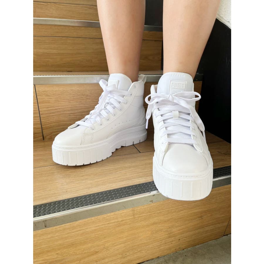 商品コメント:贅沢で光沢感のあるレザーと、印象的な足元を演出する厚底ソールが、エネルギッシュながらフェミニンな印象をあたえるスニーカーです。歩きやすさも残しながら、厚底のソールによってスタイルアップできるのが魅力。グリップ力とクッション性が高く、安定した履き心地で疲れにくいのが嬉しいポイントです。おしゃれを楽しめる一足に仕上げました。 [素材]天然皮革+人工皮革+合成繊維、ゴム底