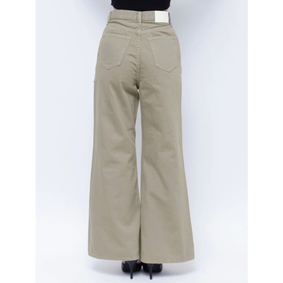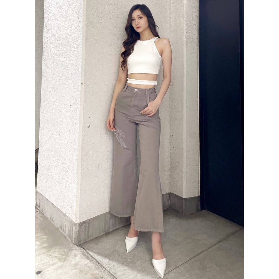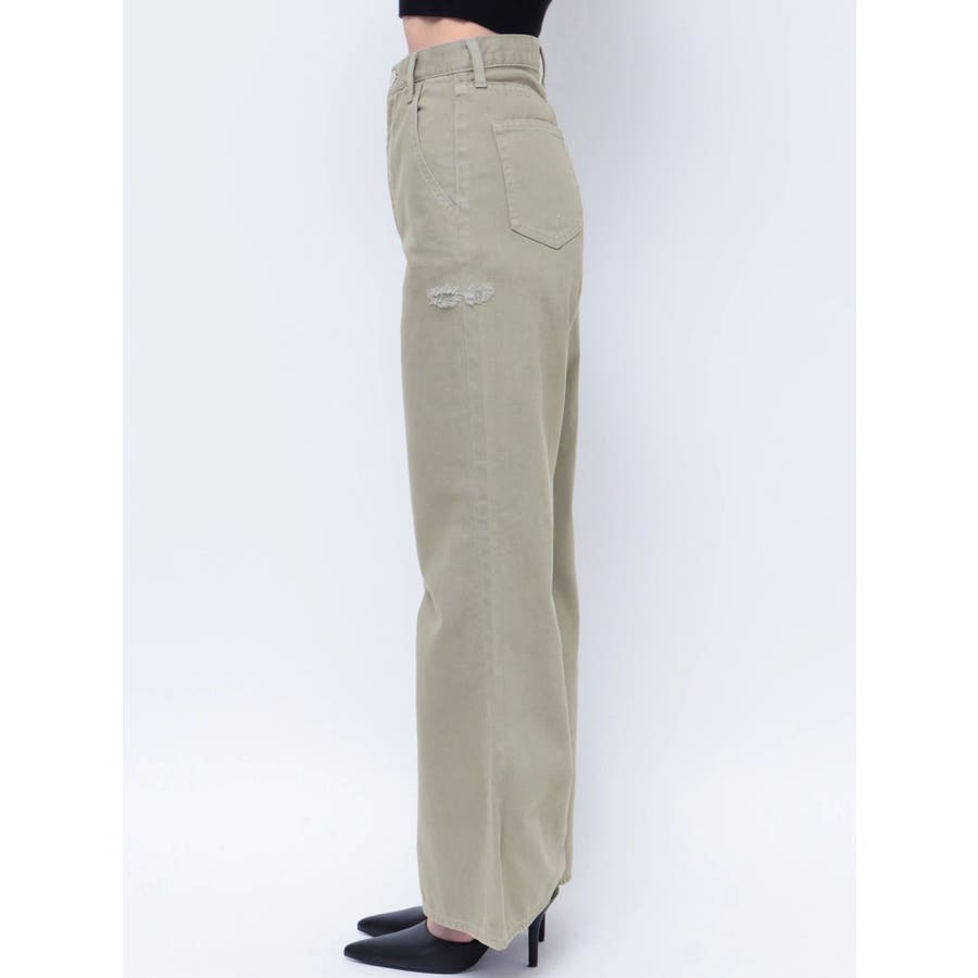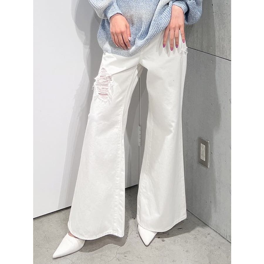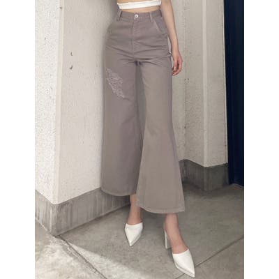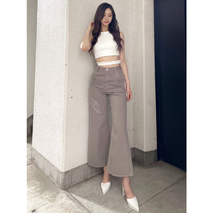 ハイウエスト ダメージカラー ワイドパンツ