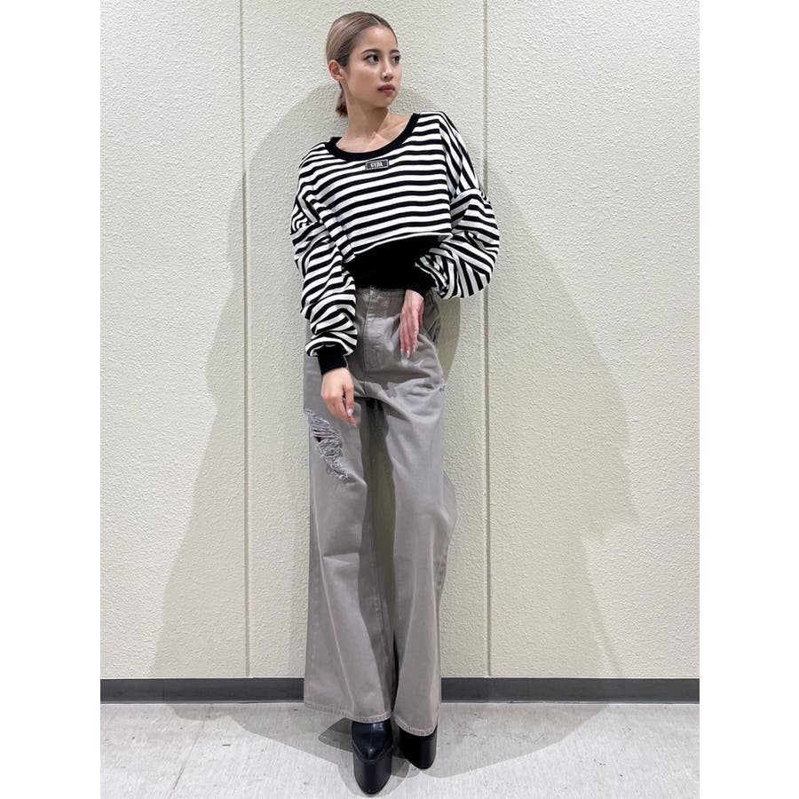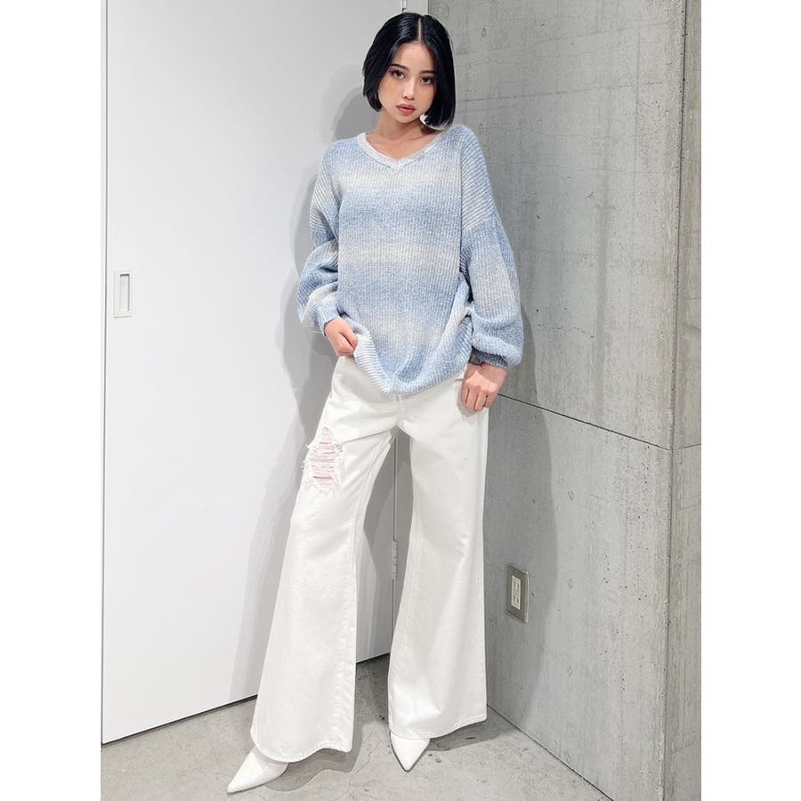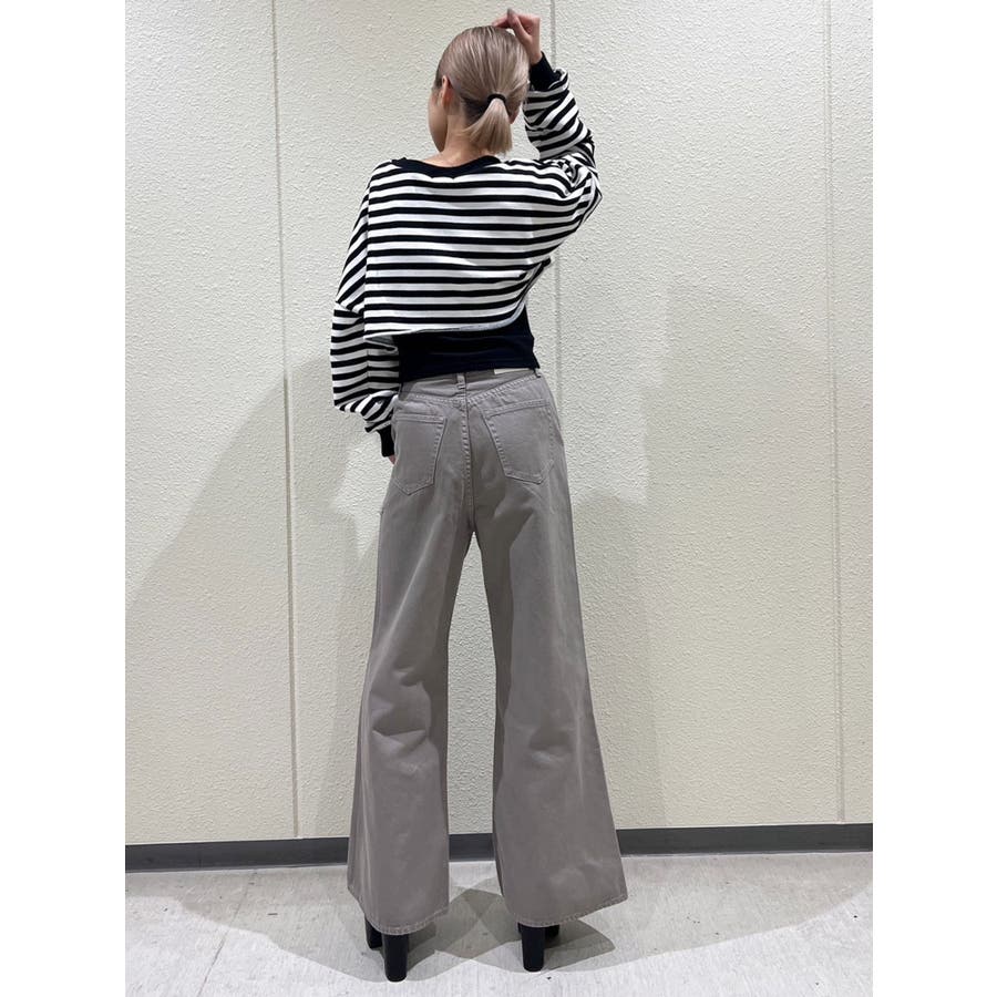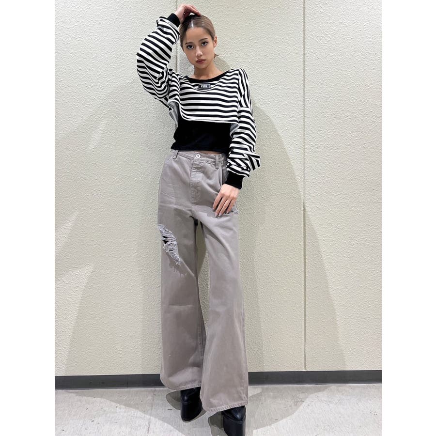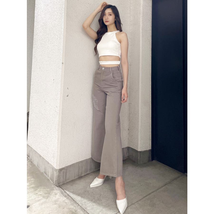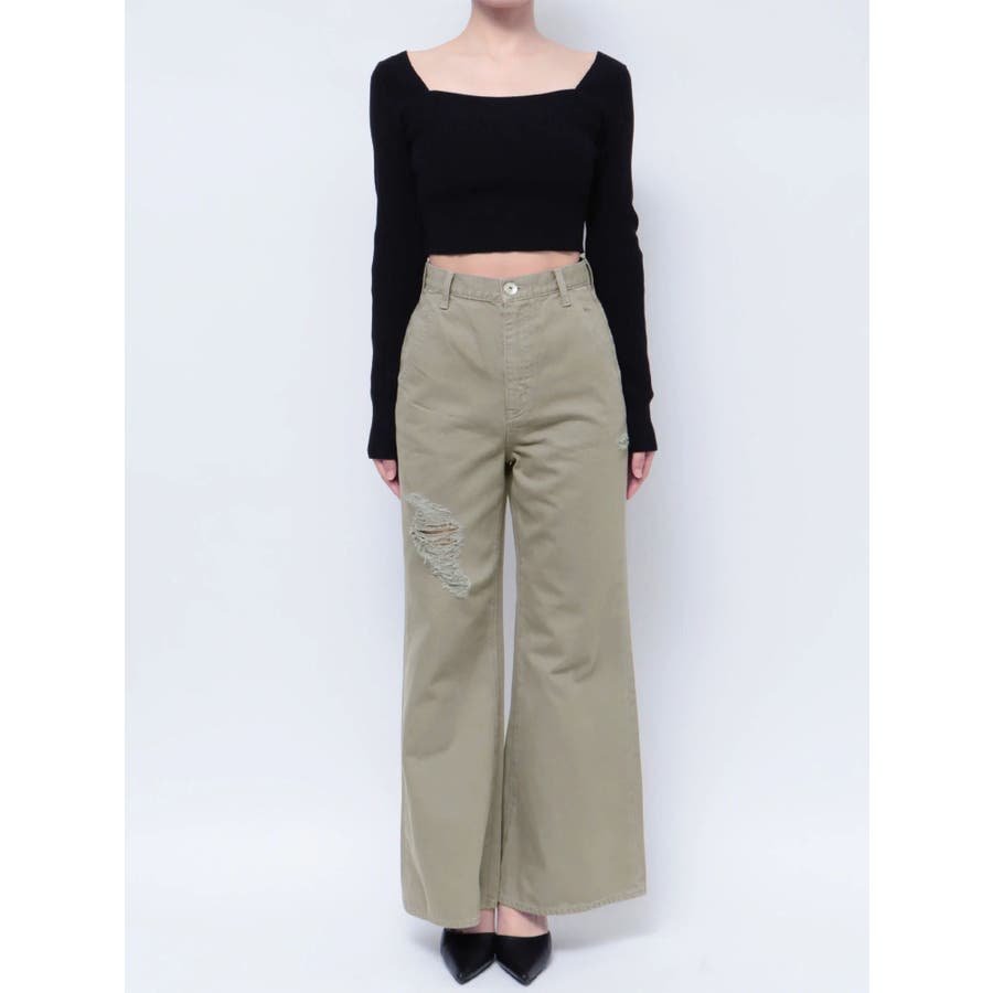 ハイウエスト ダメージカラー ワイドパンツ