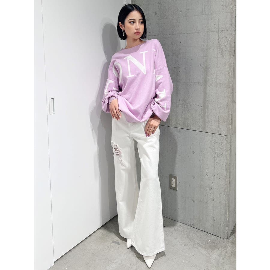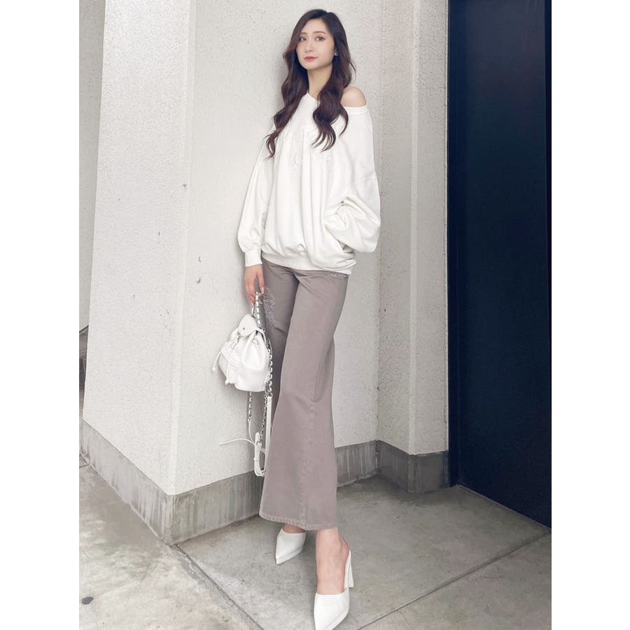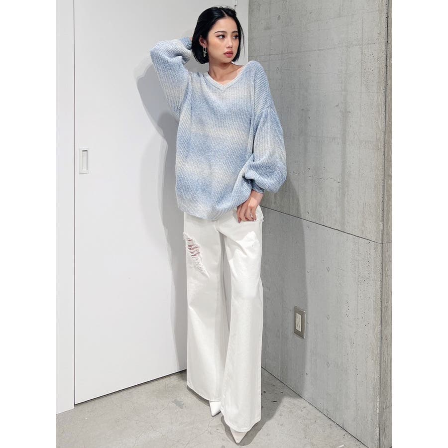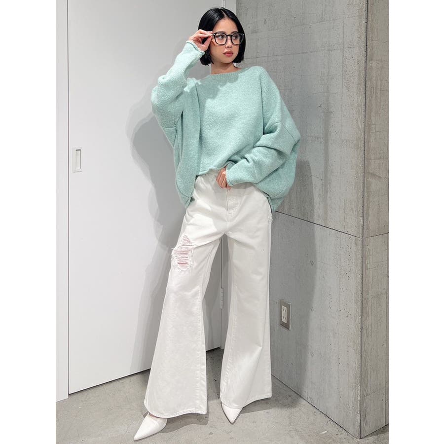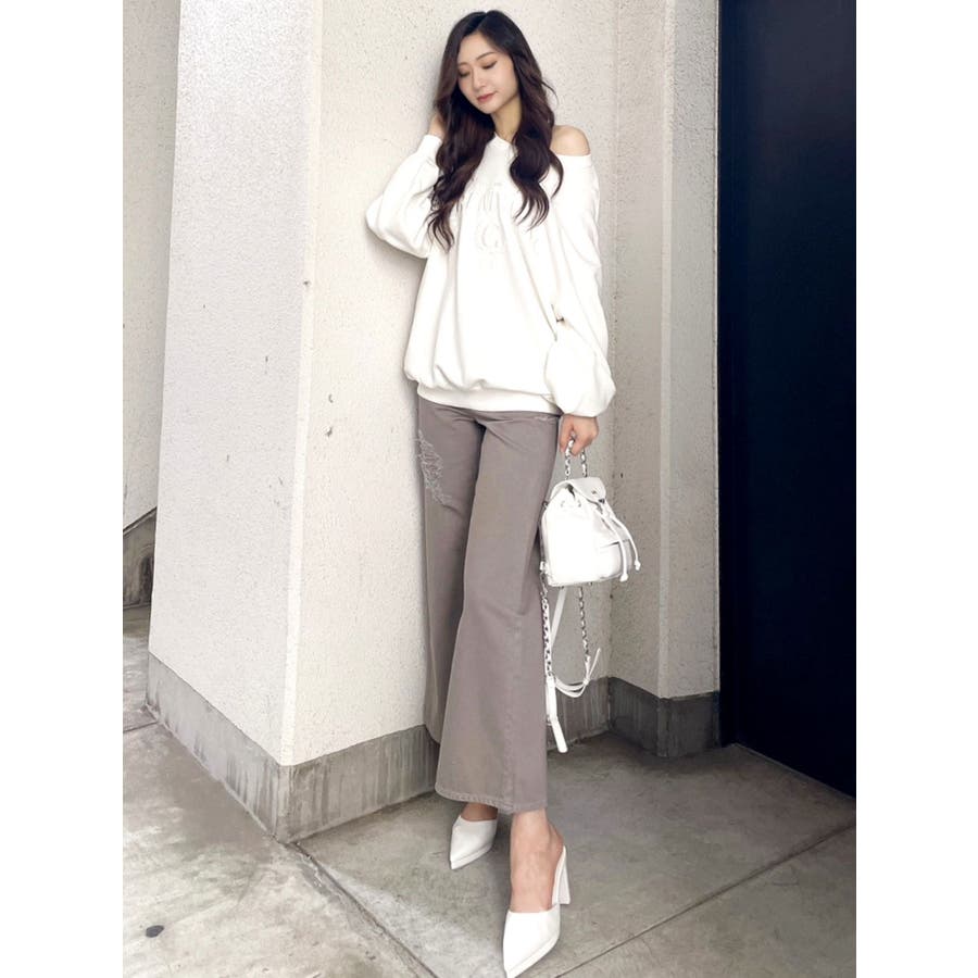 ハイウエスト ダメージカラー ワイドパンツ