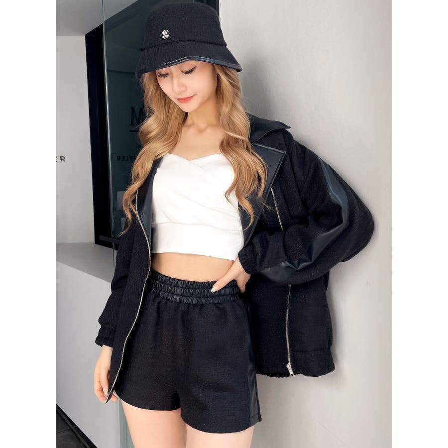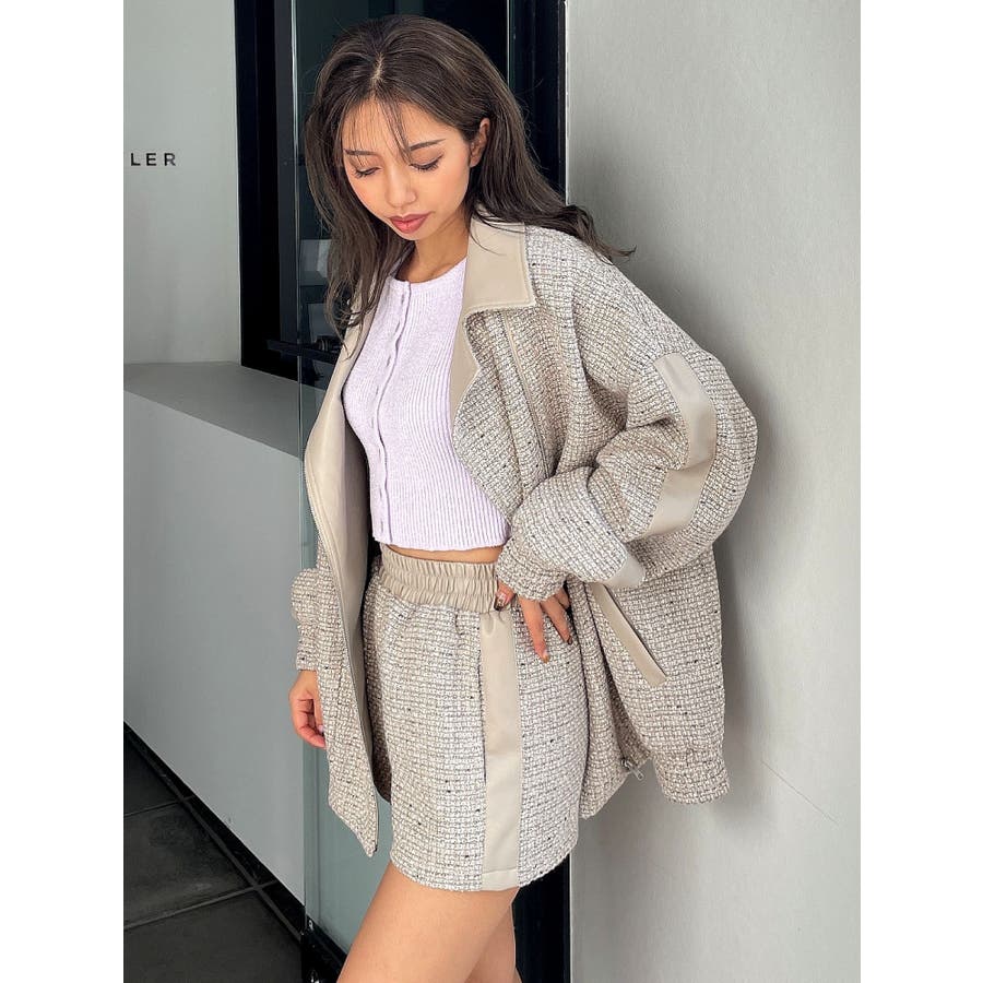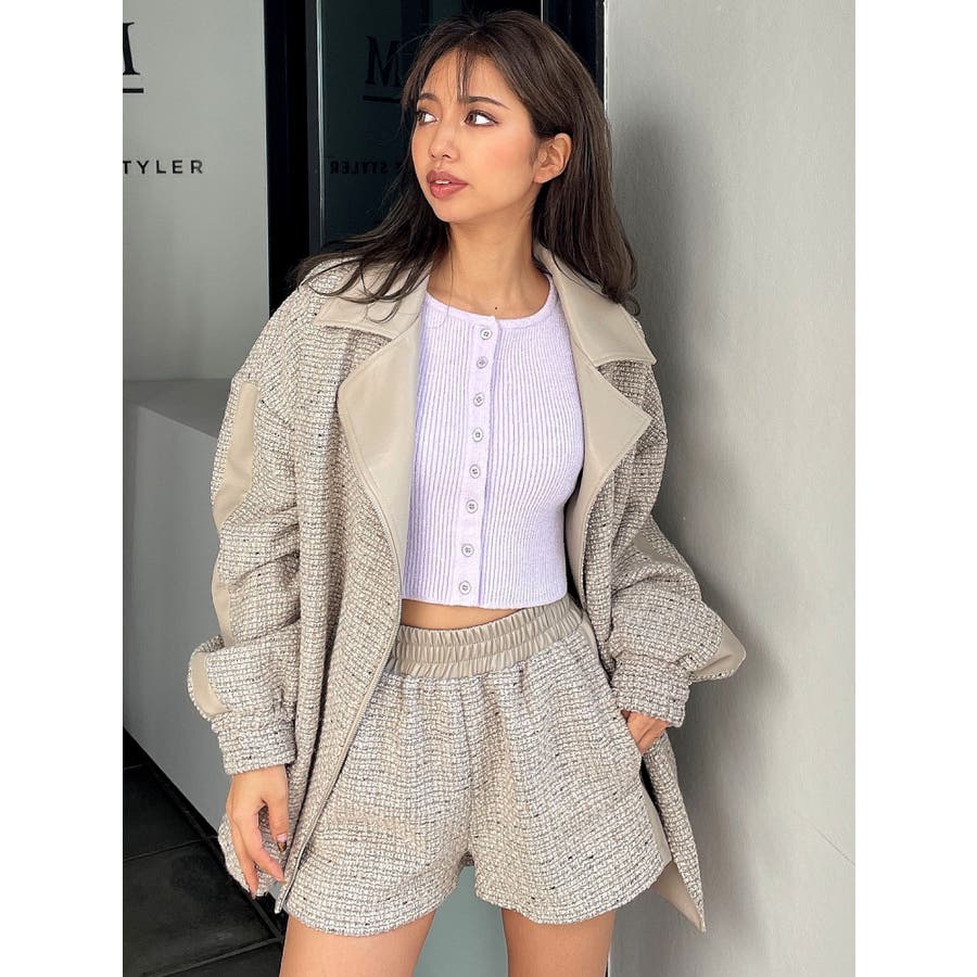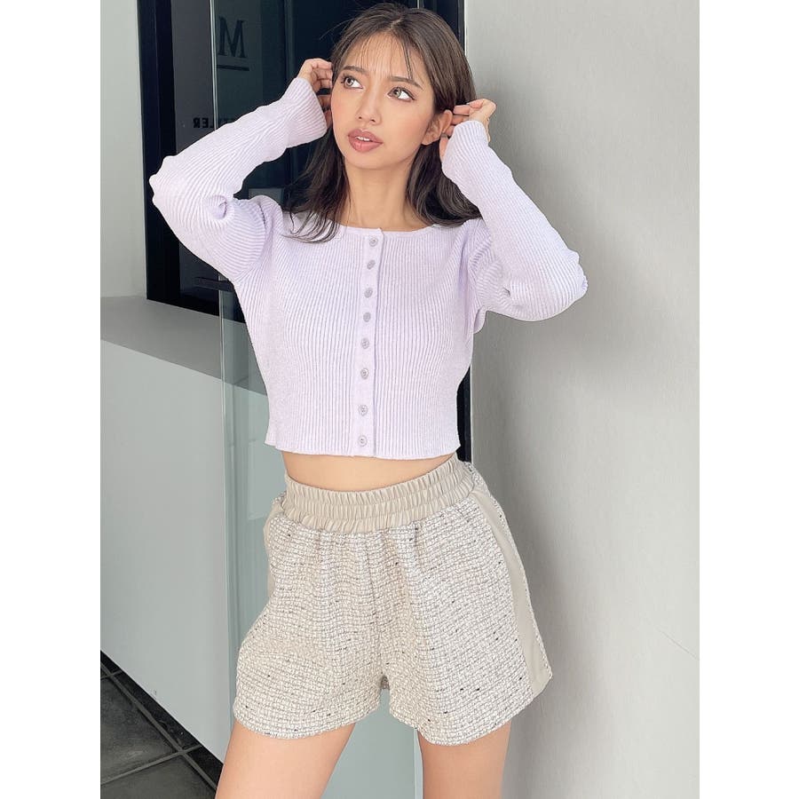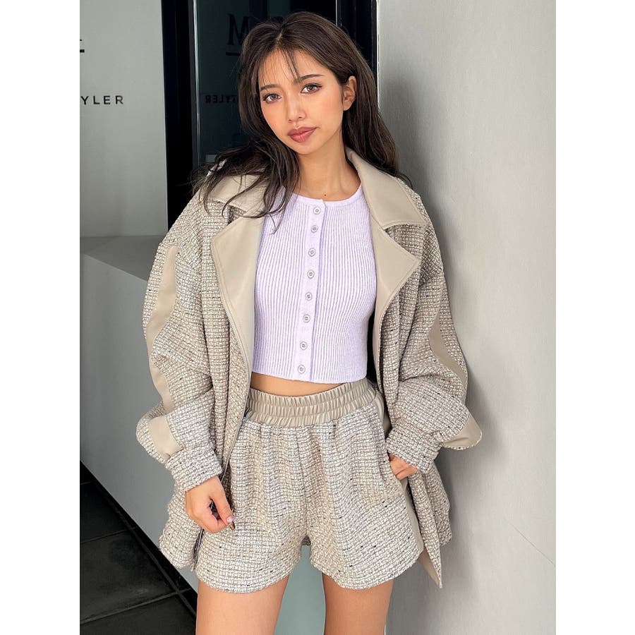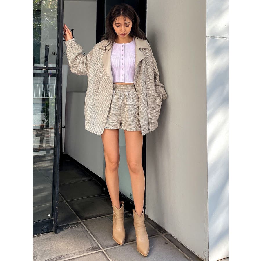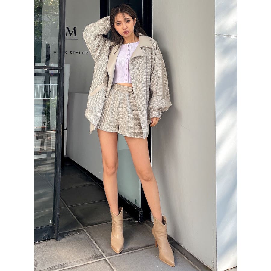 春ツイードに合皮の切り替えが春らしいショートパンツです。