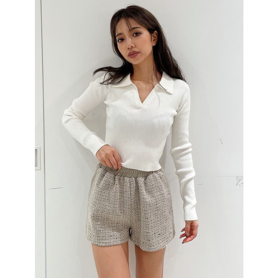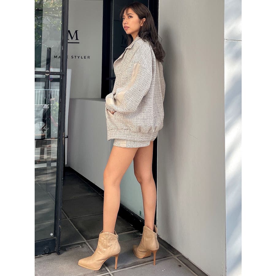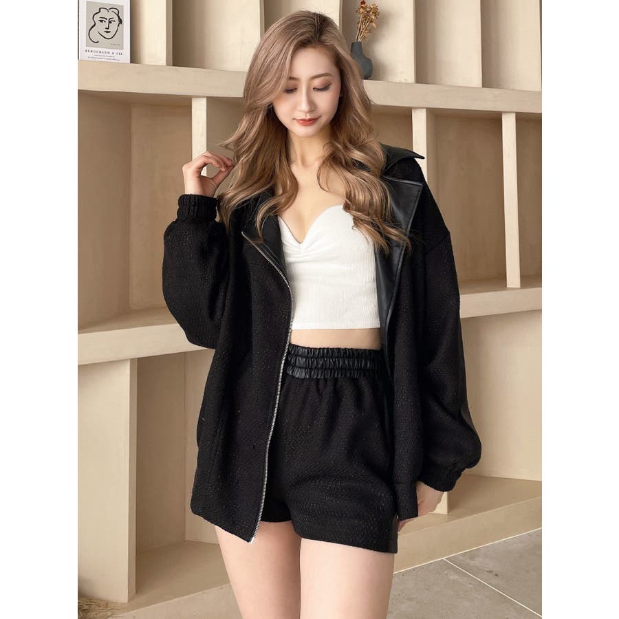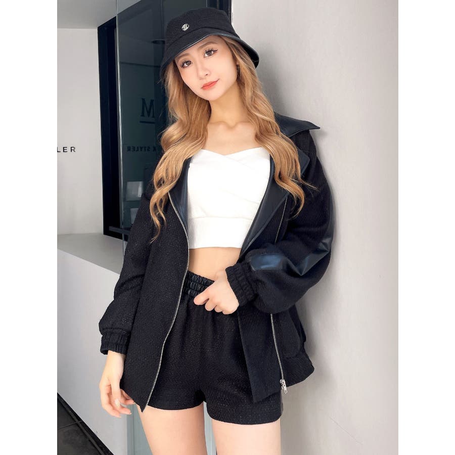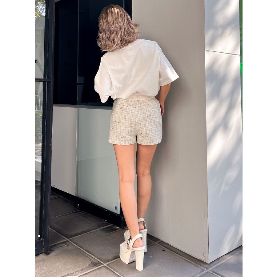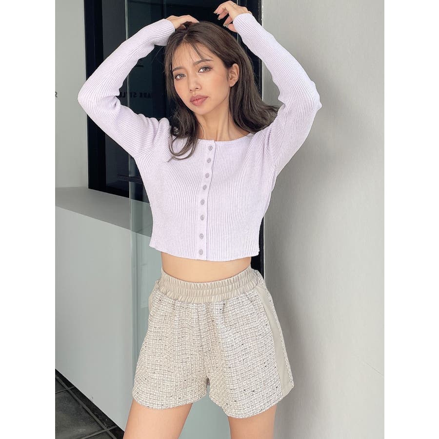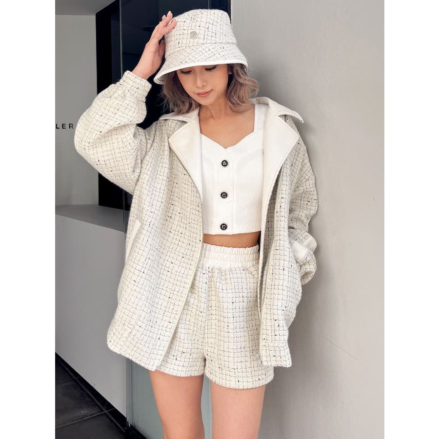春ツイードに合皮の切り替えが春らしいショートパンツです。