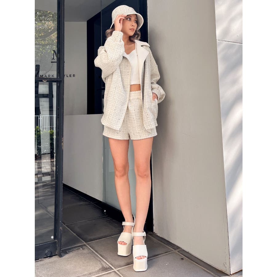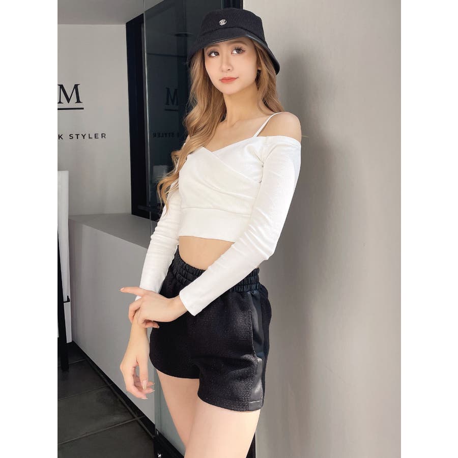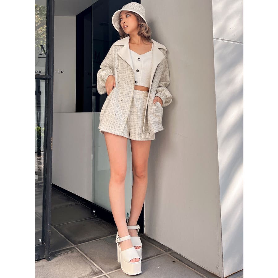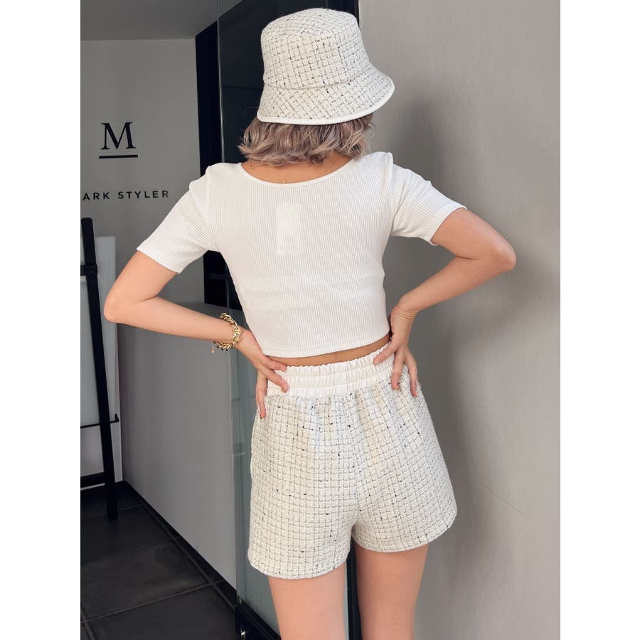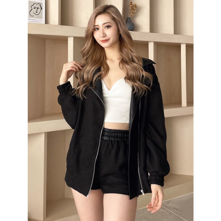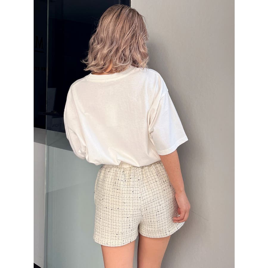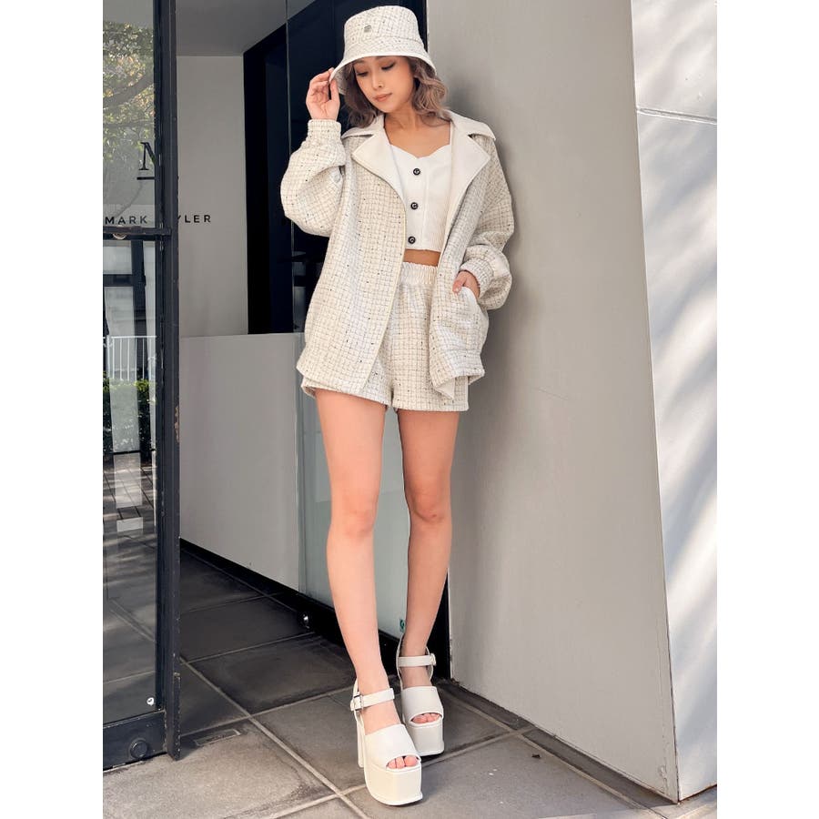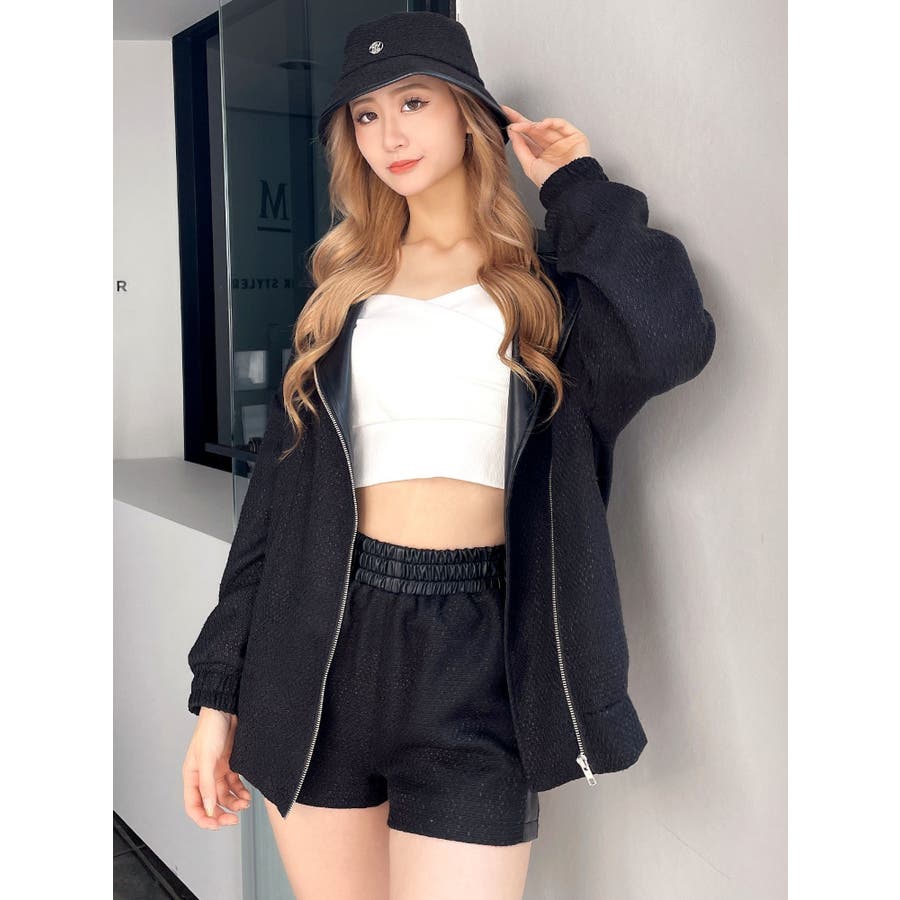 春ツイードに合皮の切り替えが春らしいショートパンツです。