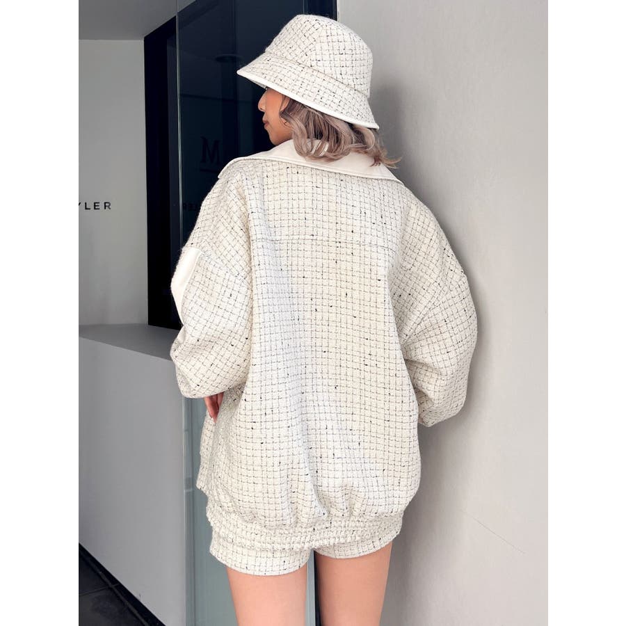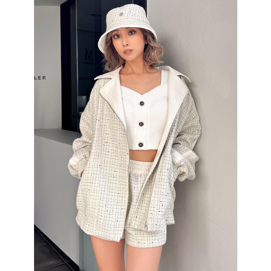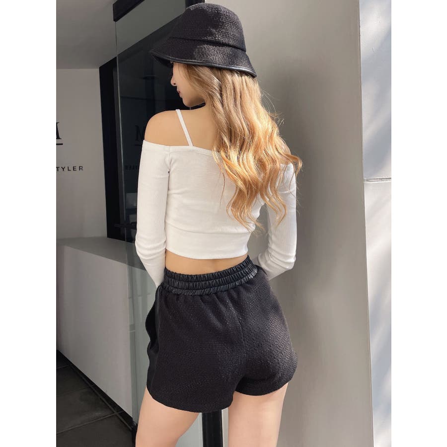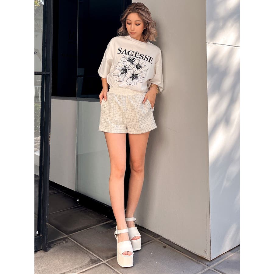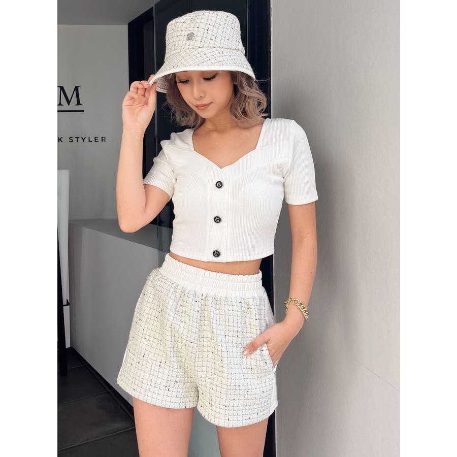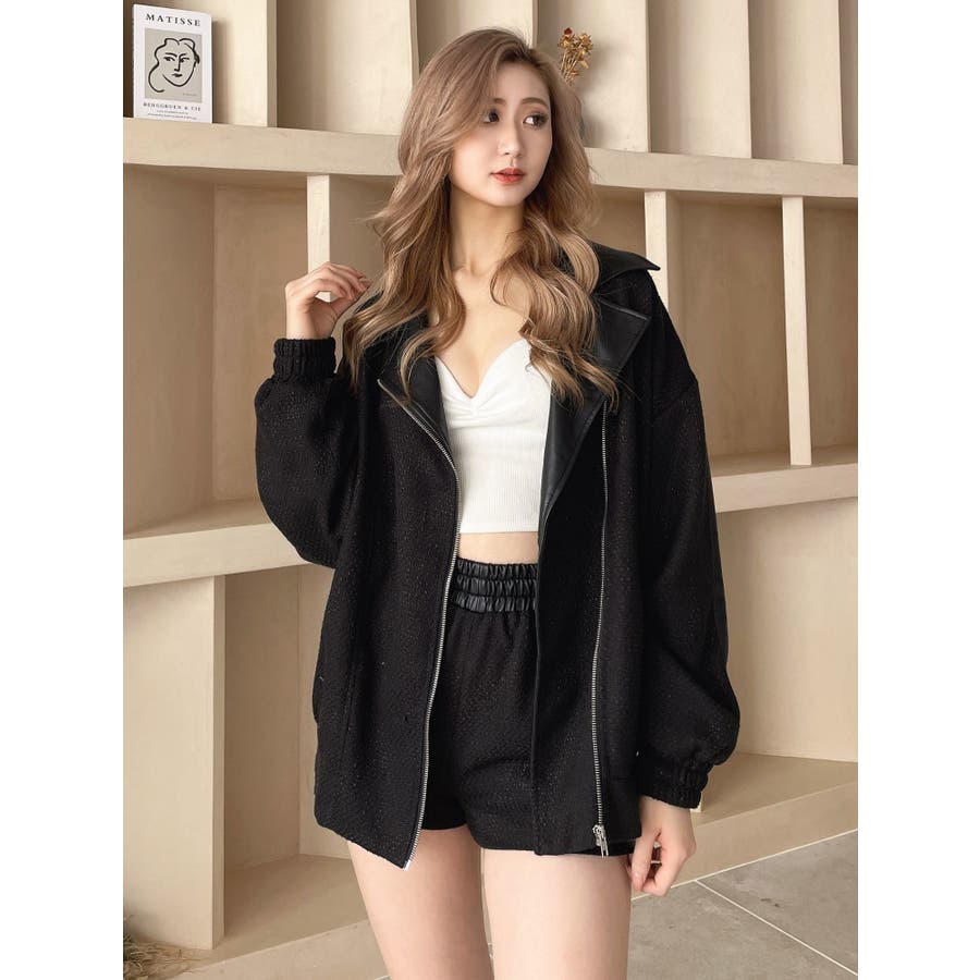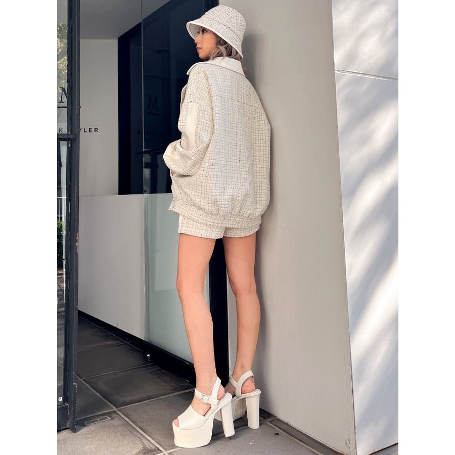 春ツイードに合皮の切り替えが春らしいショートパンツです。