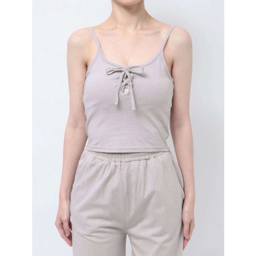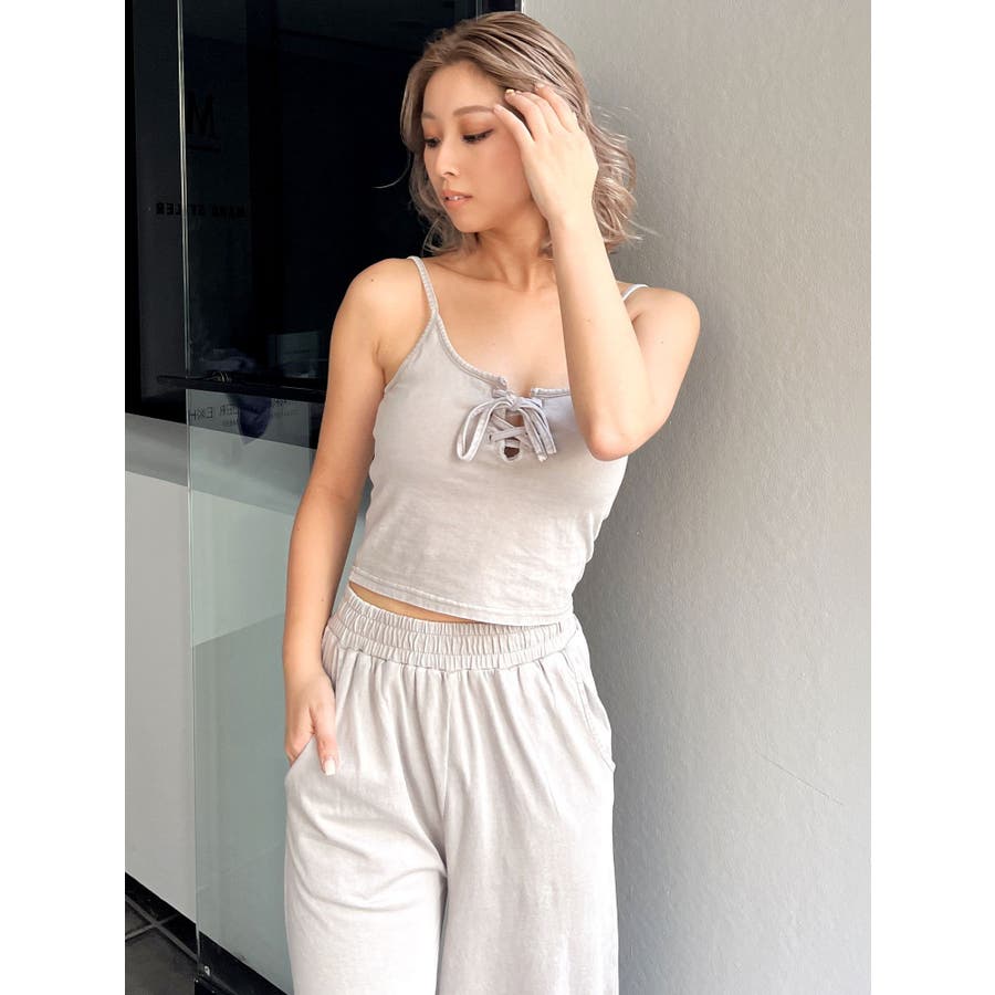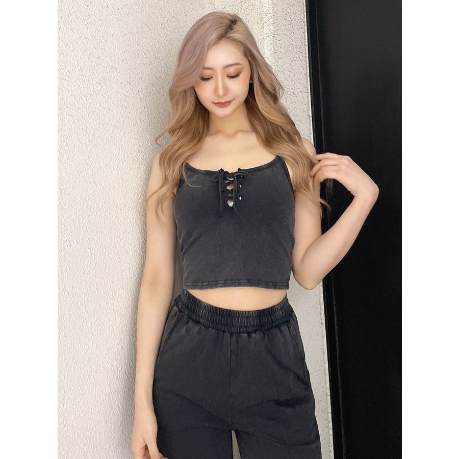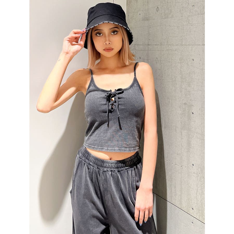 商品コメント:パウダー加工でしか出せない表面感に拘り、パッド入りでシンプルながらフロントにレースアップデザインをプラス。ヘルシーにGYDAらしいビスチェアイテムです。 コーデ:ブリーチワイドパンツとSETUPがマストです。