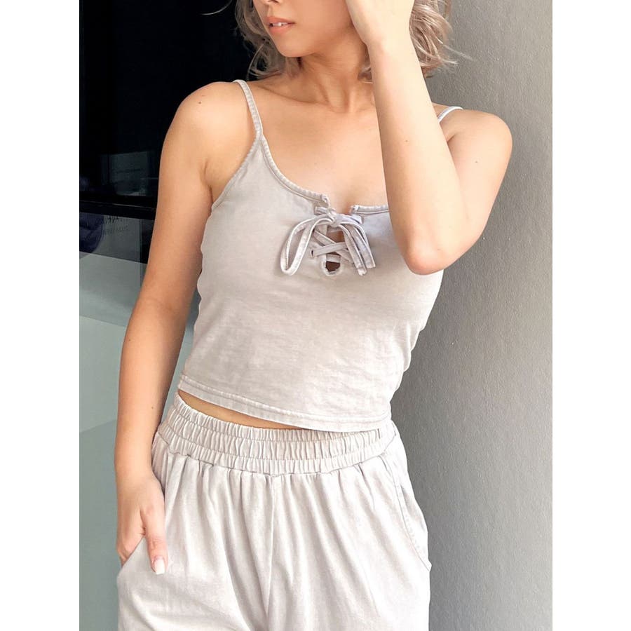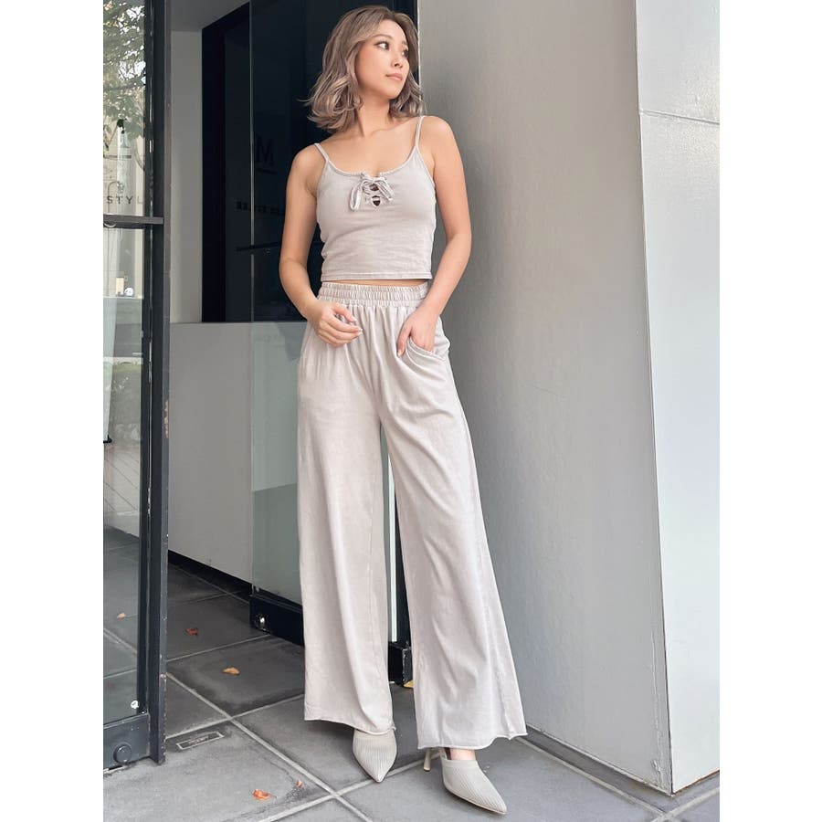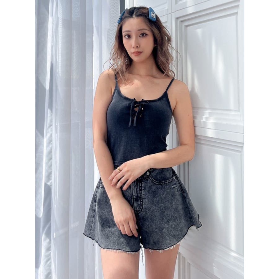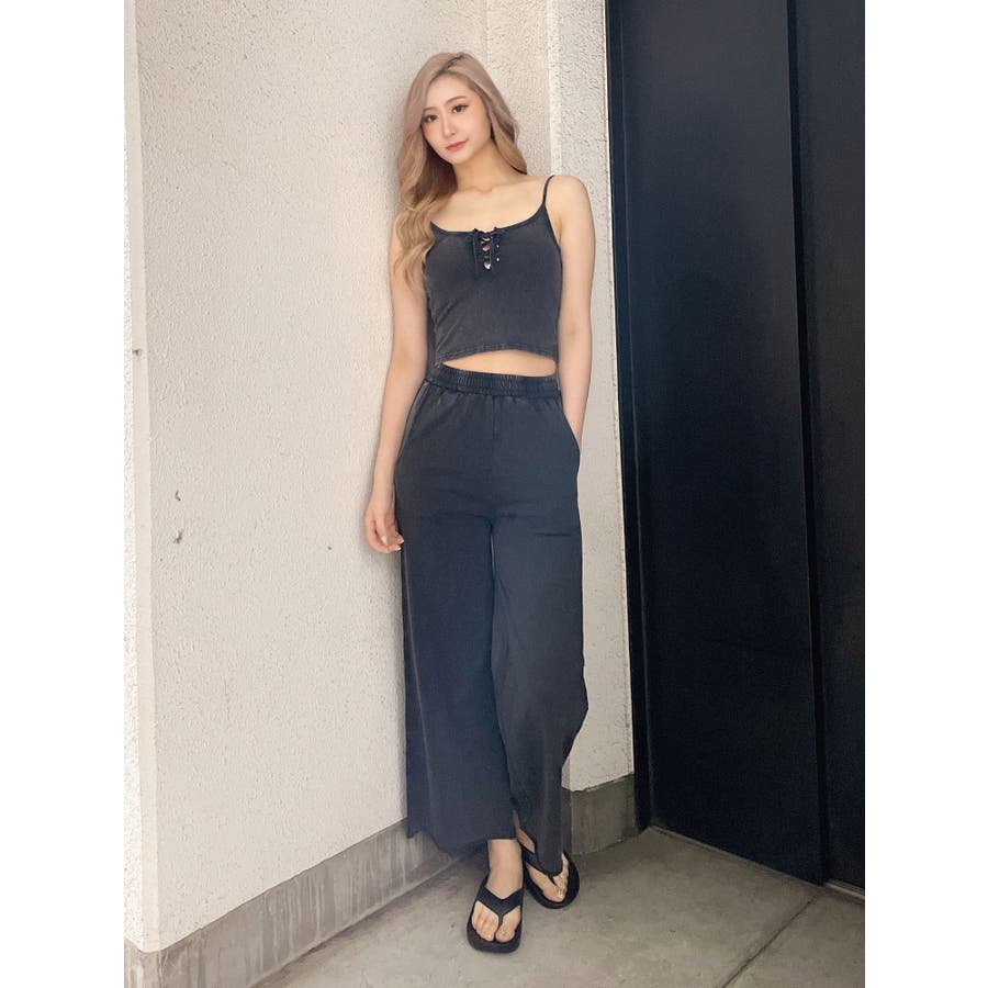 商品コメント:パウダー加工でしか出せない表面感に拘り、パッド入りでシンプルながらフロントにレースアップデザインをプラス。ヘルシーにGYDAらしいビスチェアイテムです。 コーデ:ブリーチワイドパンツとSETUPがマストです。