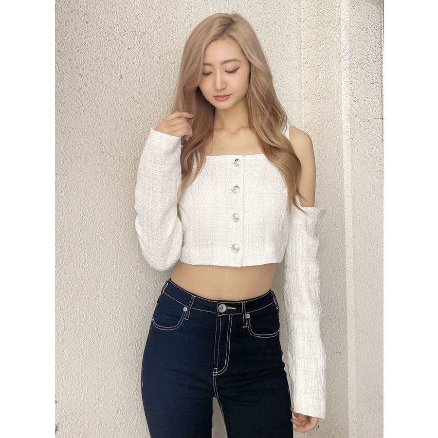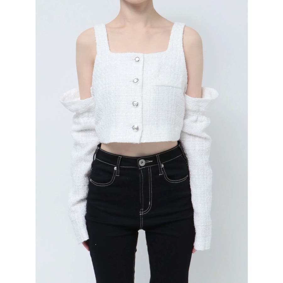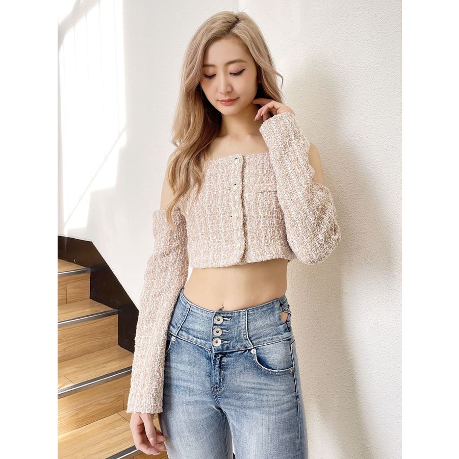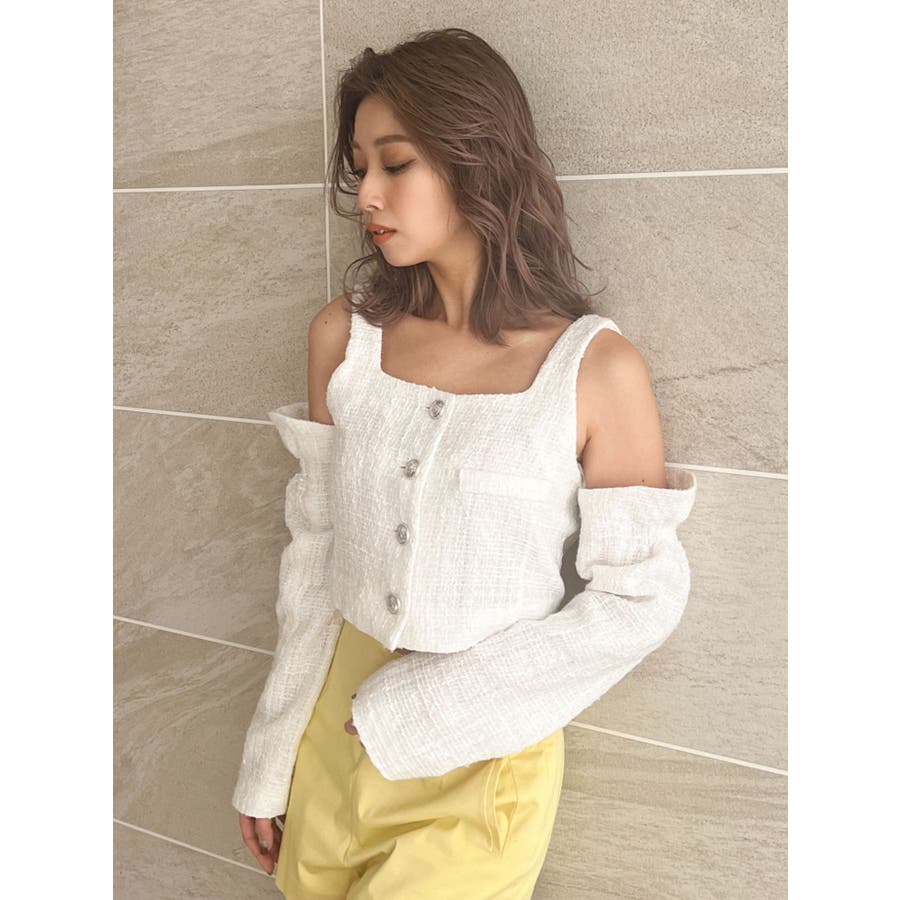 フロントボタン2WAY FANCYTWEEDブラウス
