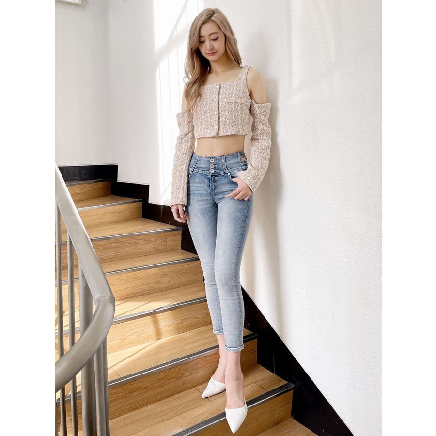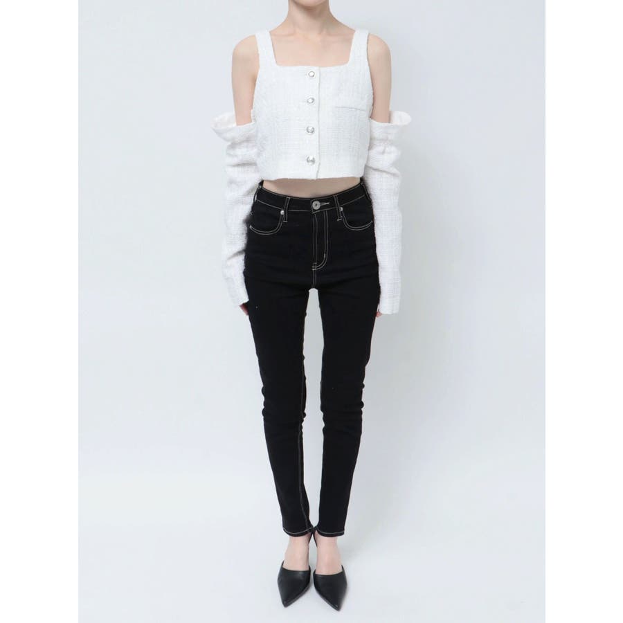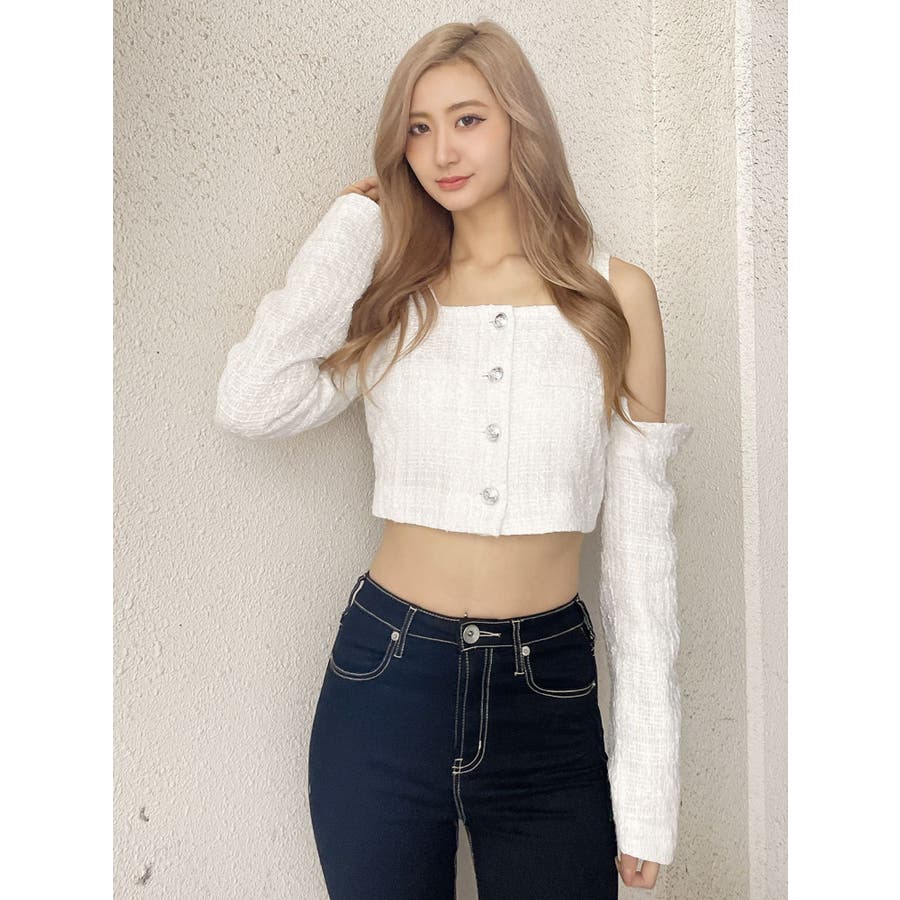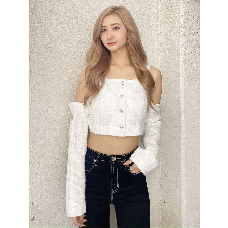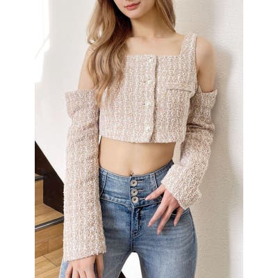 フロントボタン2WAY FANCYTWEEDブラウス