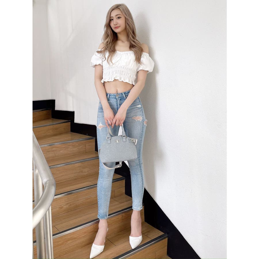 デニムアイテム合わせがオススメですが、特にボリューム感のあるダメージパンツと合わせていただくと、