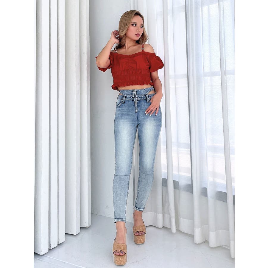 腕周りのボリューム感から、ウエストはタイトなシルエットで、スタイルアップにもなります。