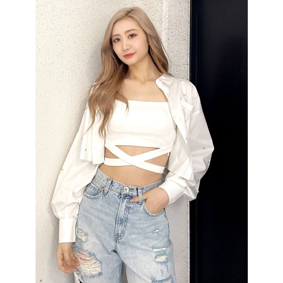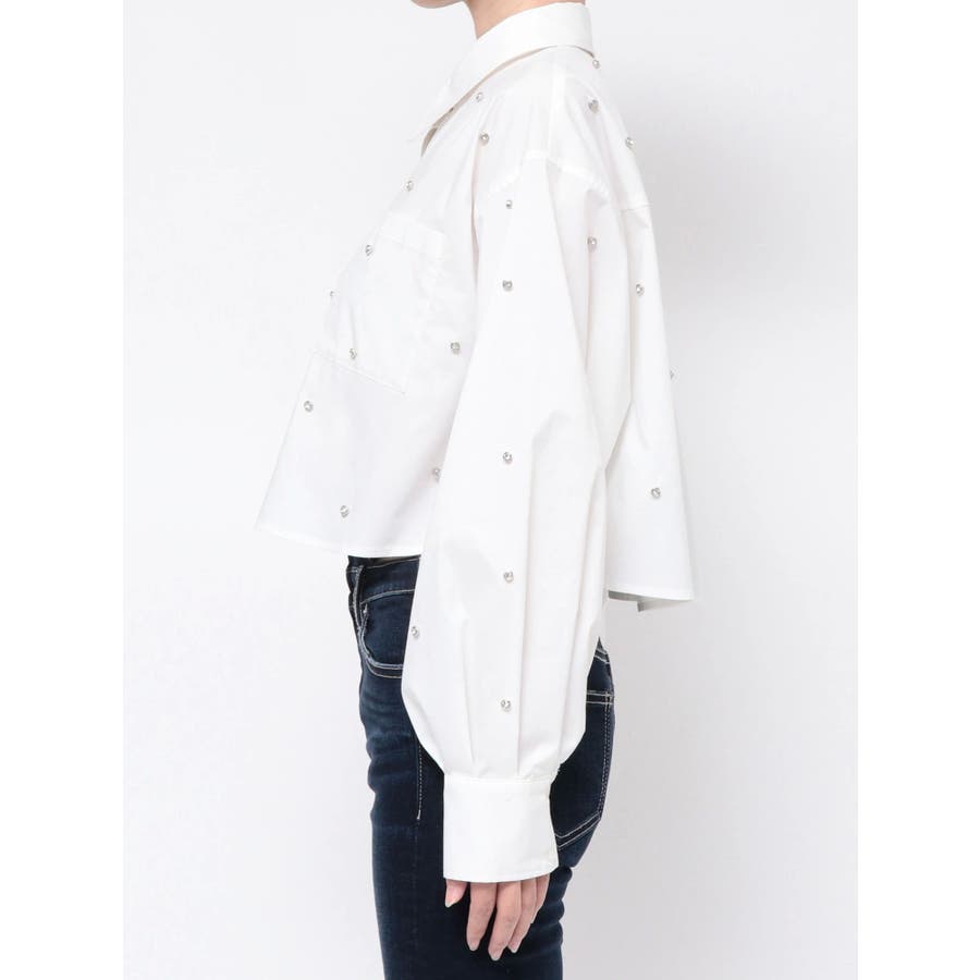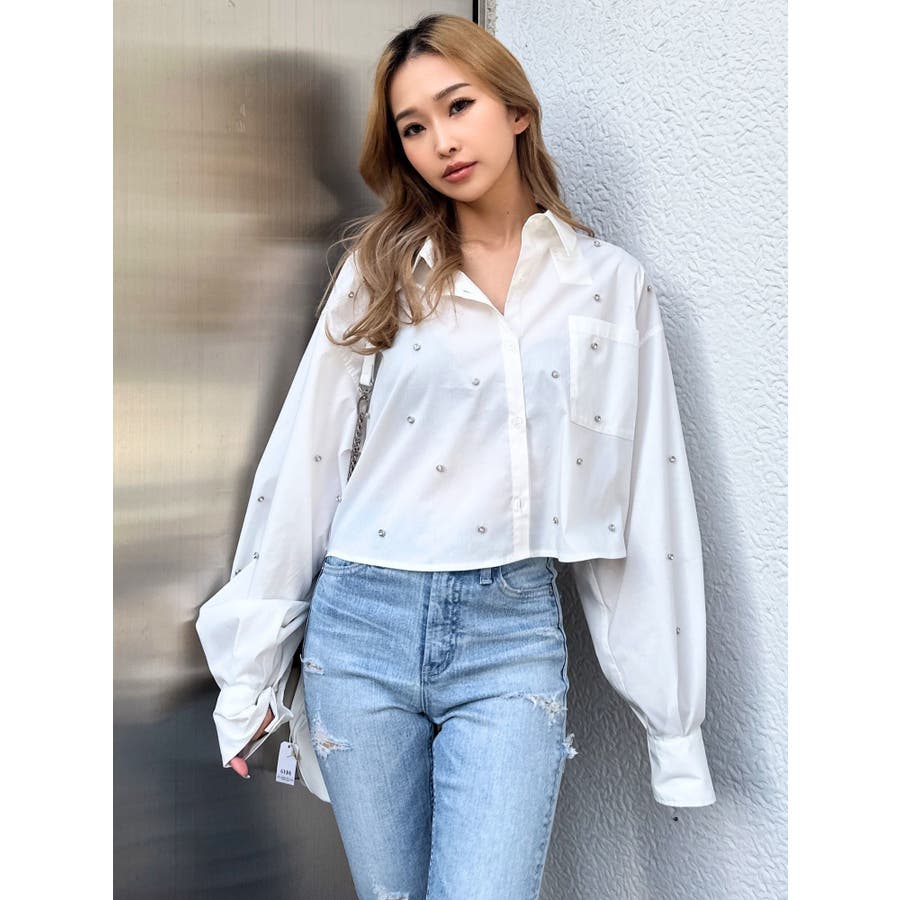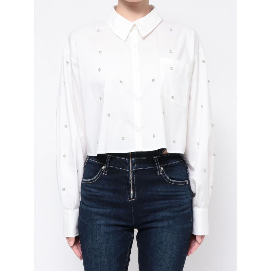 トレンドのストーンが、ふんだんに散りばめられたインパクトのあるシャツです。