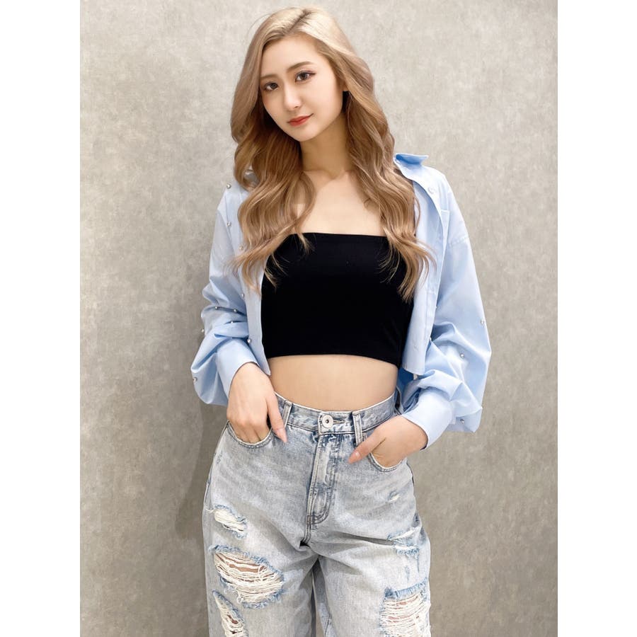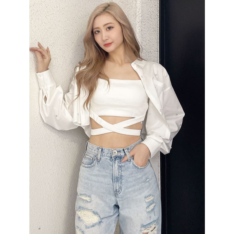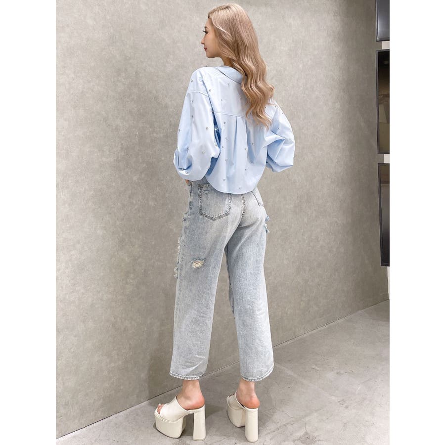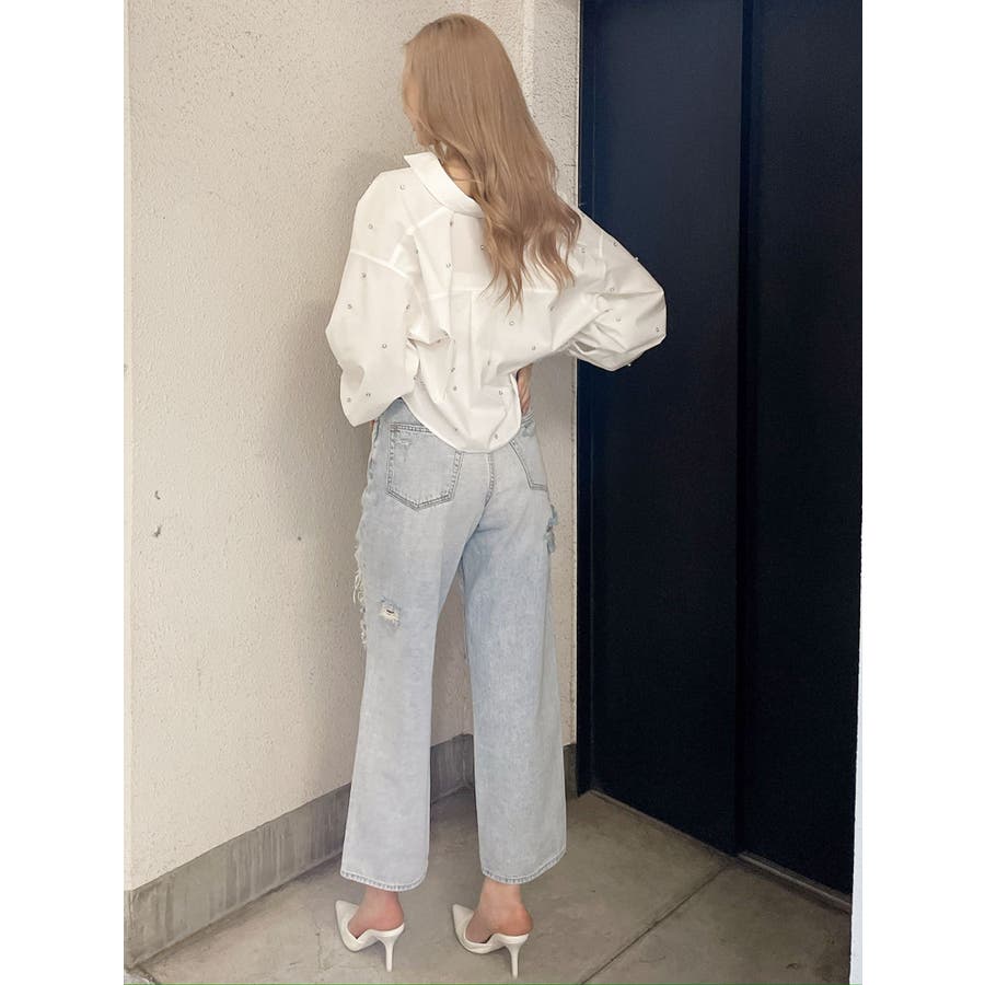 トレンドのストーンが、ふんだんに散りばめられたインパクトのあるシャツです。