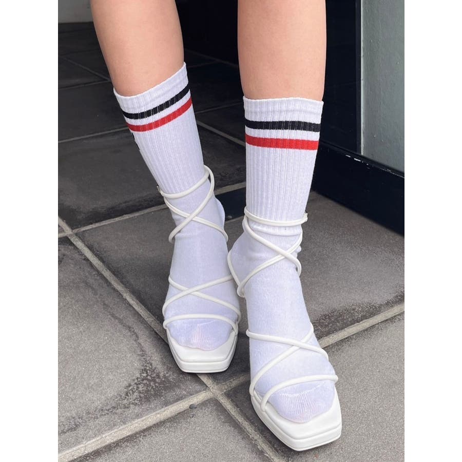 靴下を合わせるとカジュアルにスタイリングしていただけます。