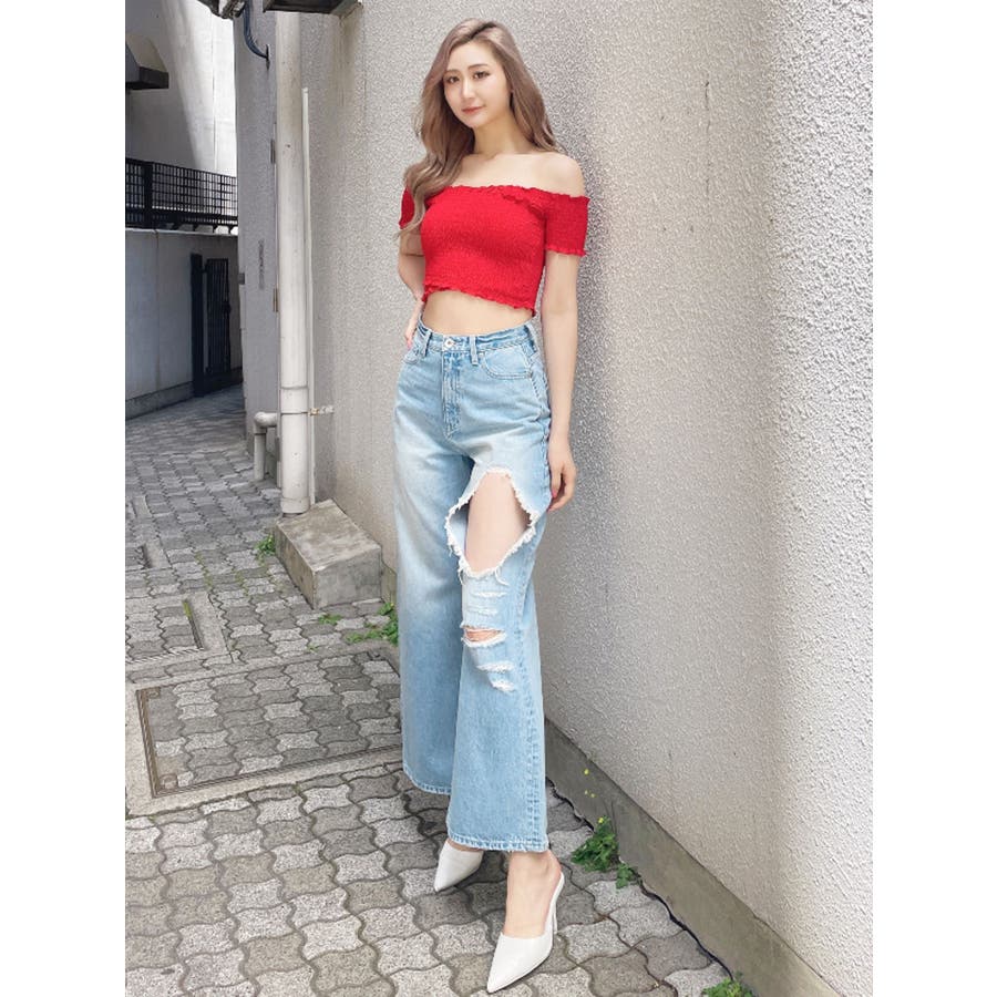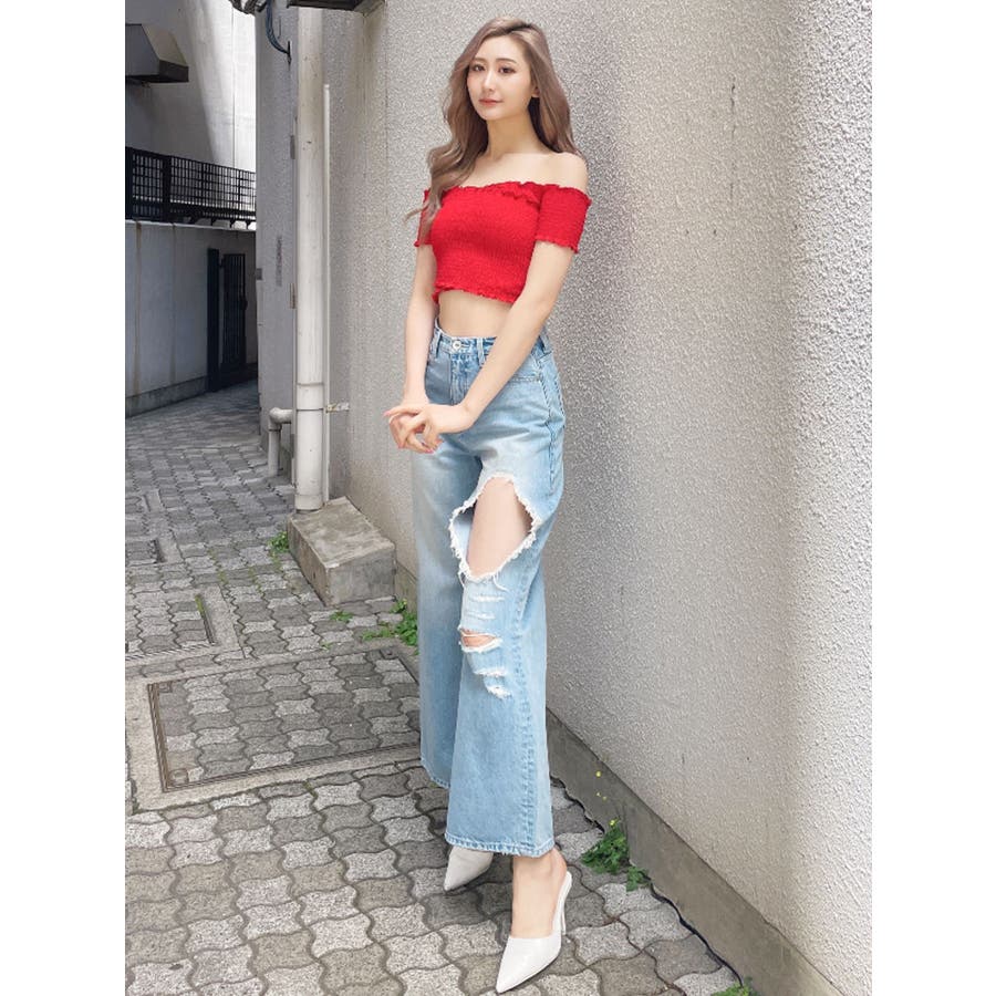 ハイウエストパンツと合わせて着用するとめっちゃ細見えして盛れます!