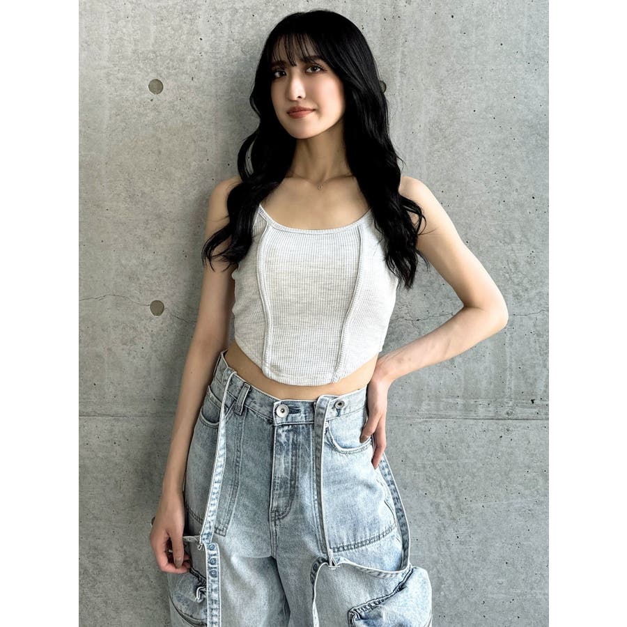 ■デザイン 【GYDA official visual staff PRODUCE】 フロントの前後差があるラウンドのデザインや、バストに立体感の出る パイピング・センターバック部施したSquare gyda刺繍にも拘った1枚。 ボトムとセットアップ着用できるよう、ワッフル生地を使用。 ワッフルは糸を浮かせて作られているため、包み込むような柔らかい肌触りを持っており、 吸水性・放湿性が高いため、通気性がよいので春、夏でも快適に使いやすい素材です。 ■スタイリング ワッフルルーズパンツとSETUP着用がおすすめです。 ワイド系のデニム合わせでも◎ ■商品のお気に入り登録 再入荷通知やラスト1点、お得なプライスダウンの情報も受け取ることができます。 ぜひご登録ください◎ ■この商品を見ている人におすすめ ワッフルルーズパンツ ・・・・・・・・・・・・・・・・・・・・・・ ※着用画像はフラッシュの加減で実際の製品と色味等が異なる場合がございますので、生地のズームアップ画像をご確認ください。 ※ご利用の端末画面の設定により実際の商品と色味が異なる場合がございます。 【商品特徴】透け感:なし伸縮性:ややあり生地の厚さ:普通 サイズ感:細身 裏地:なしポケット:なし