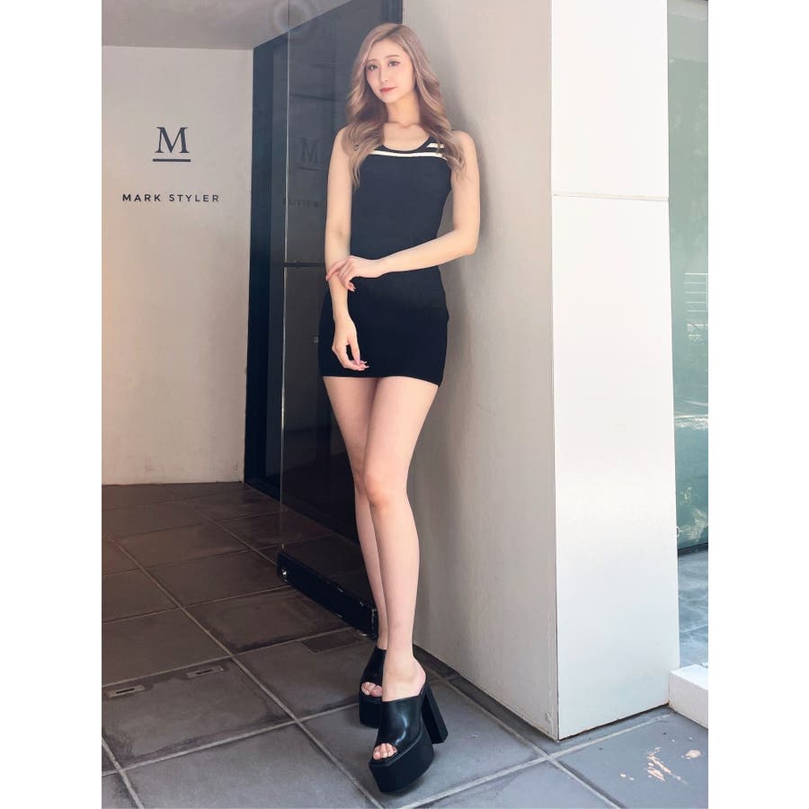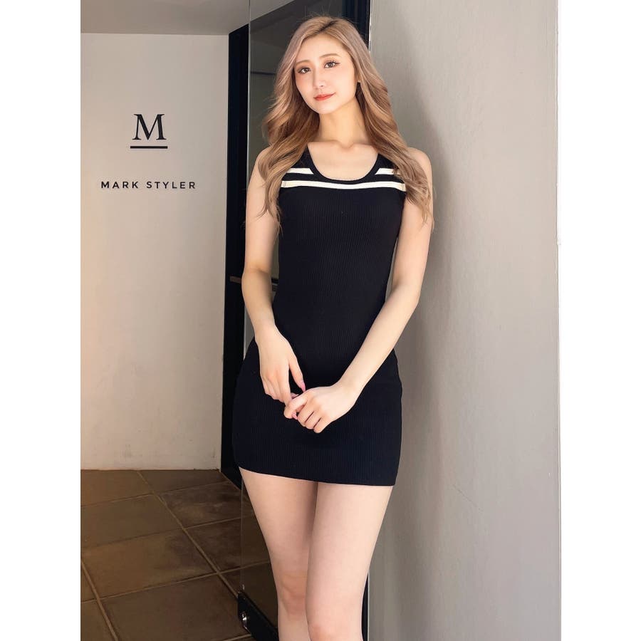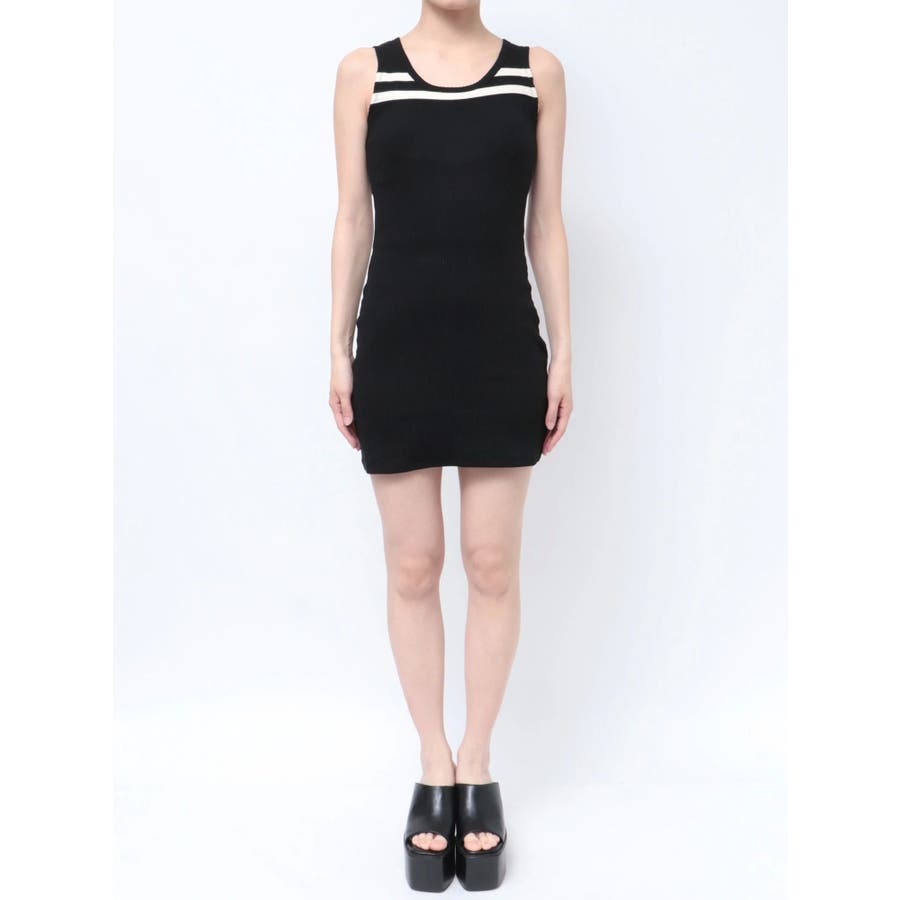 ネックラインノースリーブタイトミニワンピース