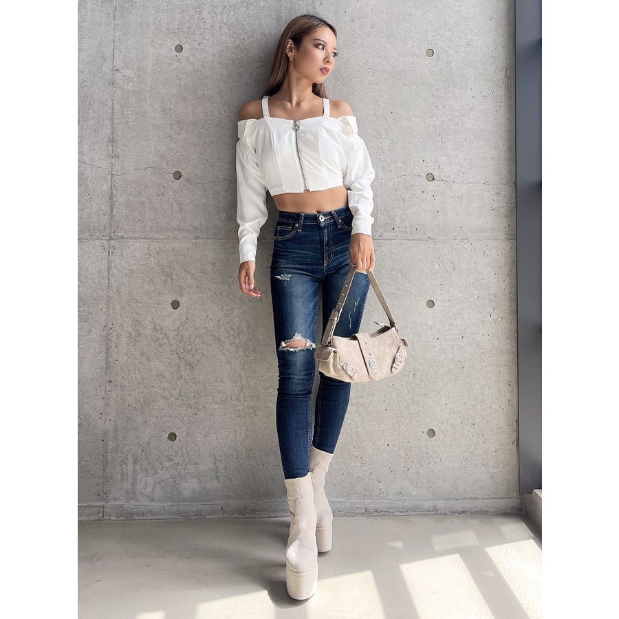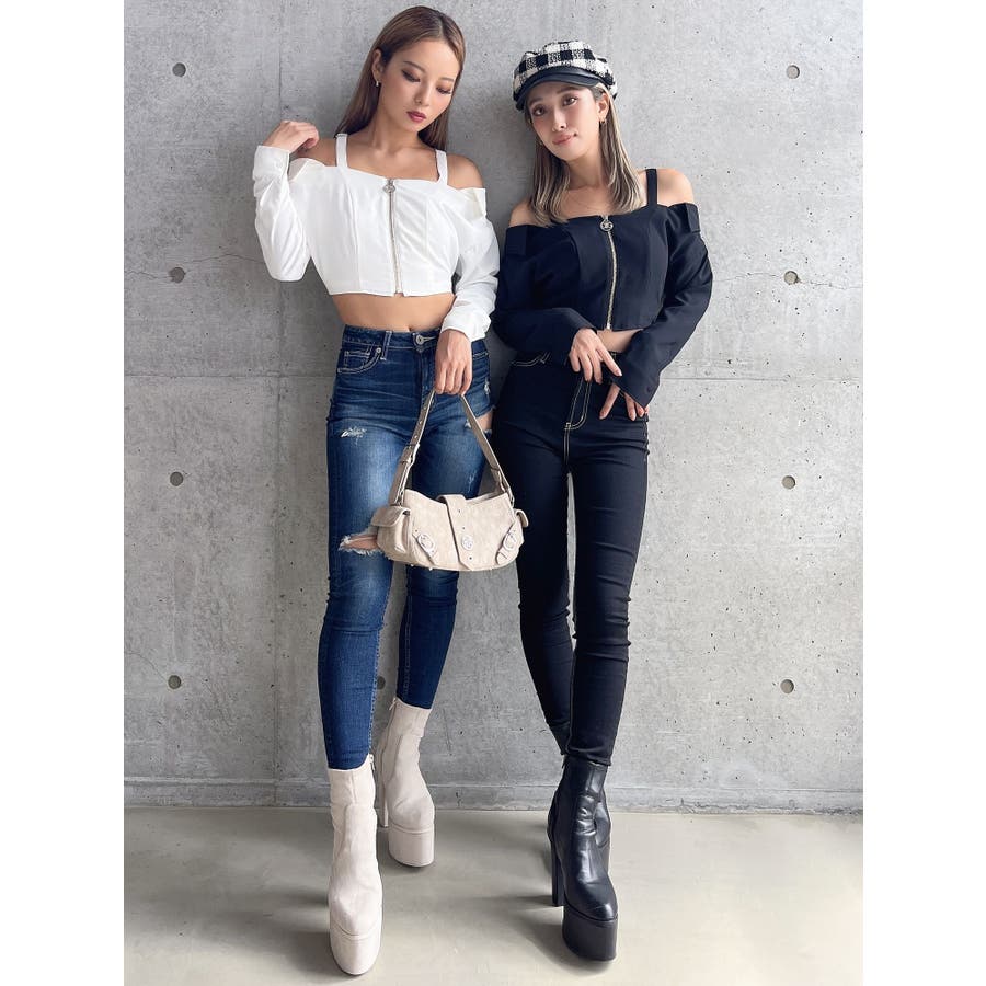 ■デザイン シャツをオフショルで着たようなデザインにしたブラウスです。 オリジナルロゴのZIPデザインが他社との差別化で重厚感があります。 ■スタイリング デニムスタイルによく合います。 ミニスカートでガーリーに着ても可愛いです。 ■商品のお気に入り登録 再入荷通知やラスト1点、お得なプライスダウンの情報も受け取ることができます。 ぜひご登録ください◎ ・・・・・・・・・・・・・・・・・・・・・・ ※着用画像はフラッシュの加減で実際の製品と色味等が異なる場合がございますので、生地のズームアップ画像をご確認ください。 ※ご利用の端末画面の設定により実際の商品と色味が異なる場合がございます。 【商品特徴】透け感:なし伸縮性:なし生地の厚さ:普通サイズ感:普通裏地:なしポケット:なし