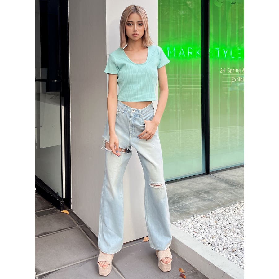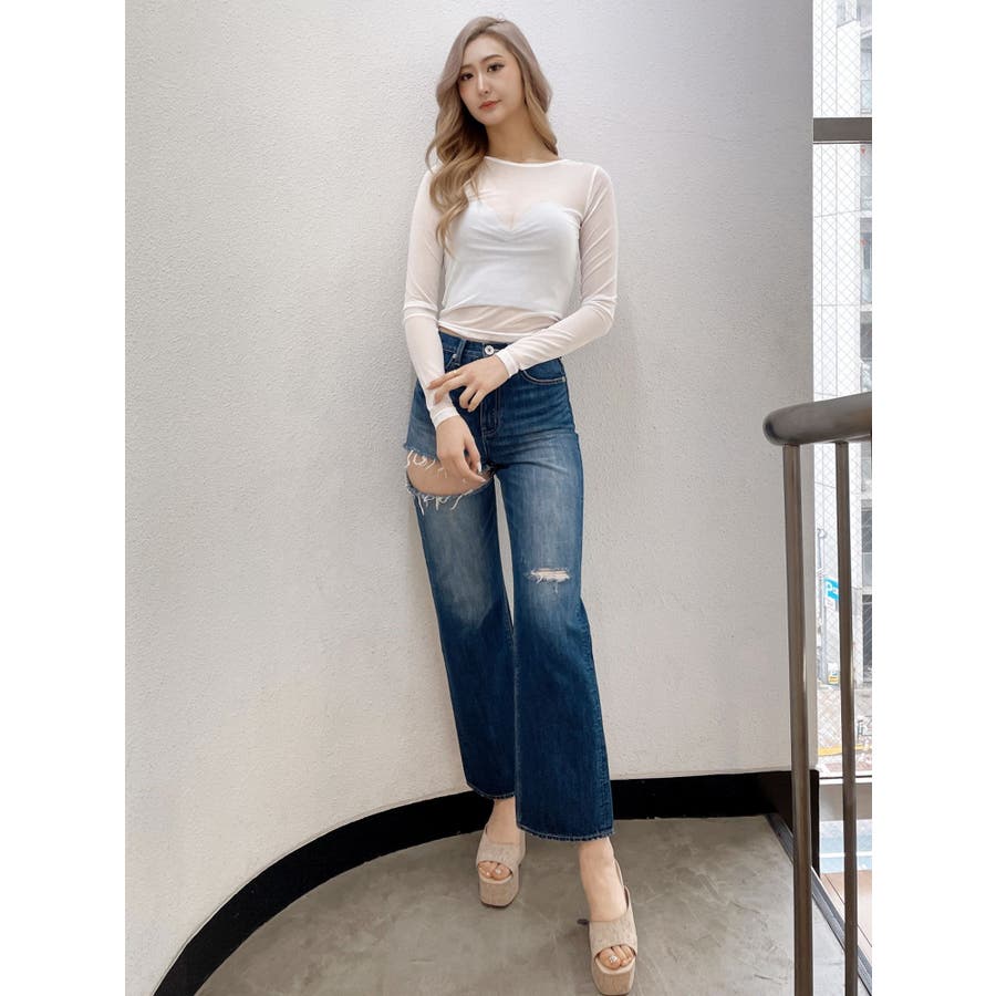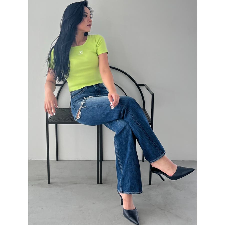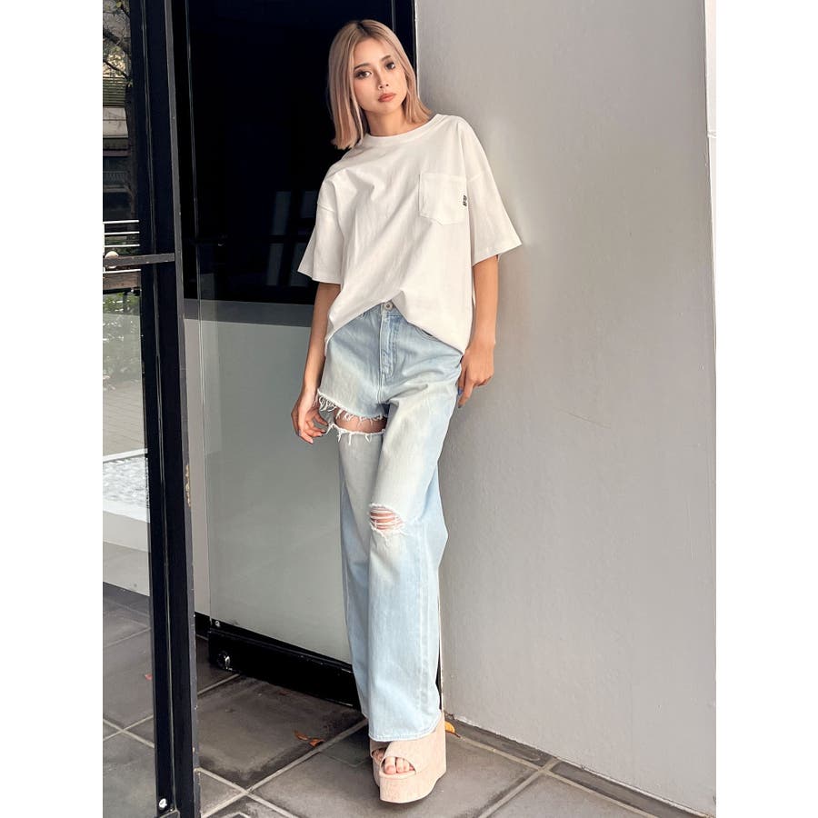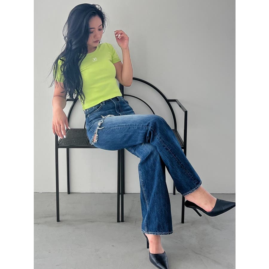 大人気サイドリップドペグトップデニムパンツのストレートワイドデニムが新登場。