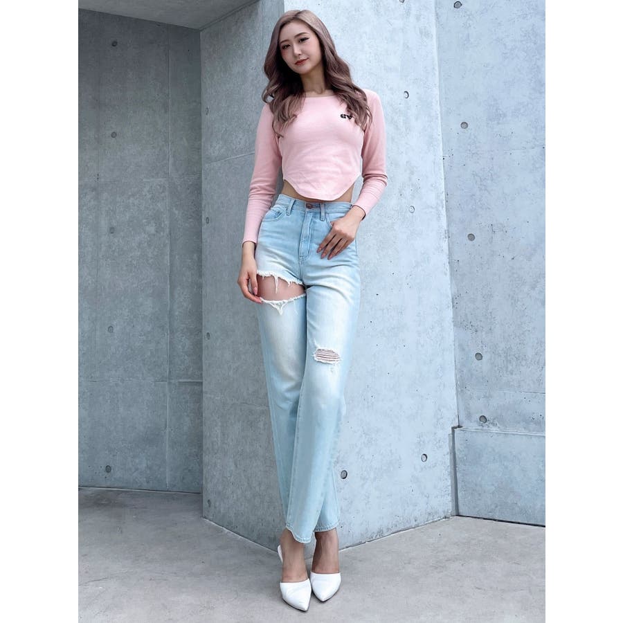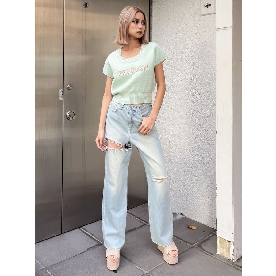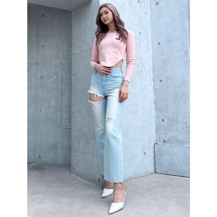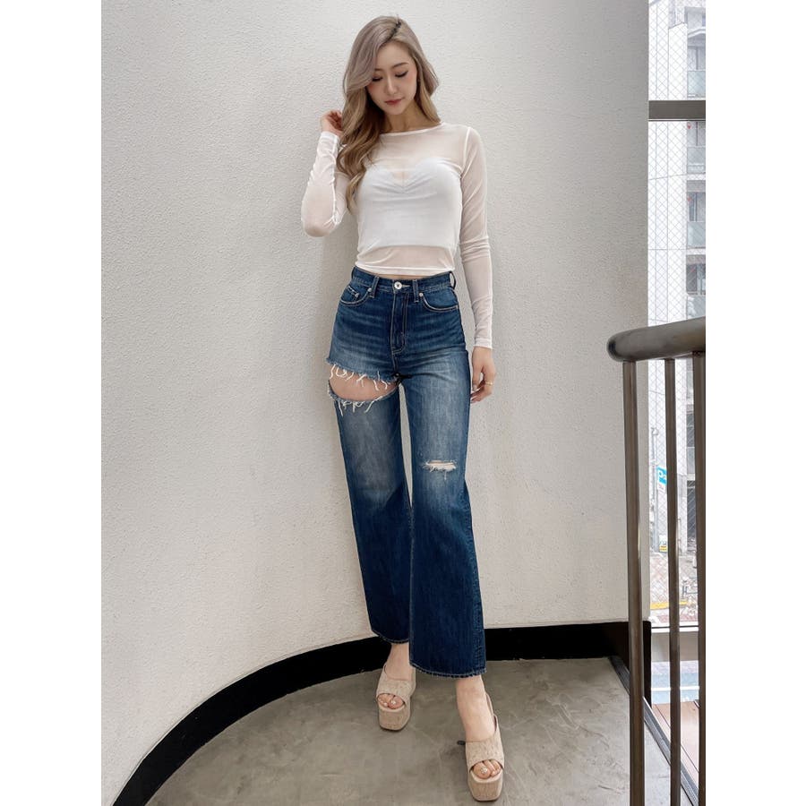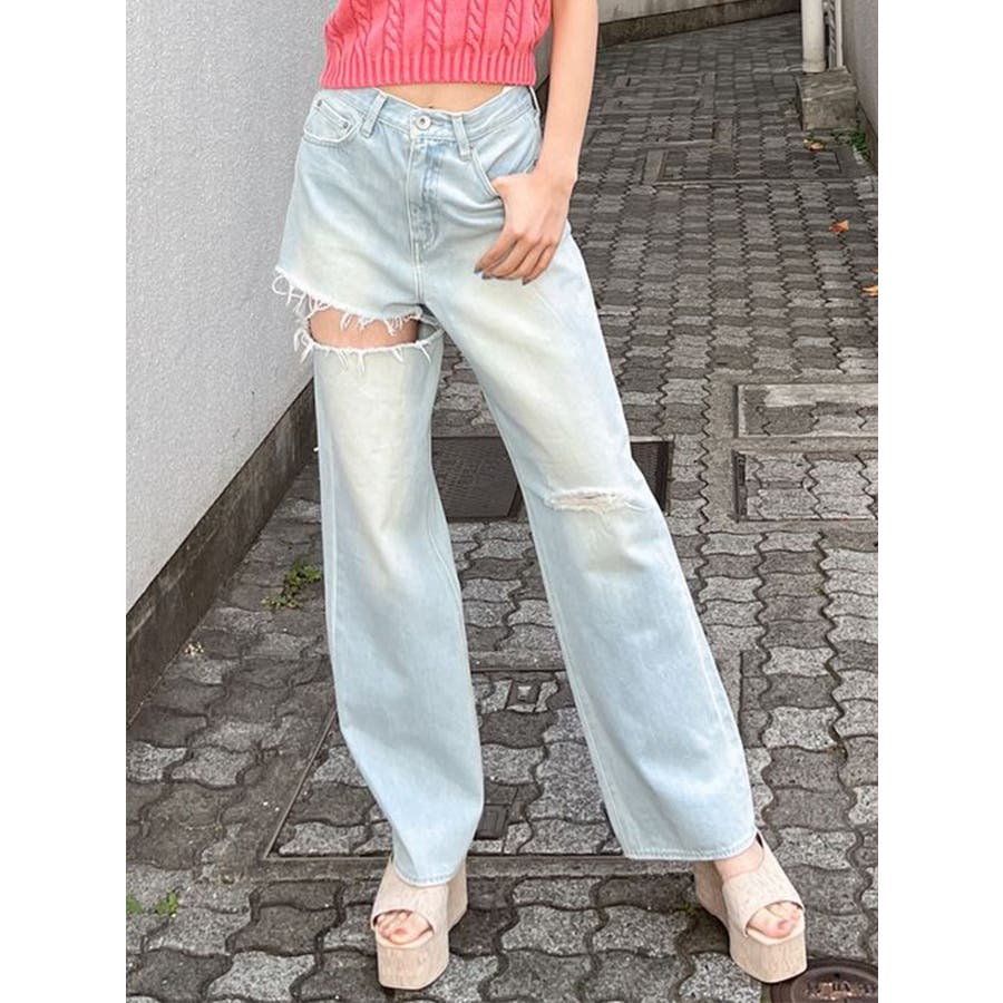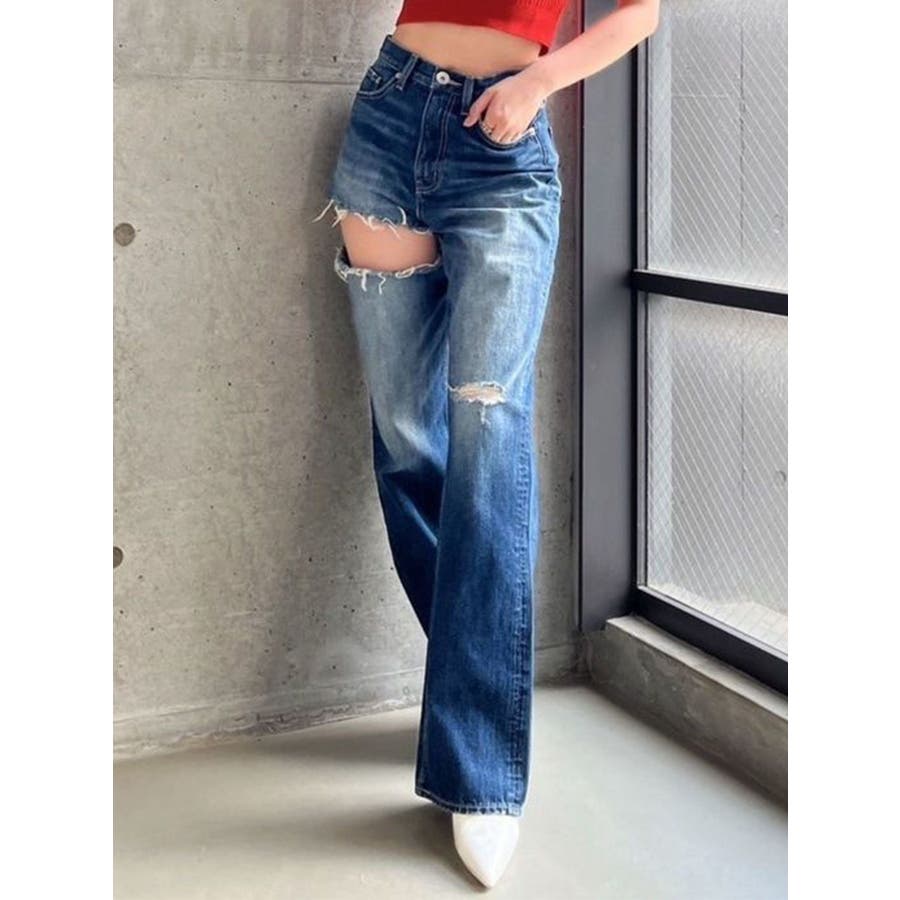 ストリートを中心に注目されている、太ももの部分を大胆にカットアウトしたデニムは、GYDAらしくキレイめなシルエットデザインにシフトした1本。