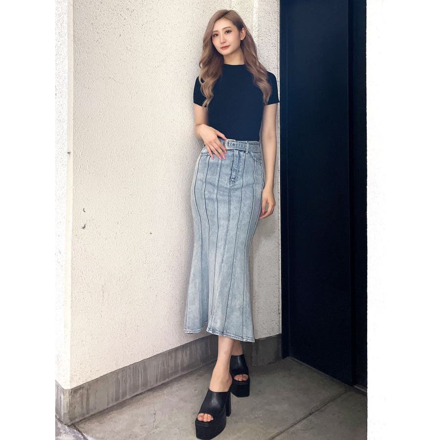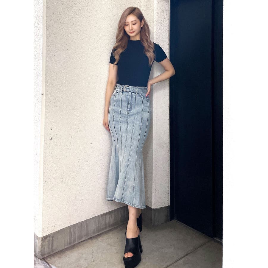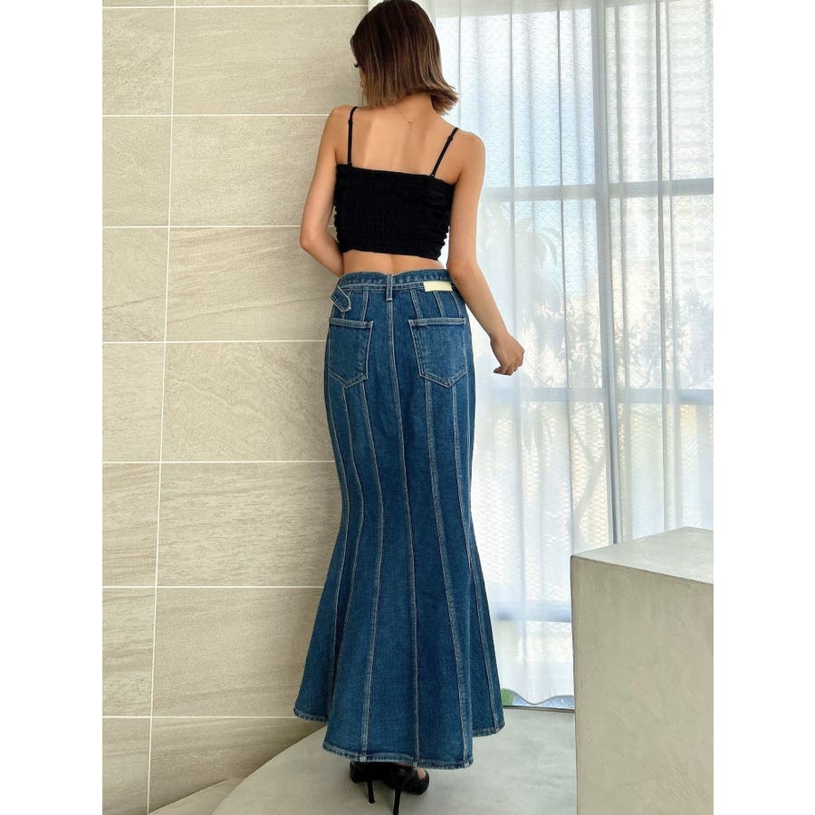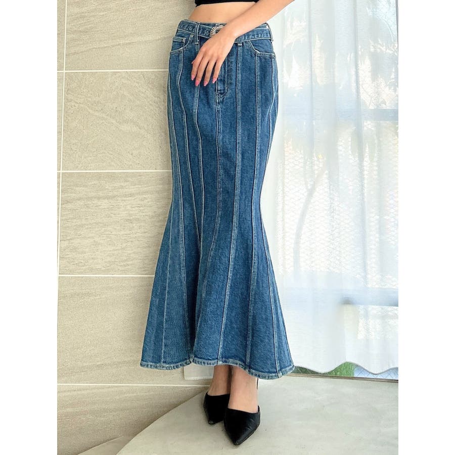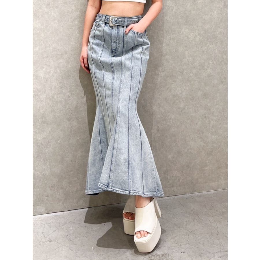 レディース/夏/春/セクシー/10代/20代/30代/カジュアル/デニム/デニムスカート/スカート/マーメイドスカート/ロングスカート/ロングデニム/ベルト付き