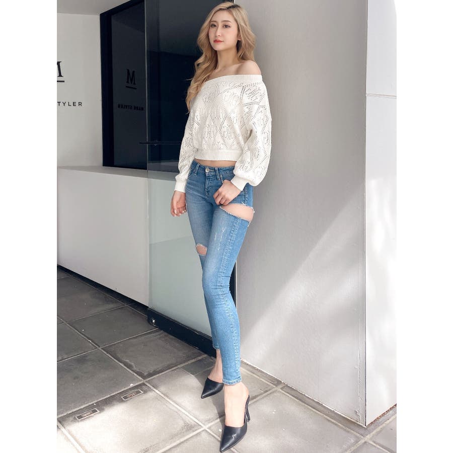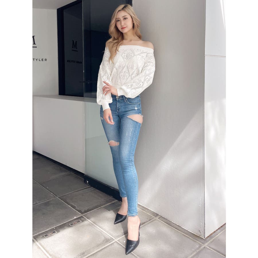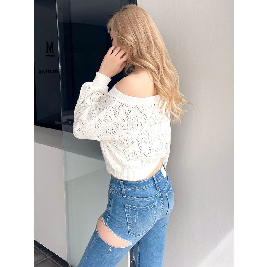 Symmetry GYDAアイレットオフショルニットトップス
