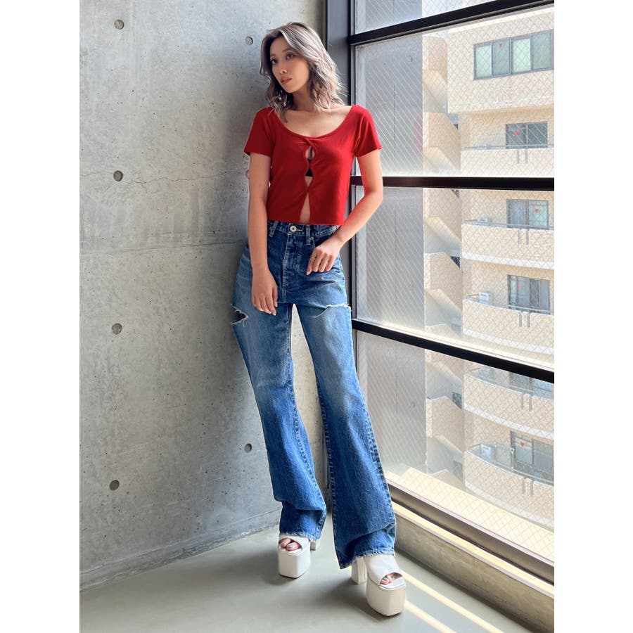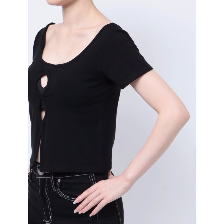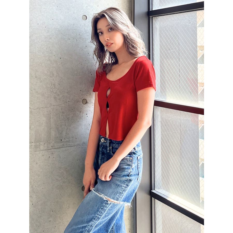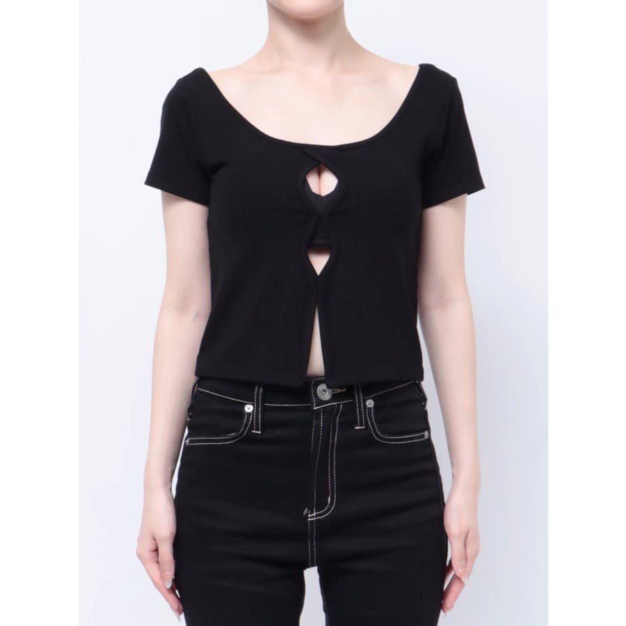 フロントホールデザインを、キックバックのあるカットソー素材に落とし込んでちょっとセクシーかつカジュアルに着こなせるせアイテムです。