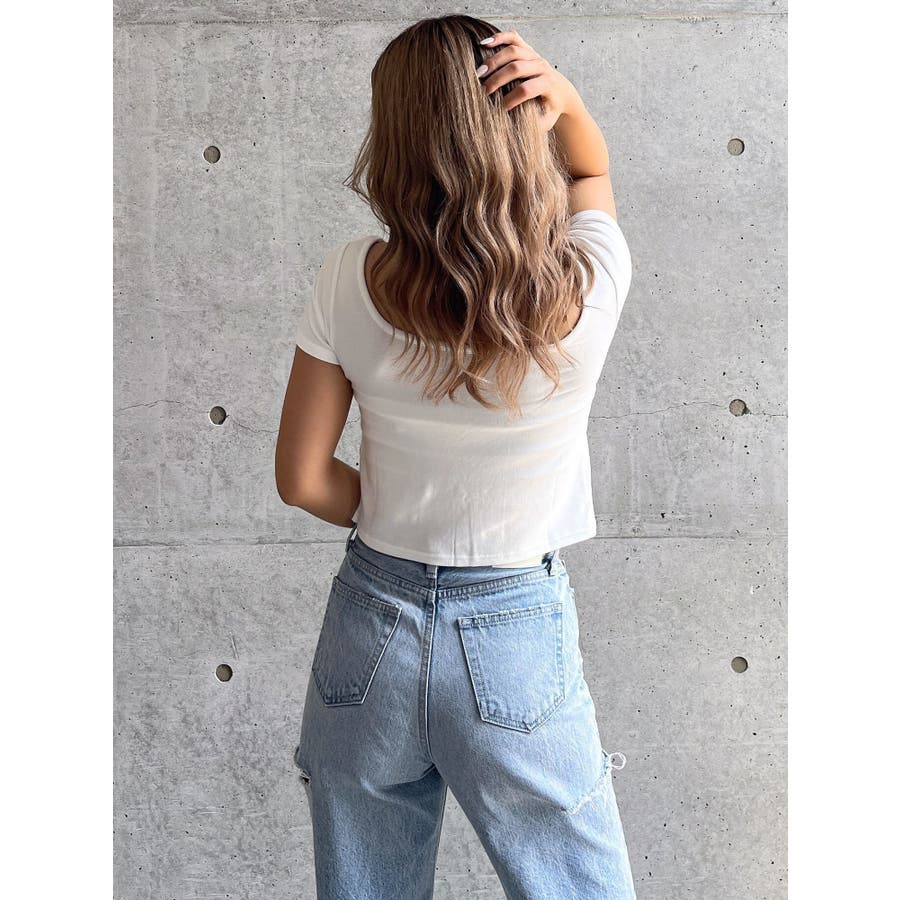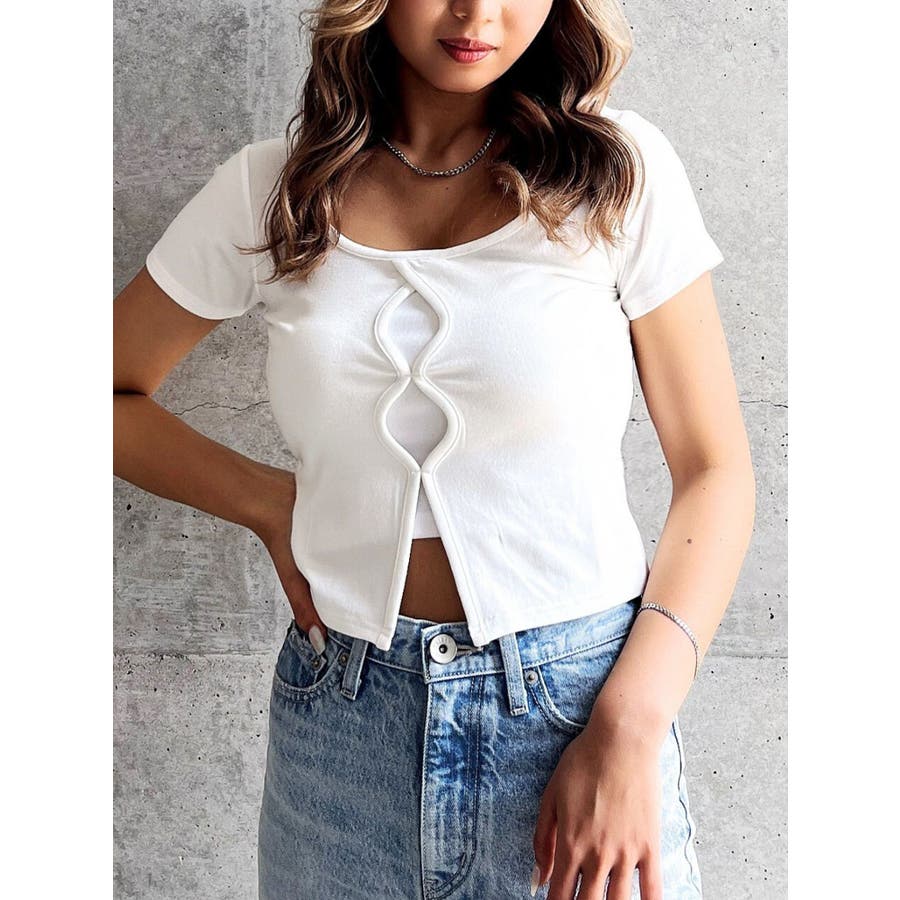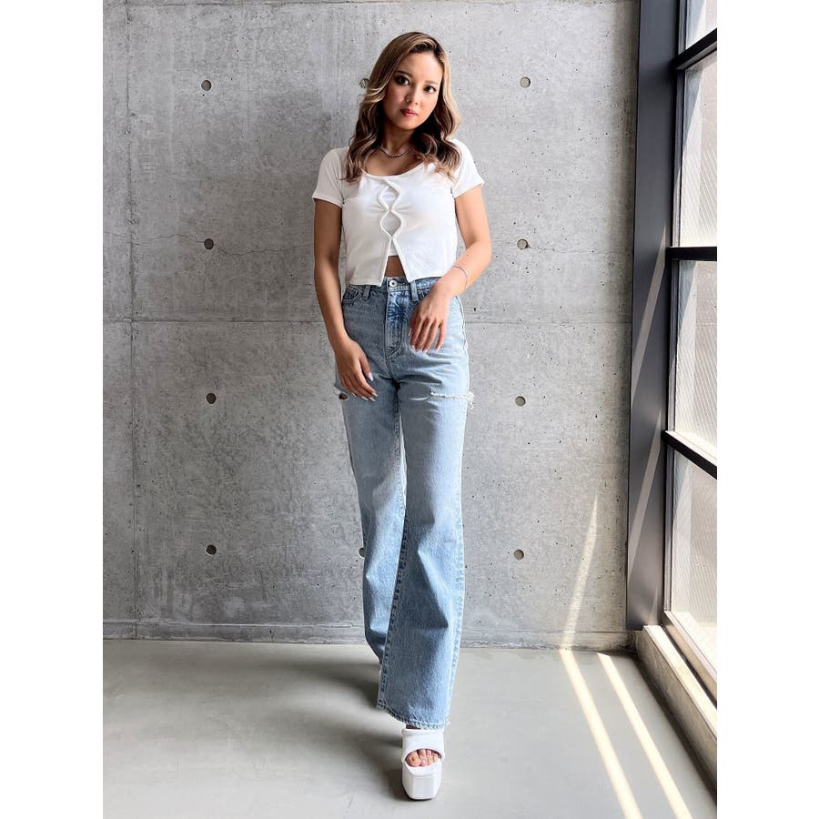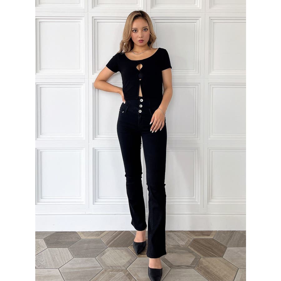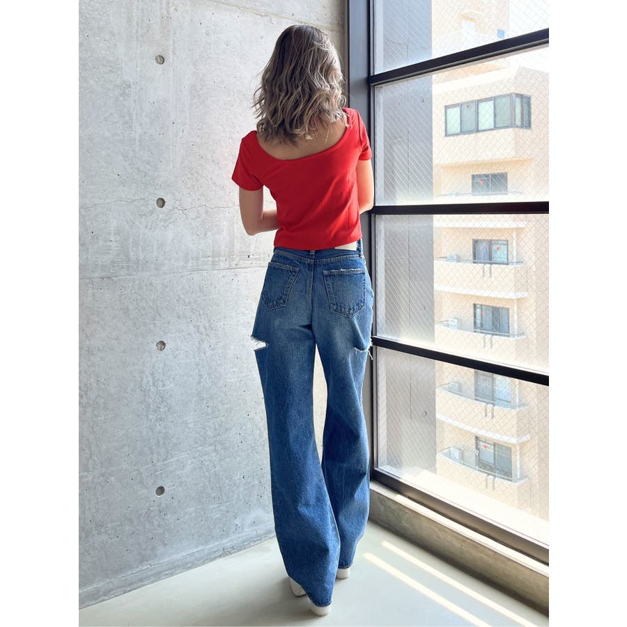 フロントホールデザインを、キックバックのあるカットソー素材に落とし込んでちょっとセクシーかつカジュアルに着こなせるせアイテムです。