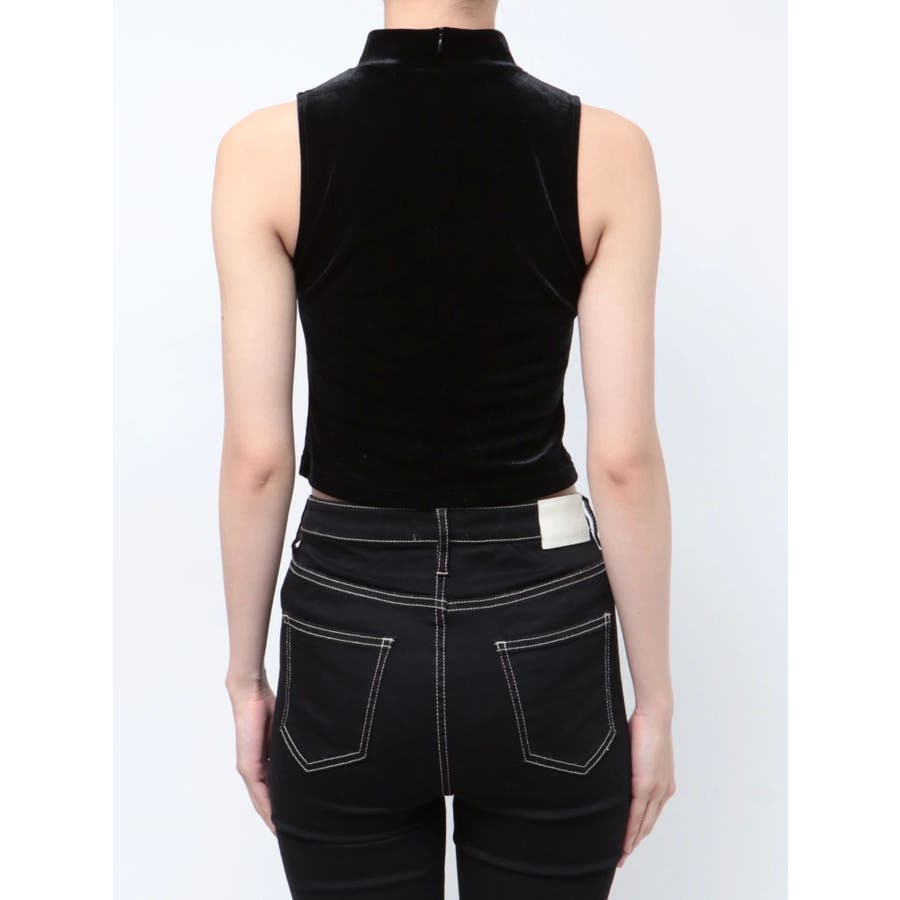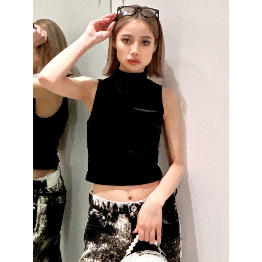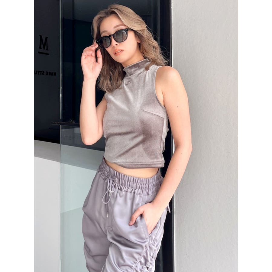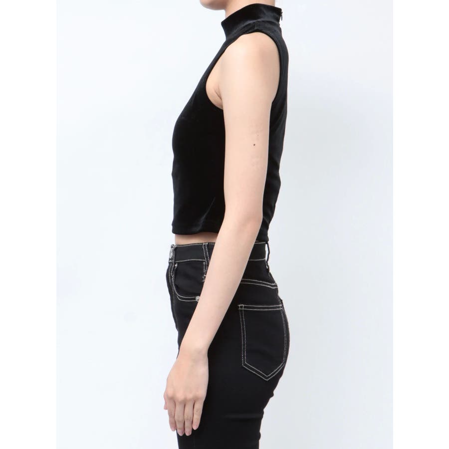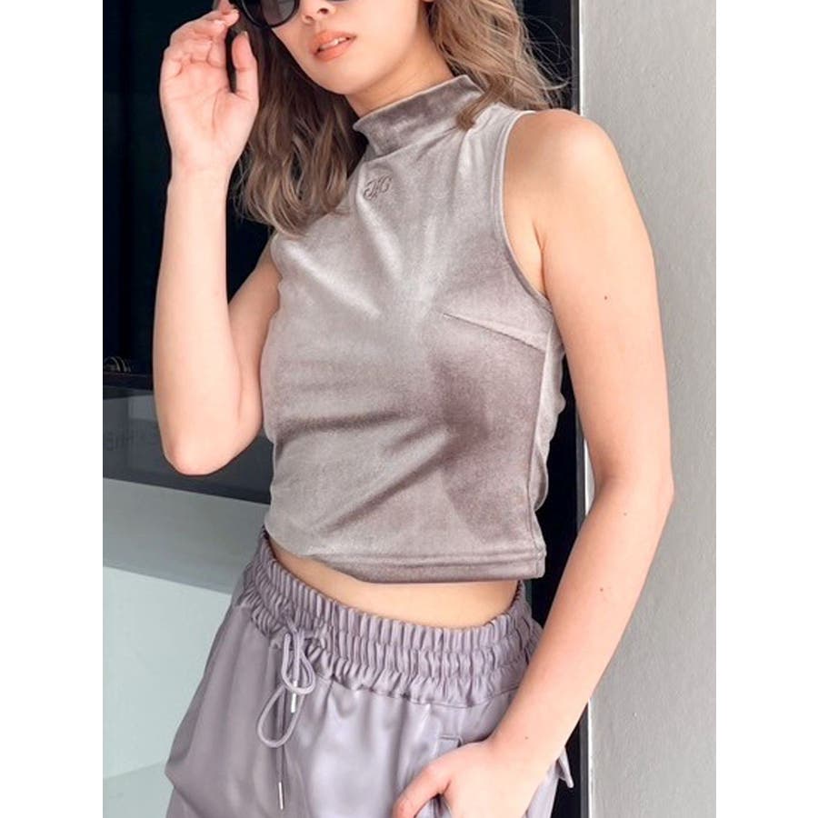ベロア生地を使用した秋冬らしいプチハイネックのタンクトップになります。