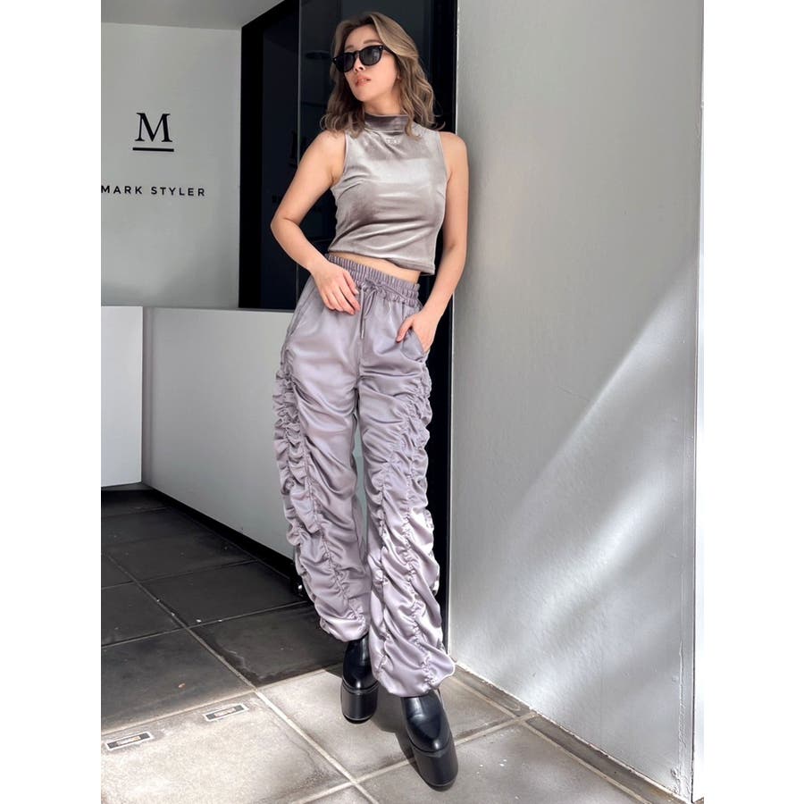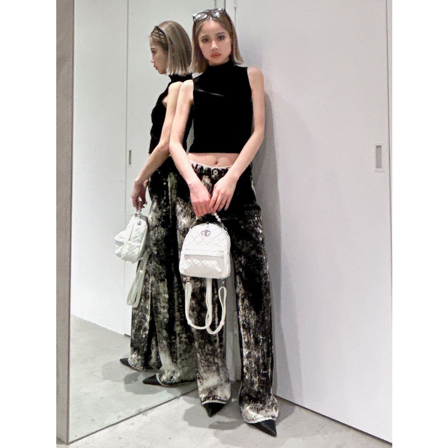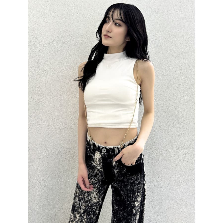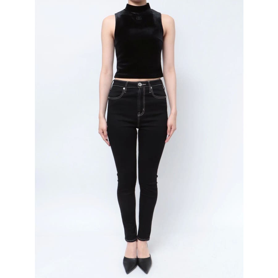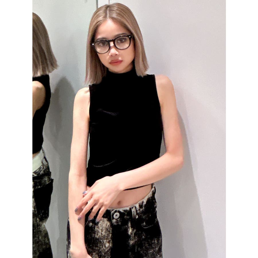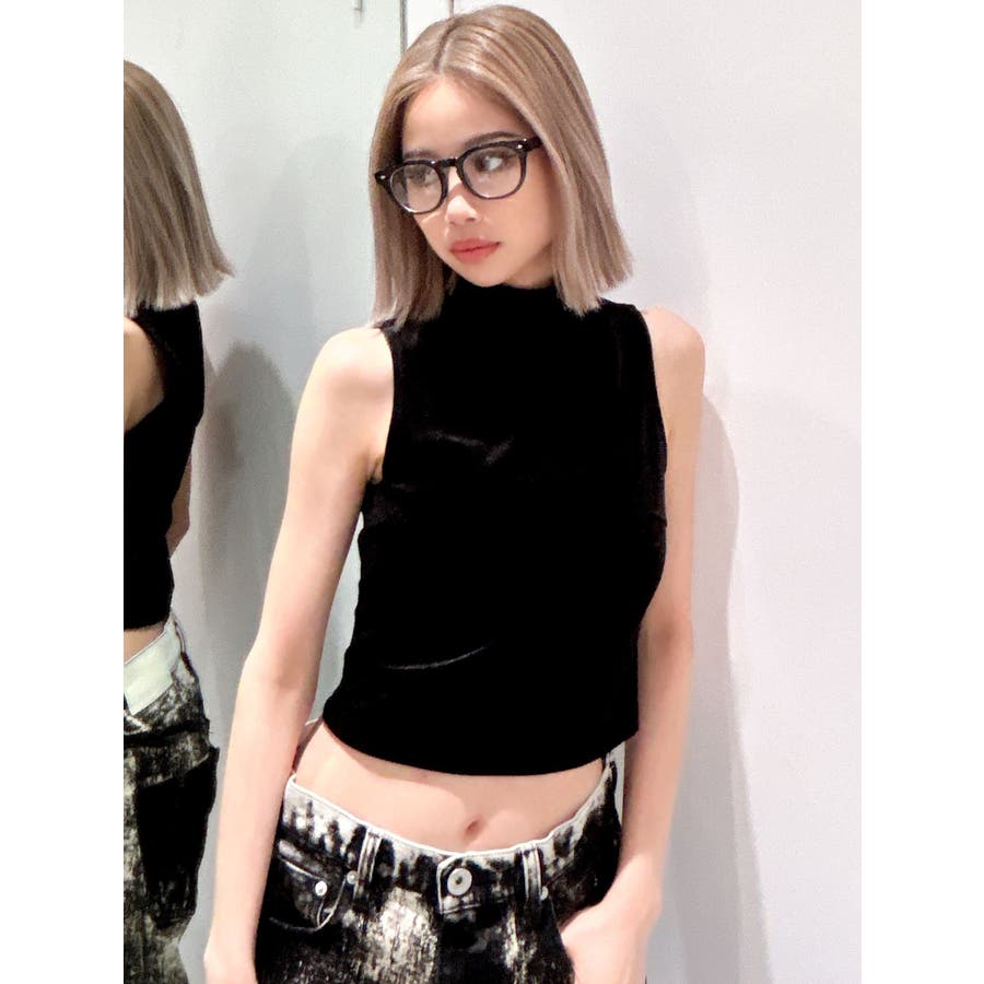 ベロア生地を使用した秋冬らしいプチハイネックのタンクトップになります。