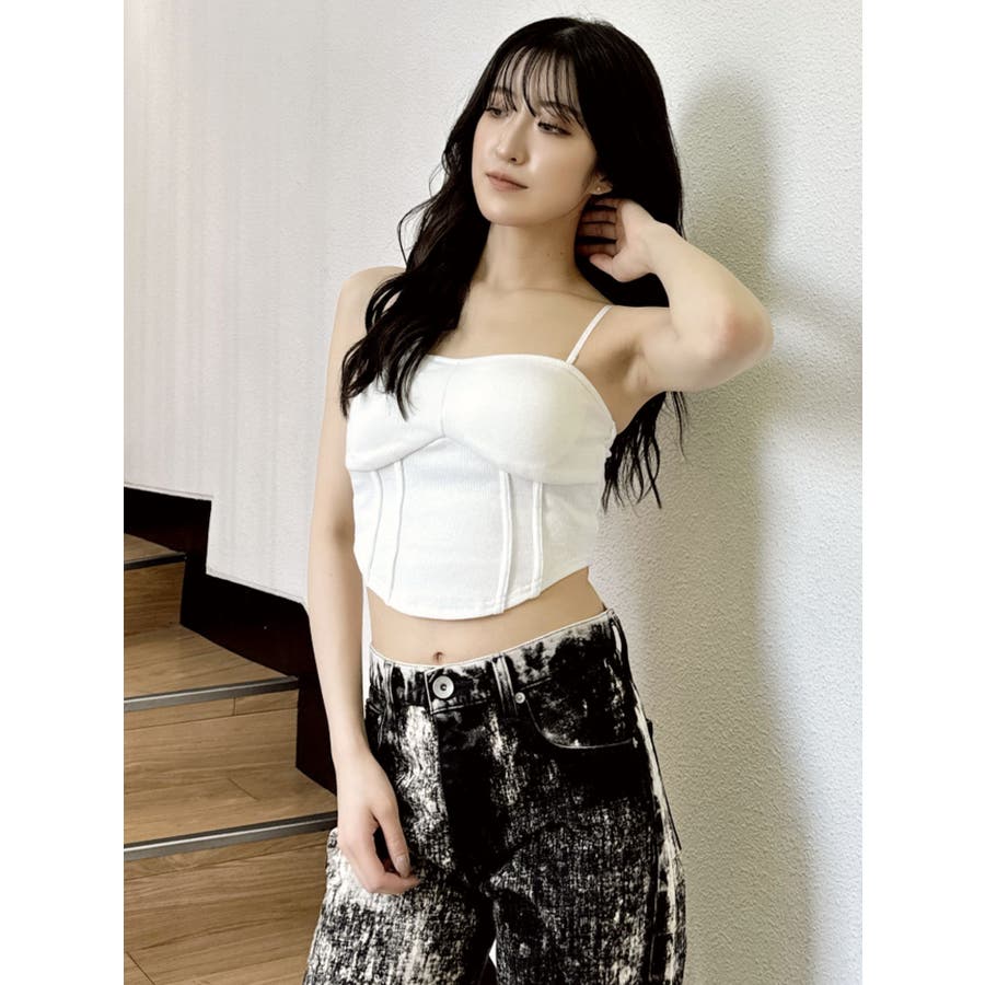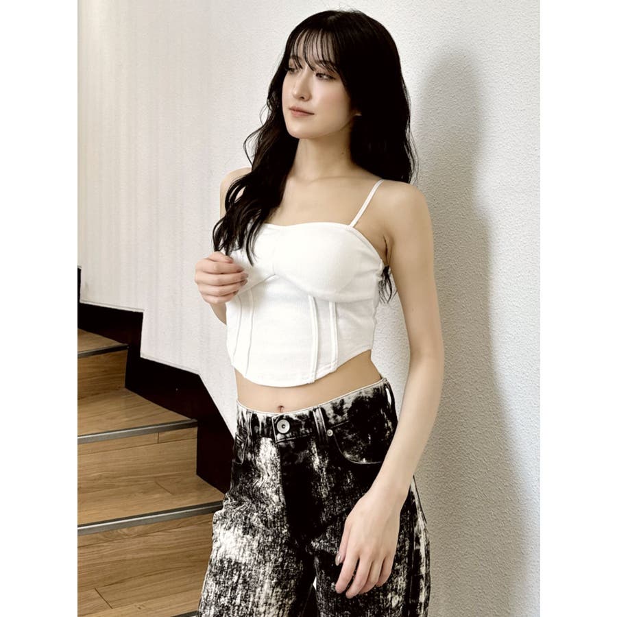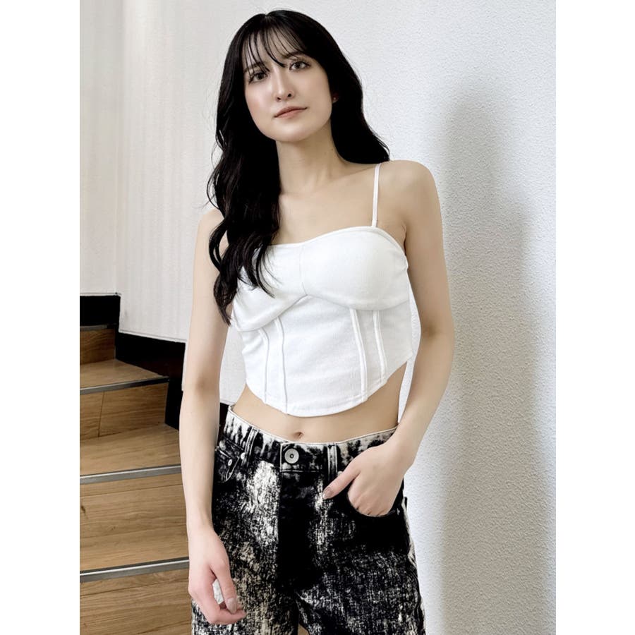 商品コメント:コルセットの様なデザインが特徴のテレコ素材のビスチェです。縦ラインでウエストのシェイプ効果がありスタイルアップ効果があります。 コーデ:1枚で着用はもちろん、シアートップスの上にレイヤーしても可愛いです。※着用画像はフラッシュの加減で実際の製品と色味等が異なる場合がございますので、生地のズームアップ画像をご確認ください。※ご利用の端末画面の設定により実際の商品と色味が異なる場合がございます。【商品特徴】透け感:なし伸縮性:ややあり生地の厚さ:普通サイズ感:細身裏地:なしポケット:なし