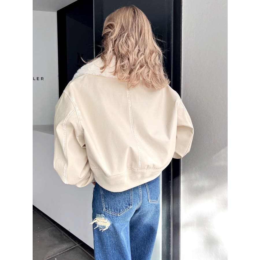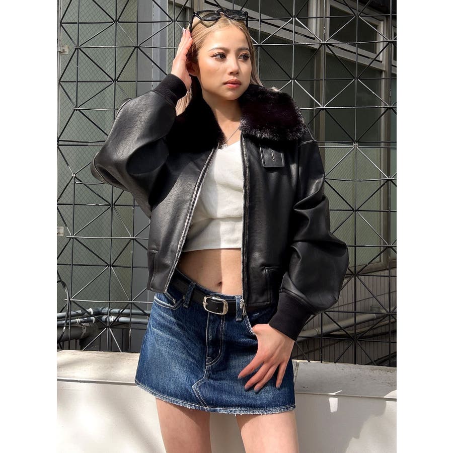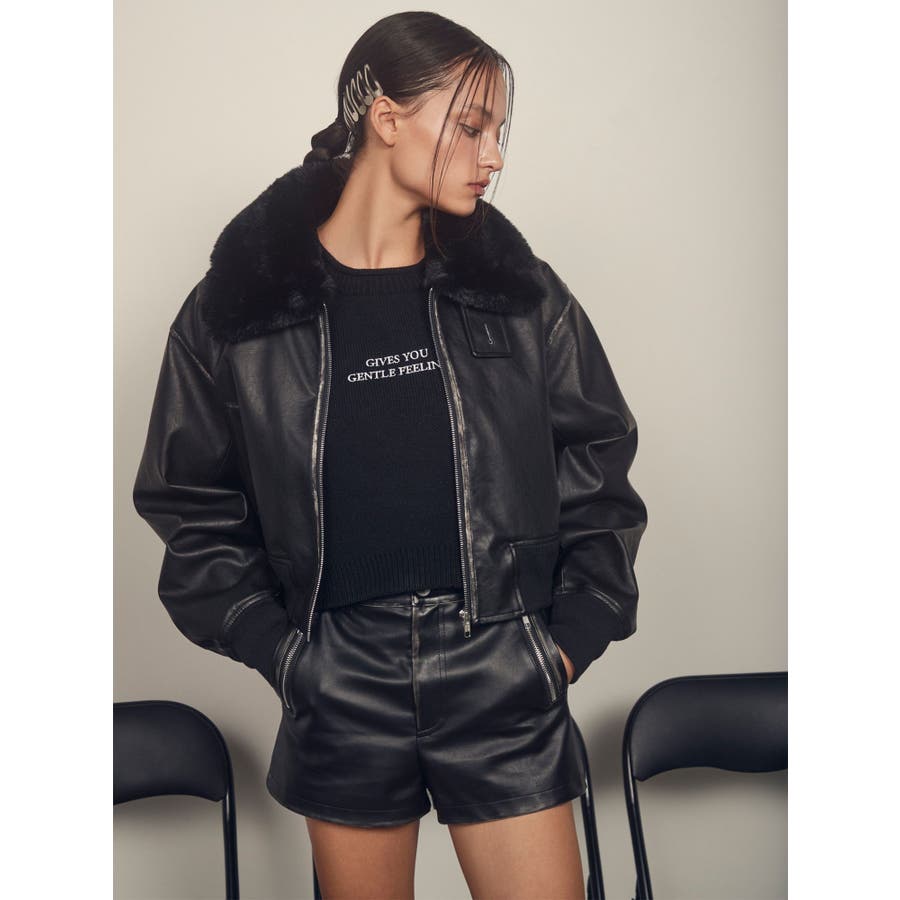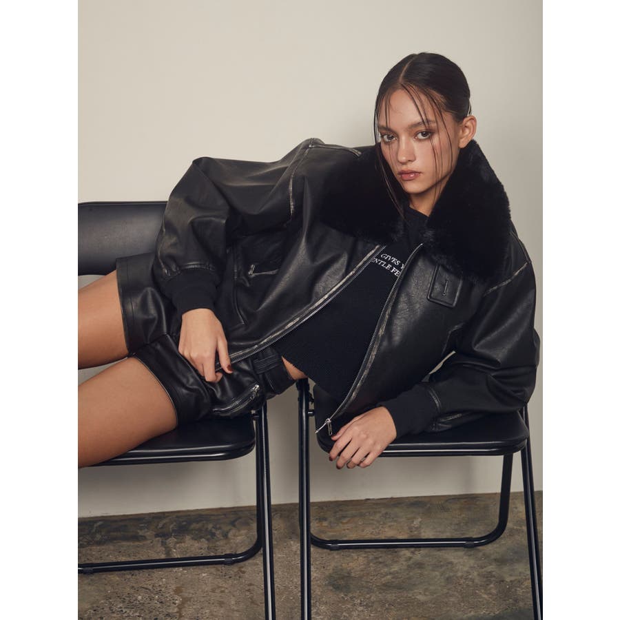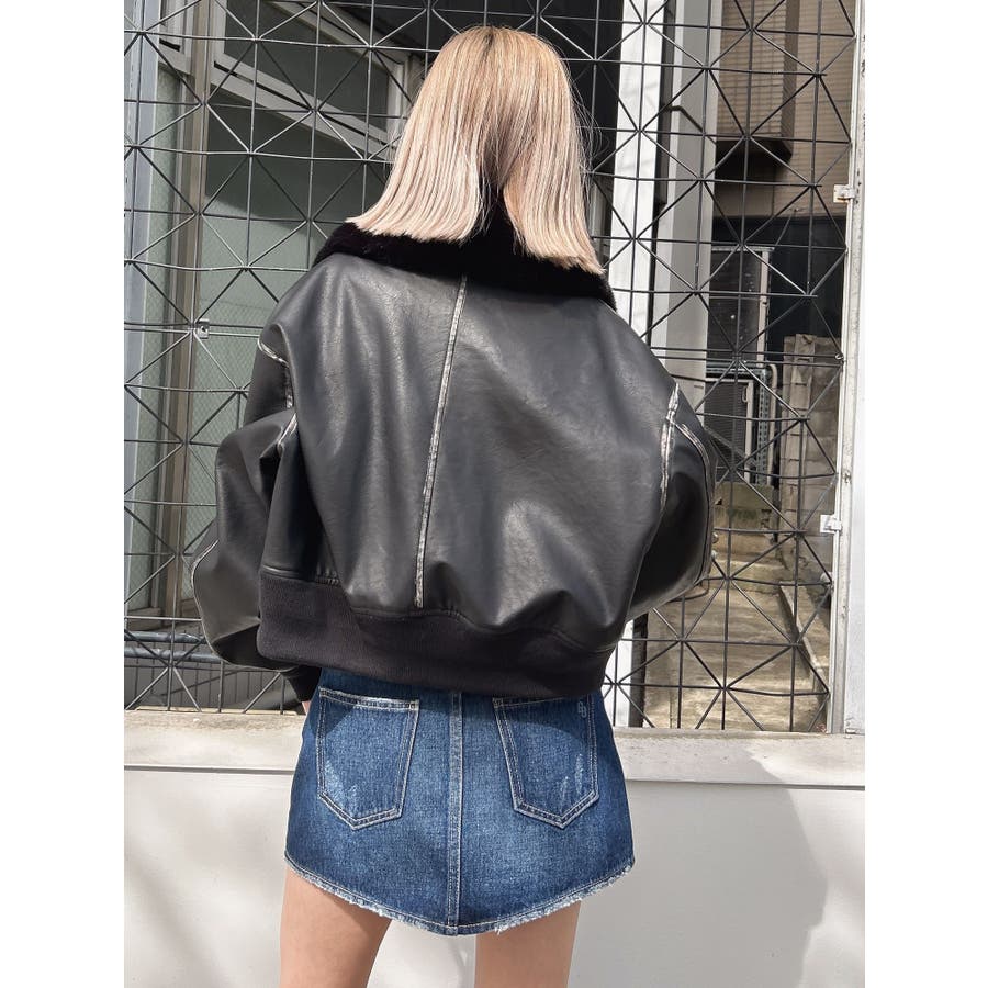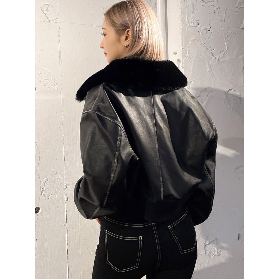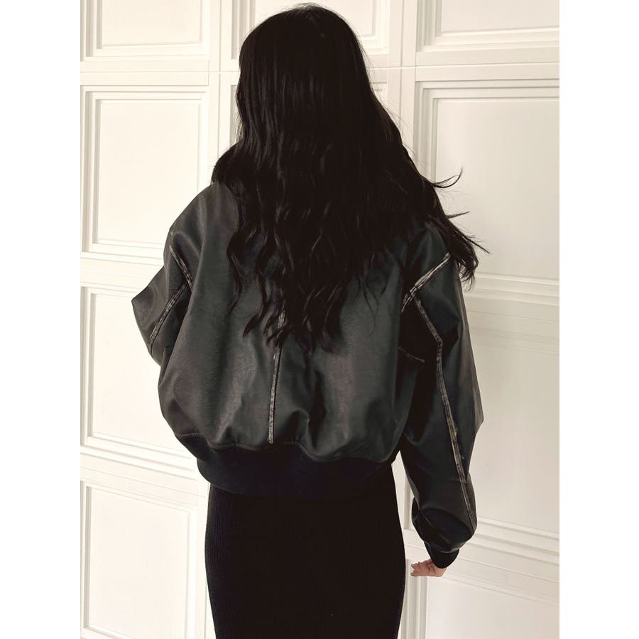 vintage processingフェイクレザーショートブルゾン
