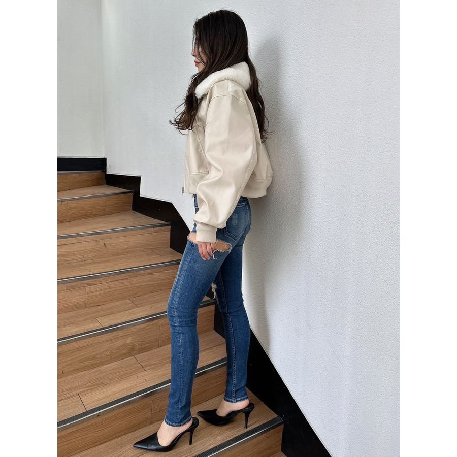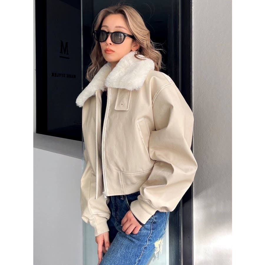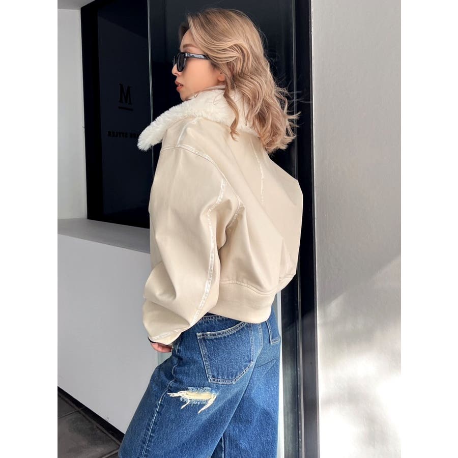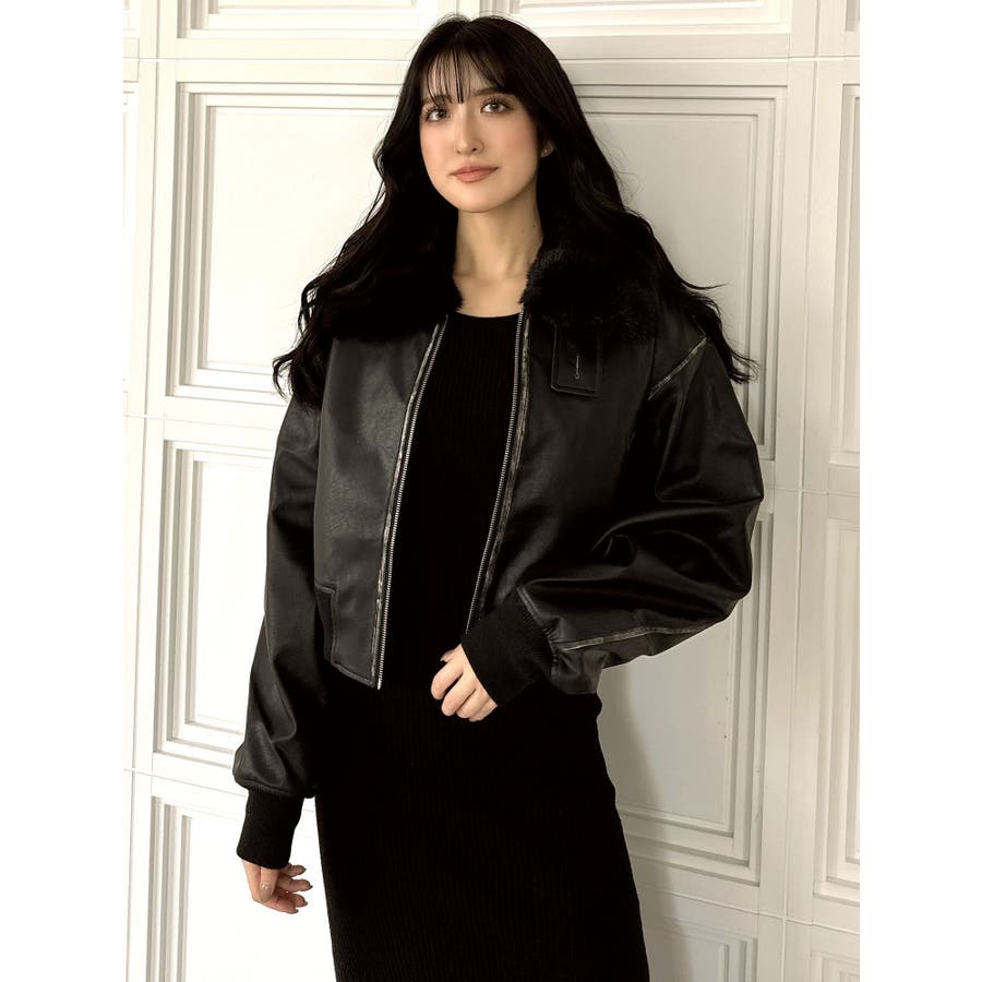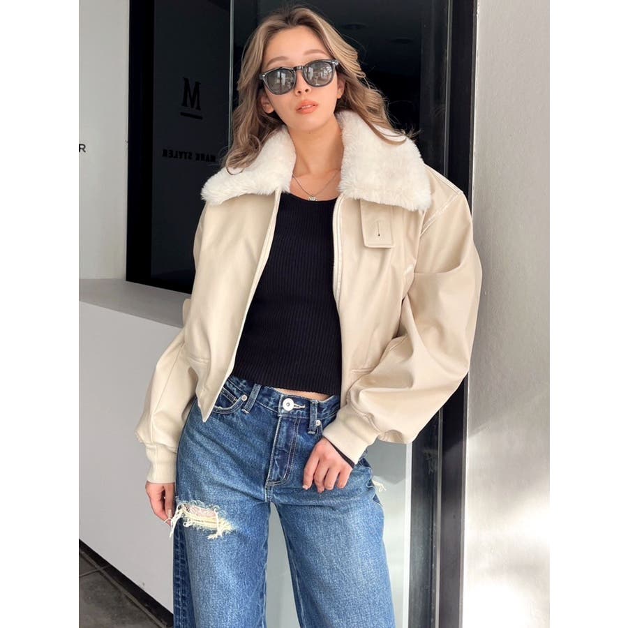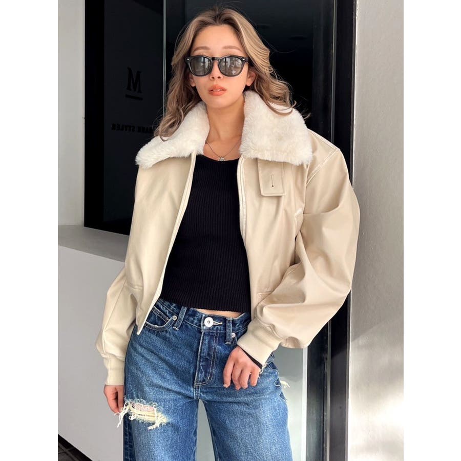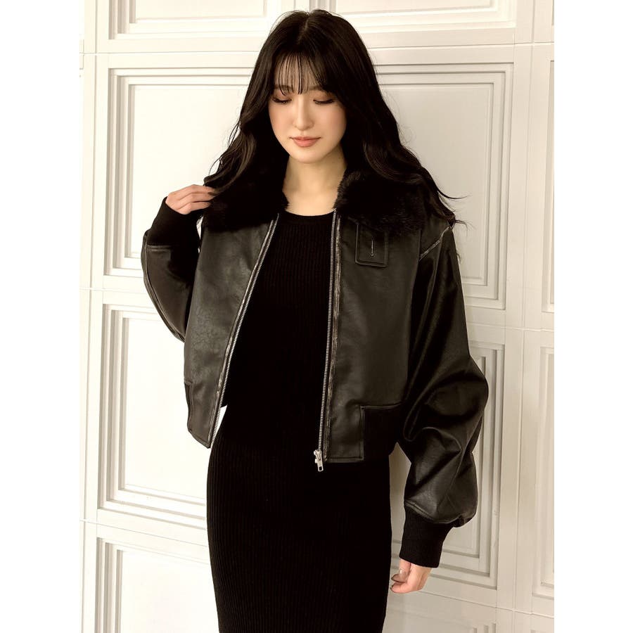 vintage processingフェイクレザーショートブルゾン