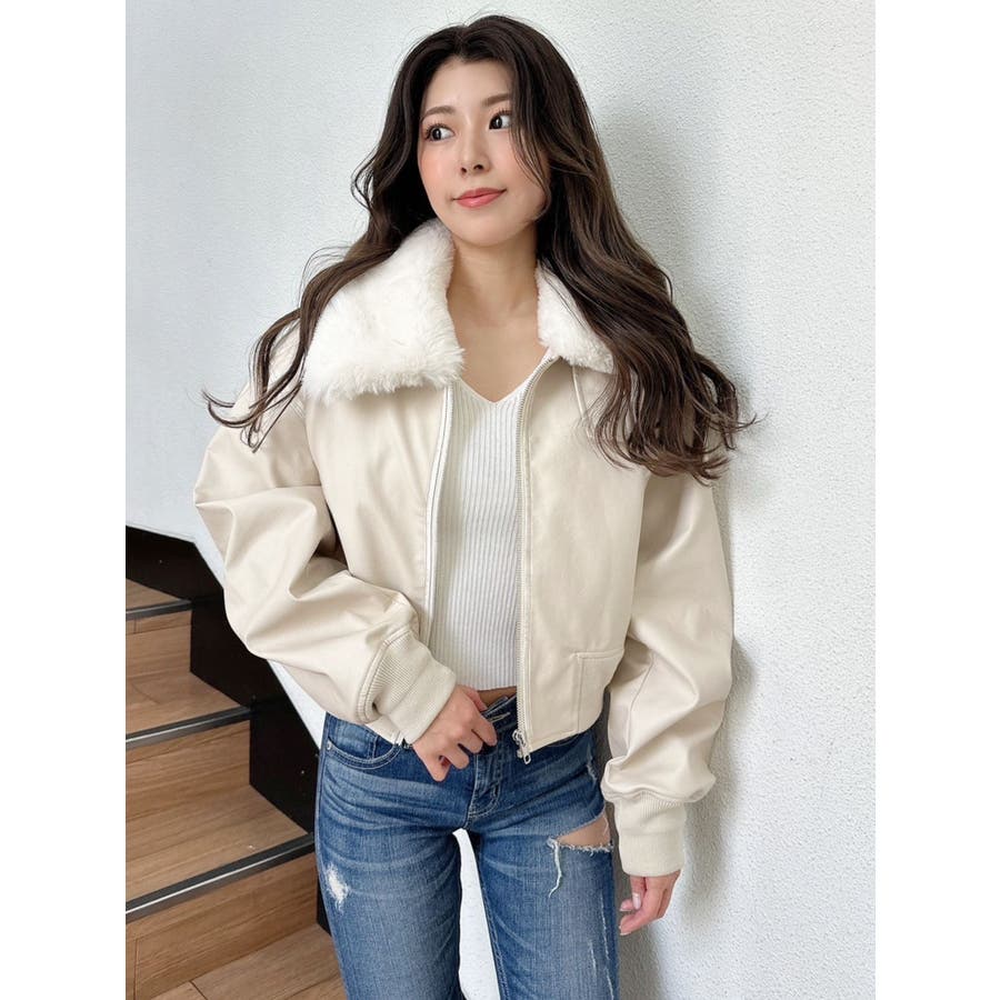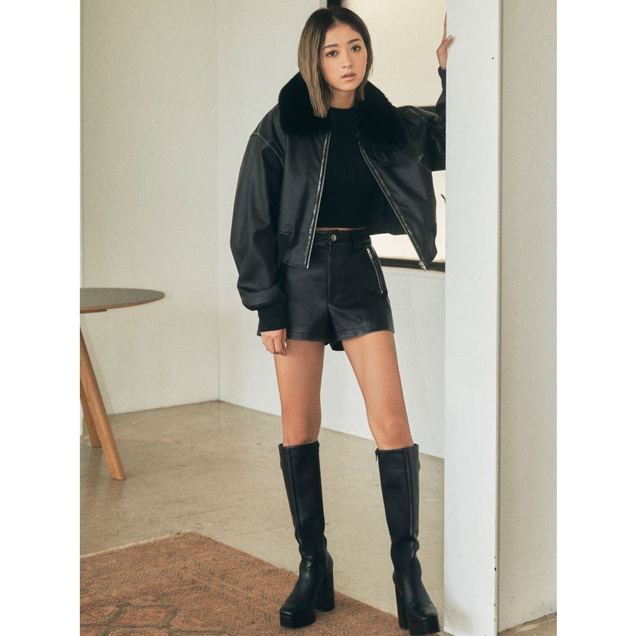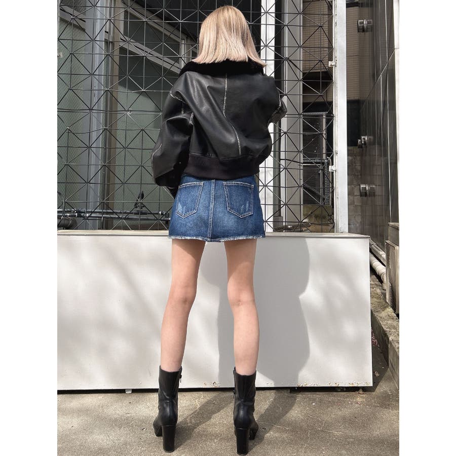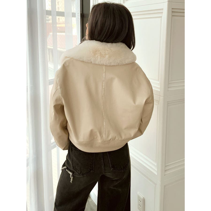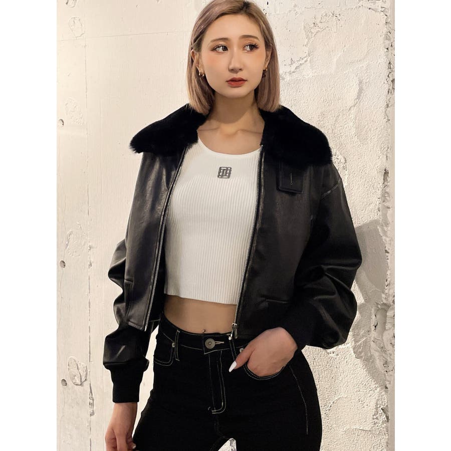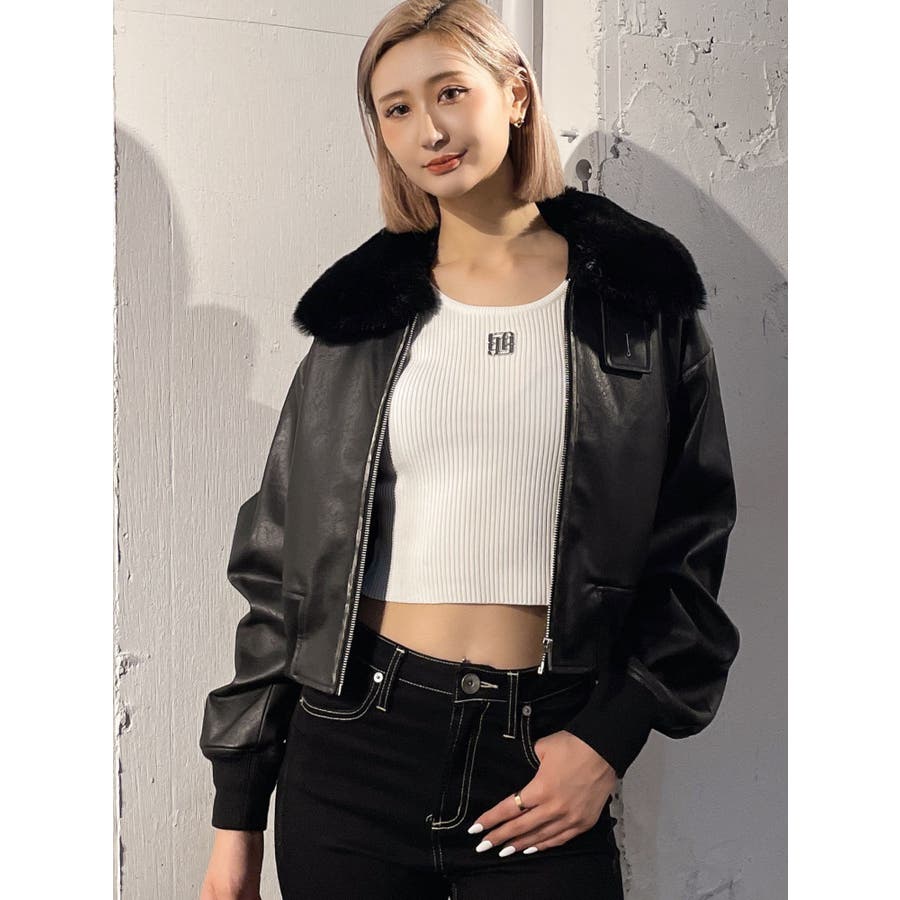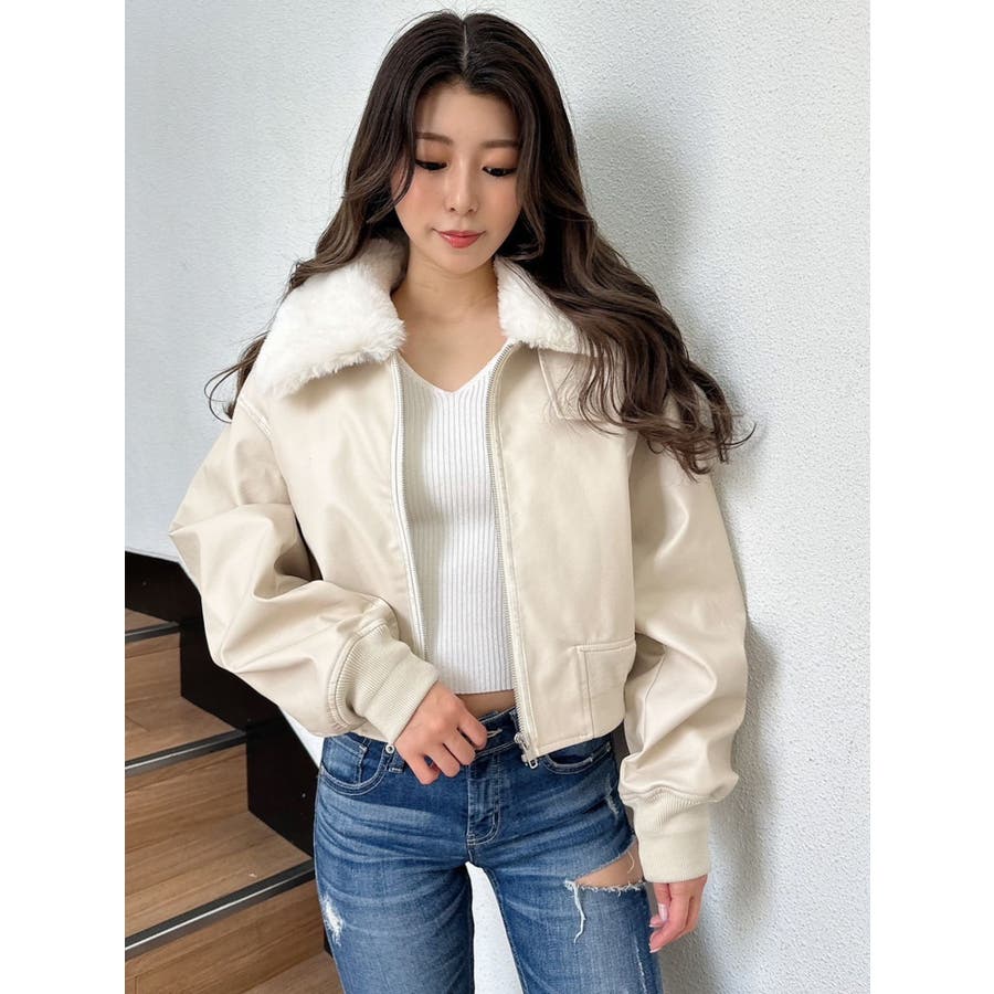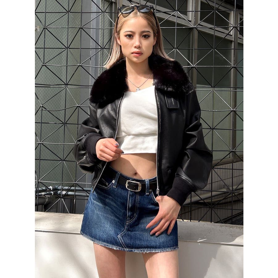 vintage processingフェイクレザーショートブルゾン