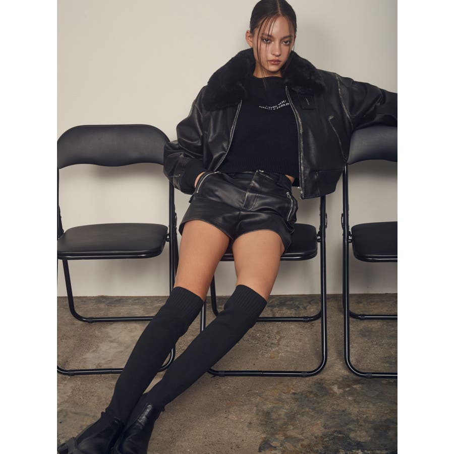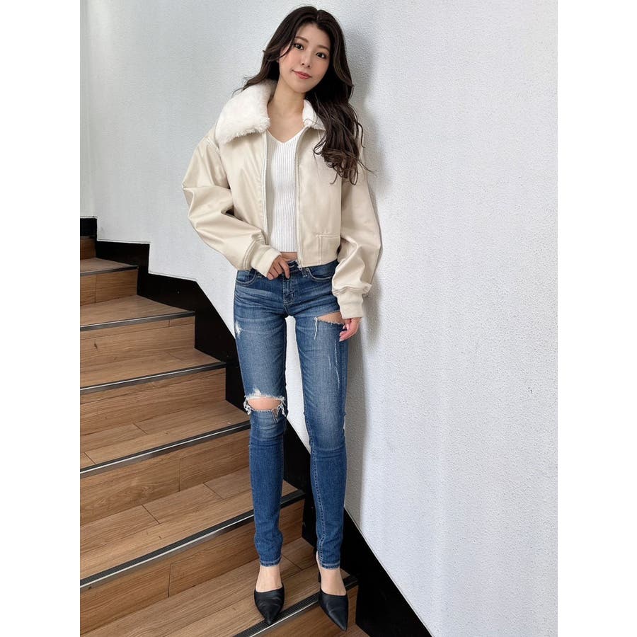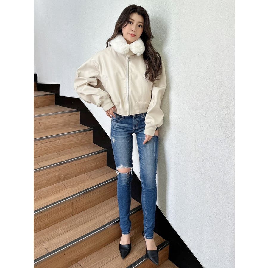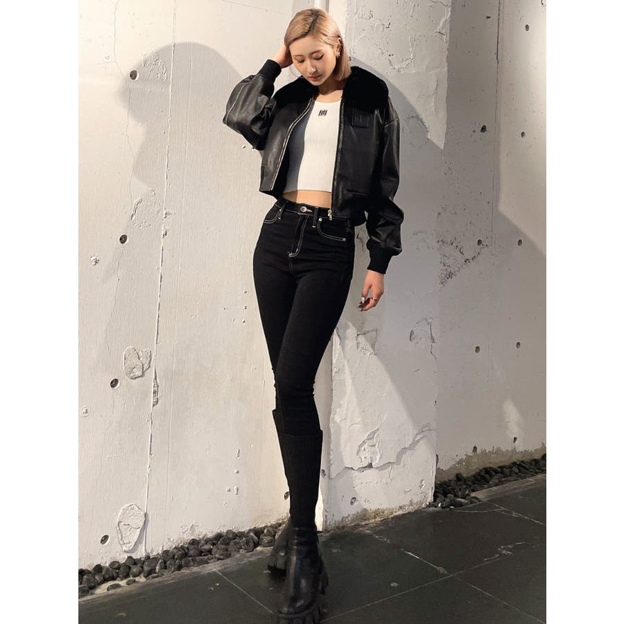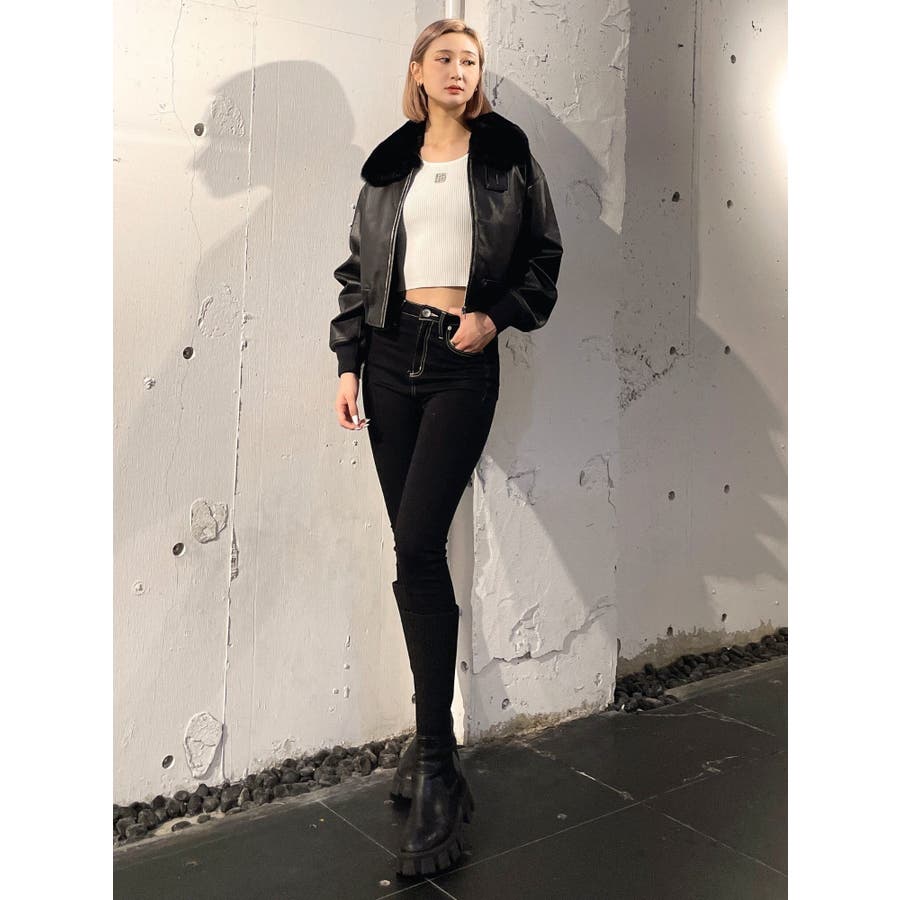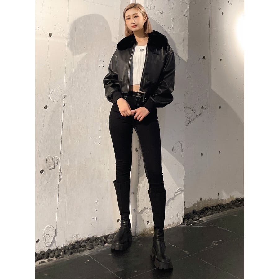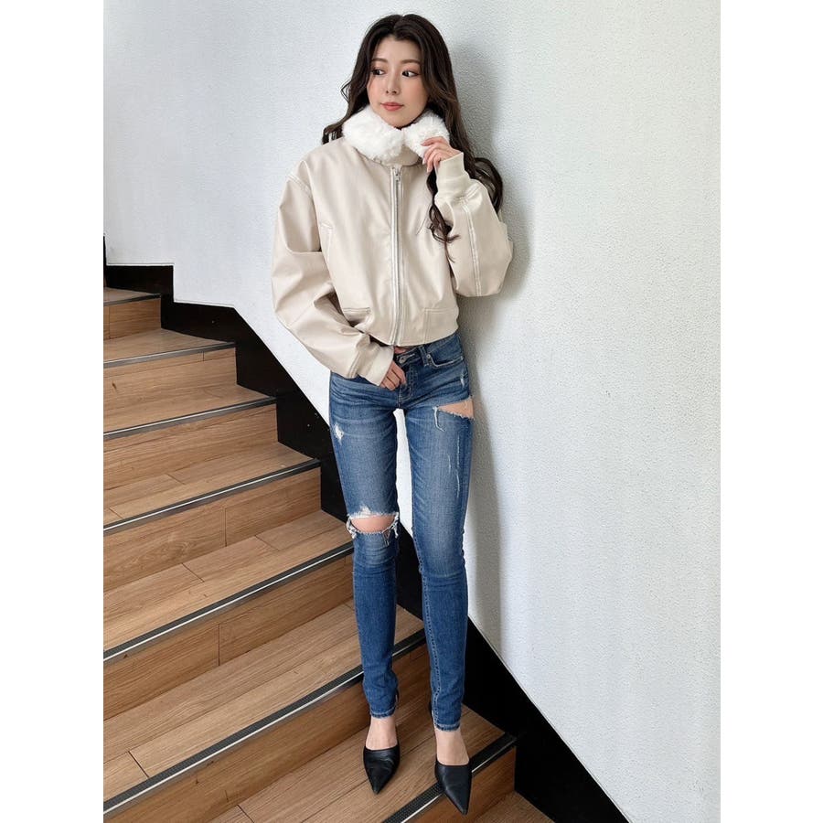 vintage processingフェイクレザーショートブルゾン