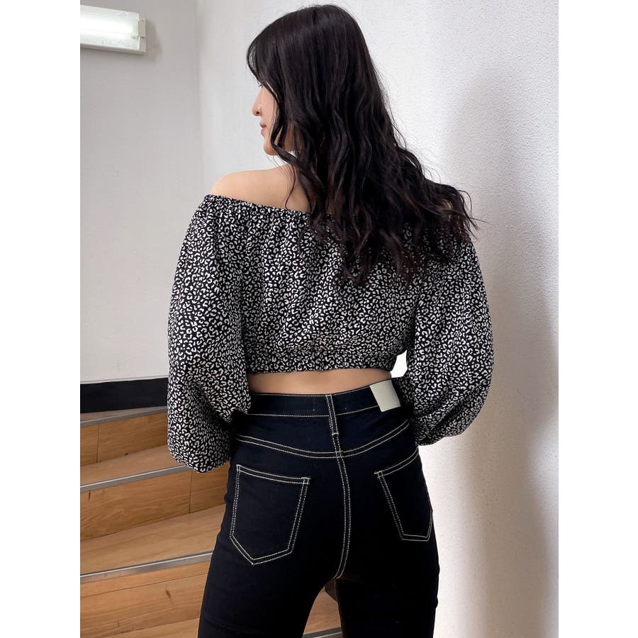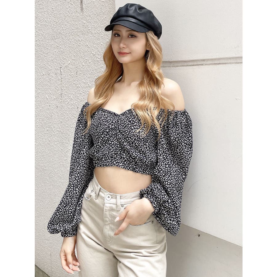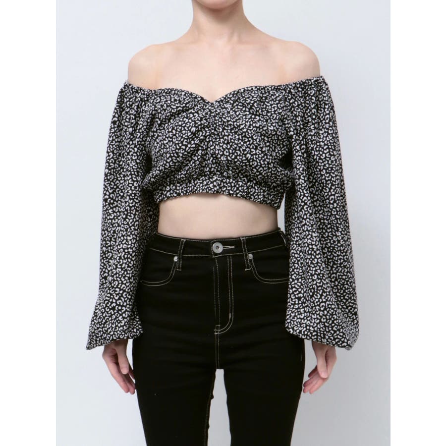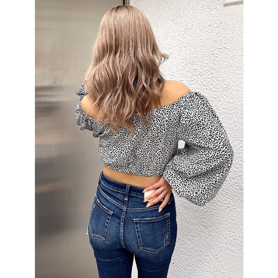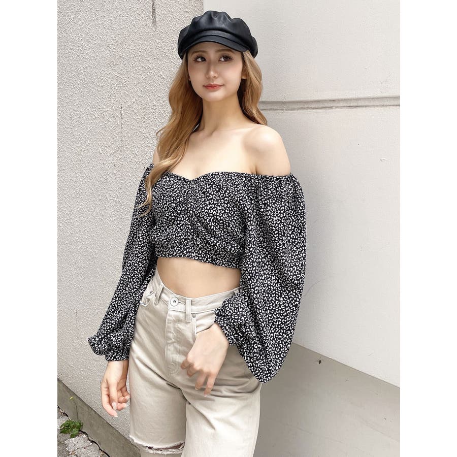 【アイボリー】レオパードオフショルコルセットブラウス