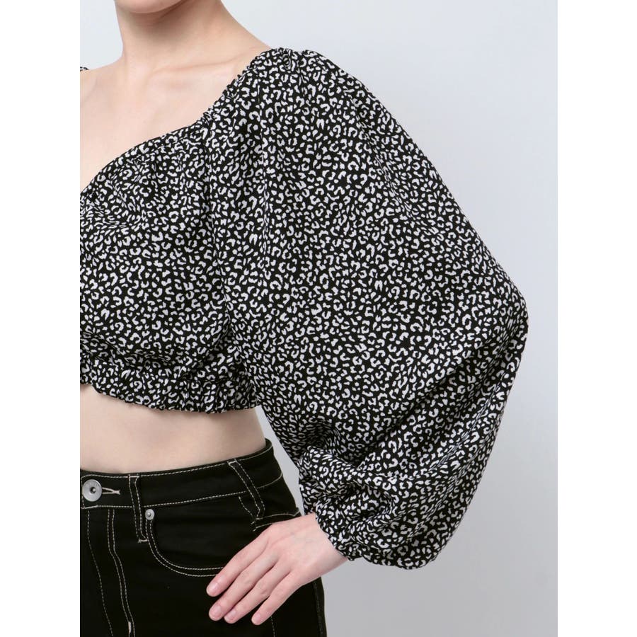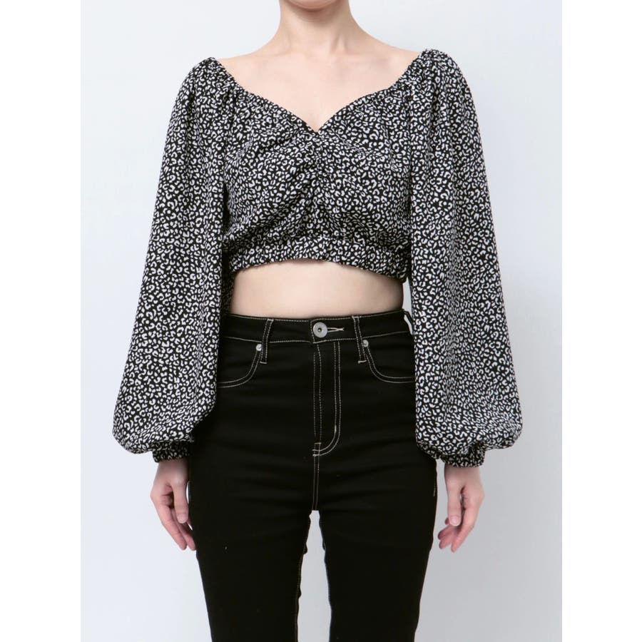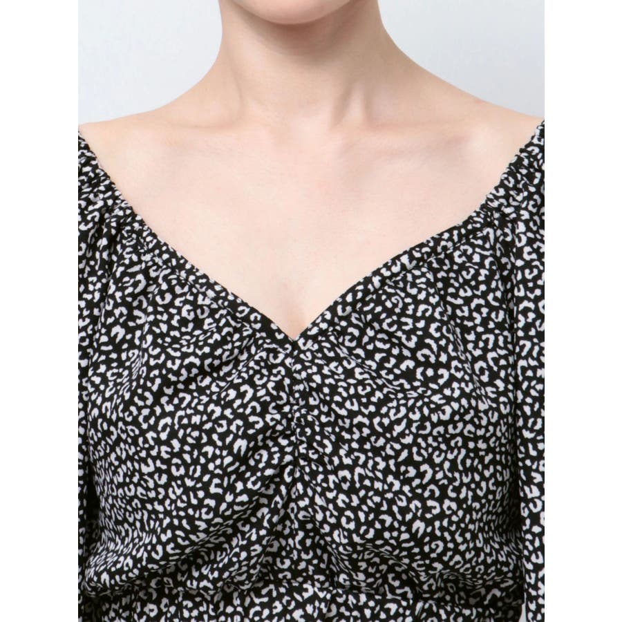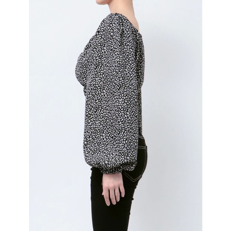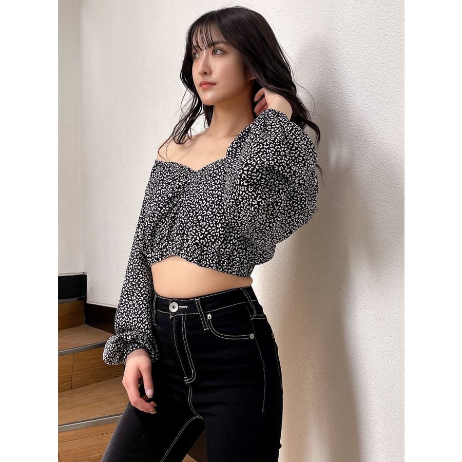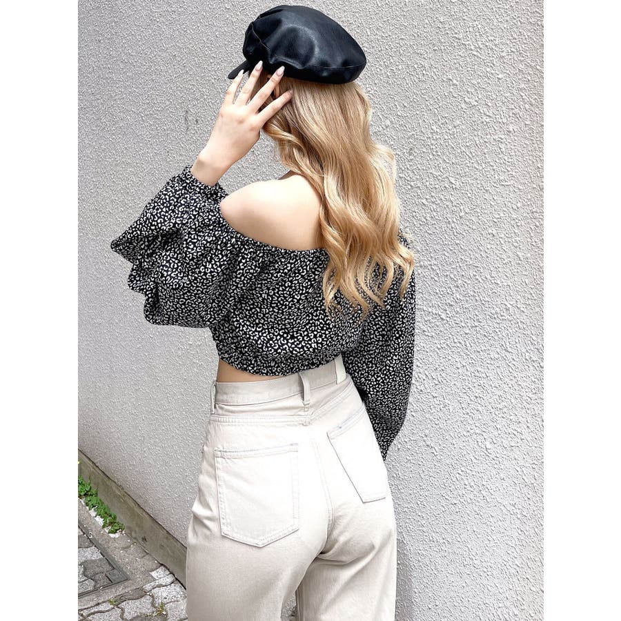 【アイボリー】レオパードオフショルコルセットブラウス