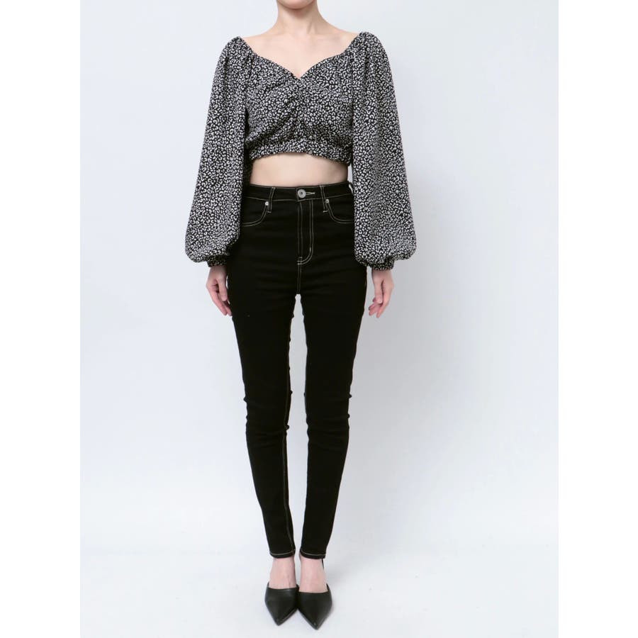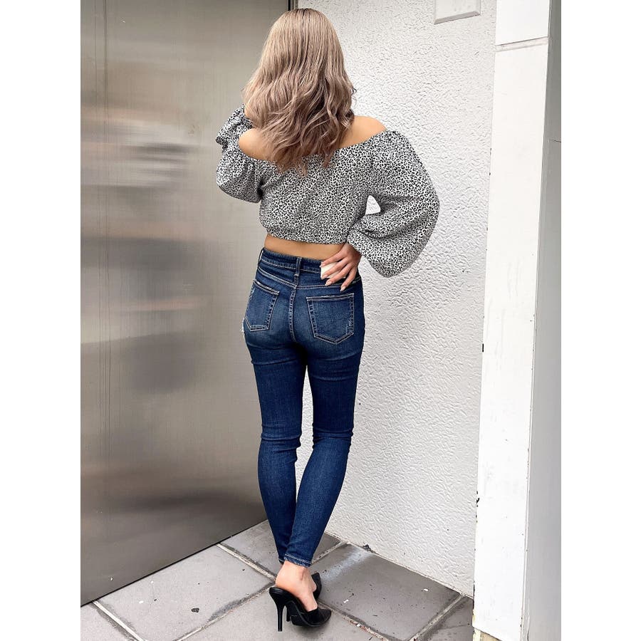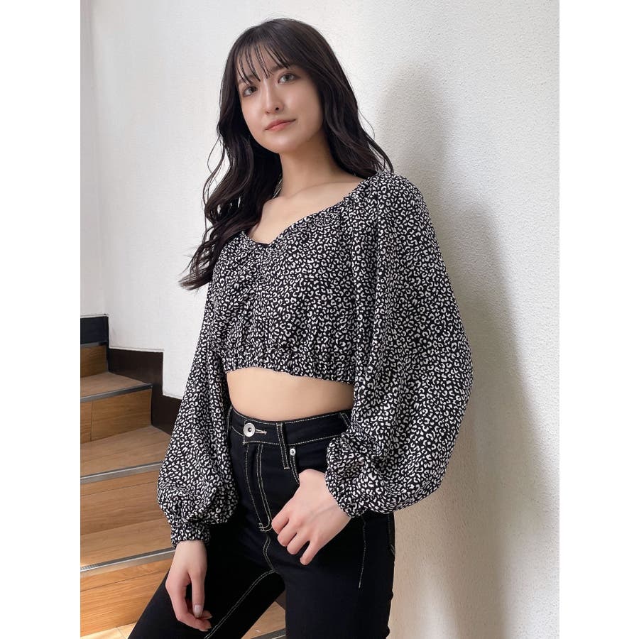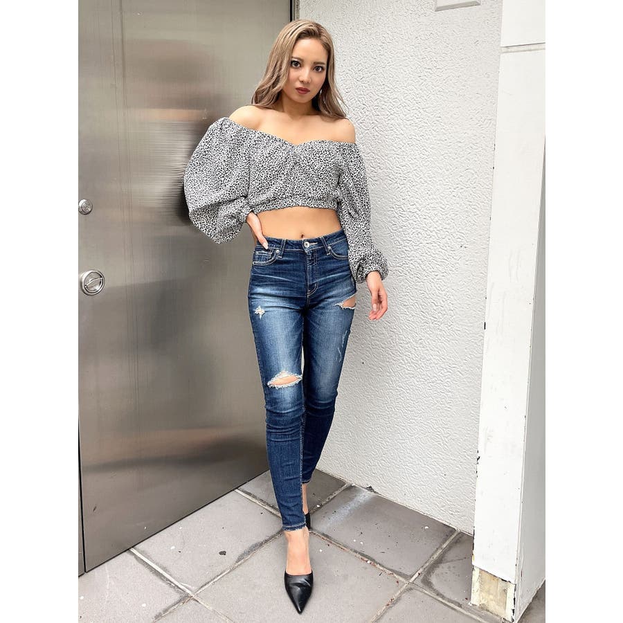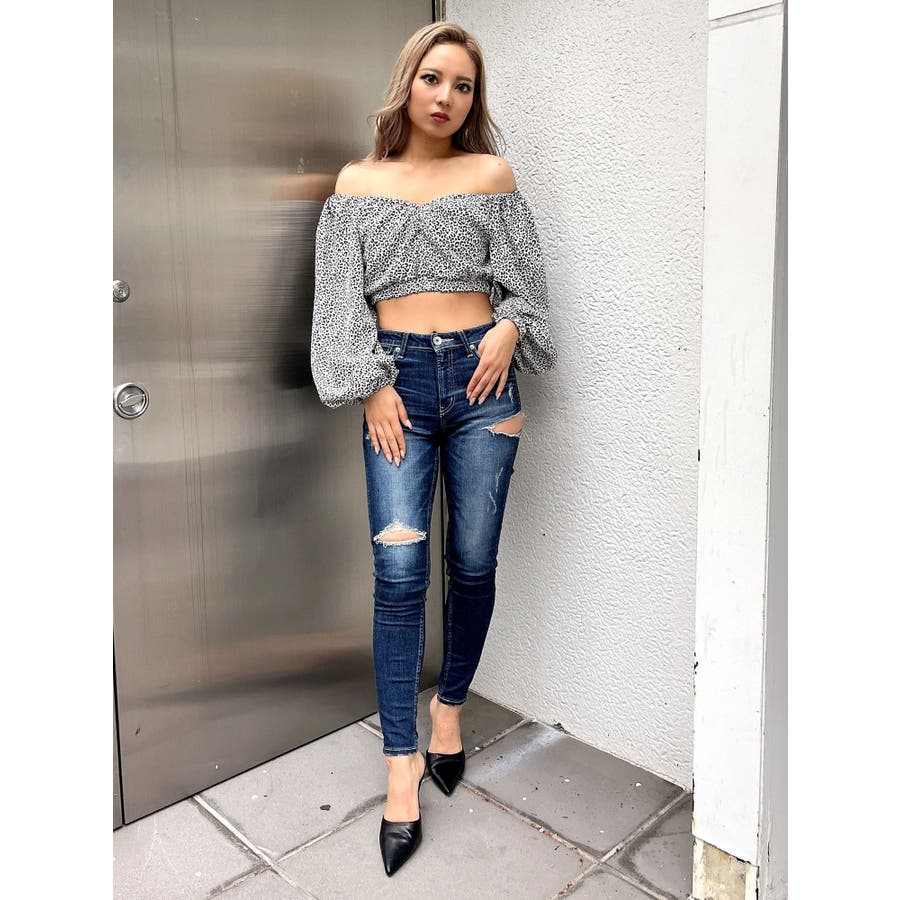 【アイボリー】レオパードオフショルコルセットブラウス