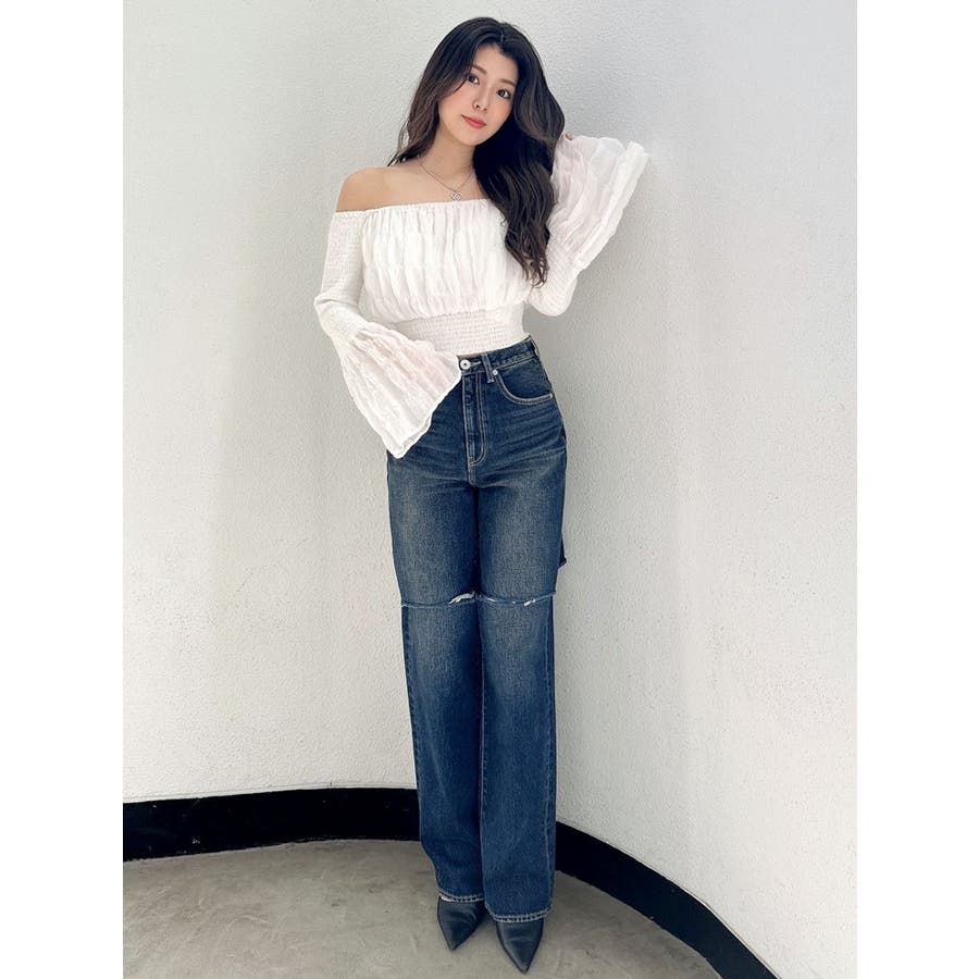 ■デザイン 脚長効果のあるフロントのニーダメージ・バックは左片足のみ入ったダメージデザインを施したワイドデニムパンツです。 ハイウエストデニムは脚長効果抜群。 足全体にもゆとりがあるワイドシルエットなので、 リラックスしながらもスタイルアップを叶えます。 ■スタイリング ハイウエストなので、ショート丈トップスの相性抜群です。 ■商品のお気に入り登録 再入荷通知やラスト1点、お得なプライスダウンの情報も受け取ることができます。 ぜひご登録ください◎ ・・・・・・・・・・・・・・・・・・・・・・ ※着用画像はフラッシュの加減で実際の製品と色味等が異なる場合がございますので、生地のズームアップ画像をご確認ください。 ※ご利用の端末画面の設定により実際の商品と色味が異なる場合がございます。 【商品特徴】透け感:なし伸縮性:なし生地の厚さ:普通 サイズ感:普通 裏地:なし ポケット:あり(前/後)