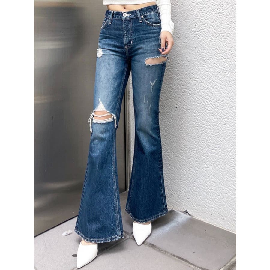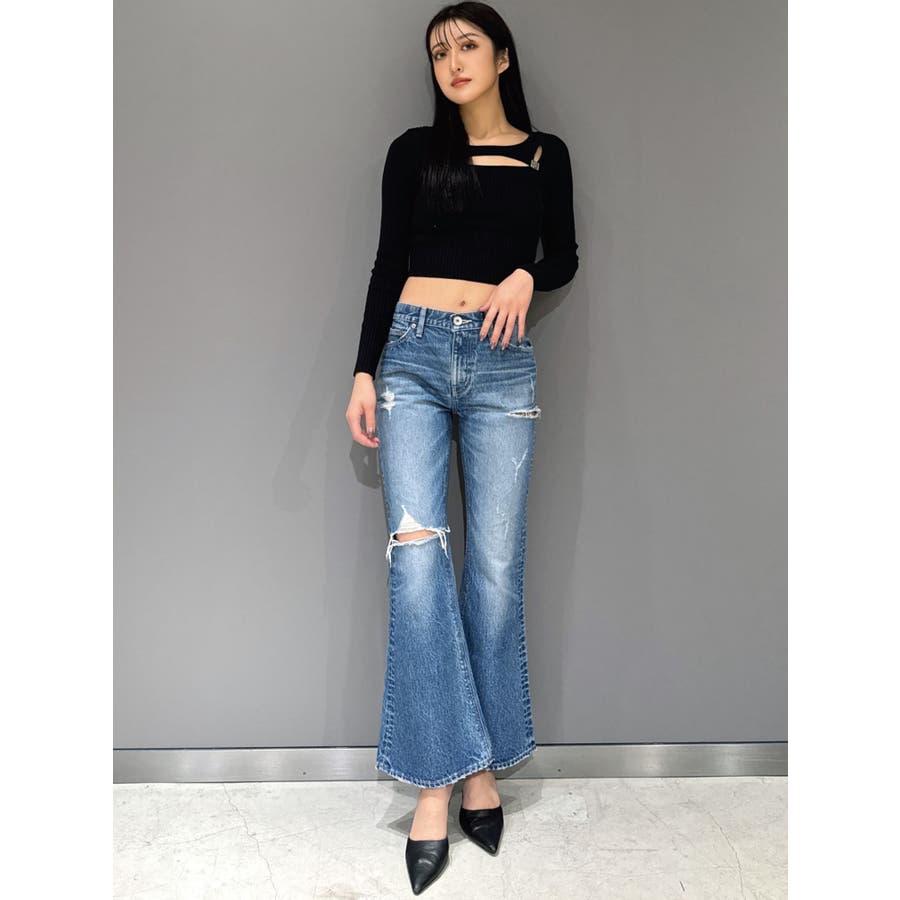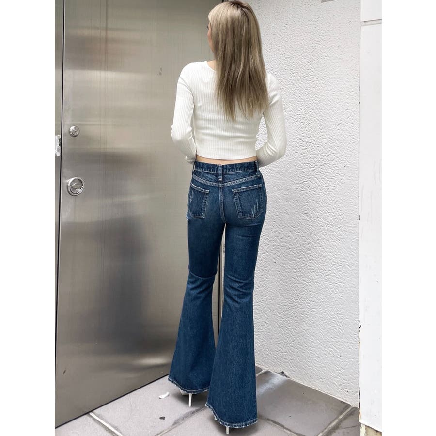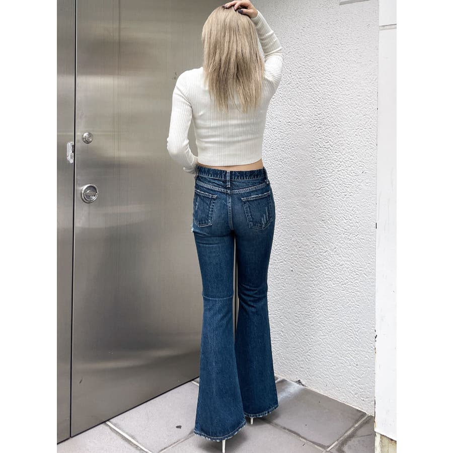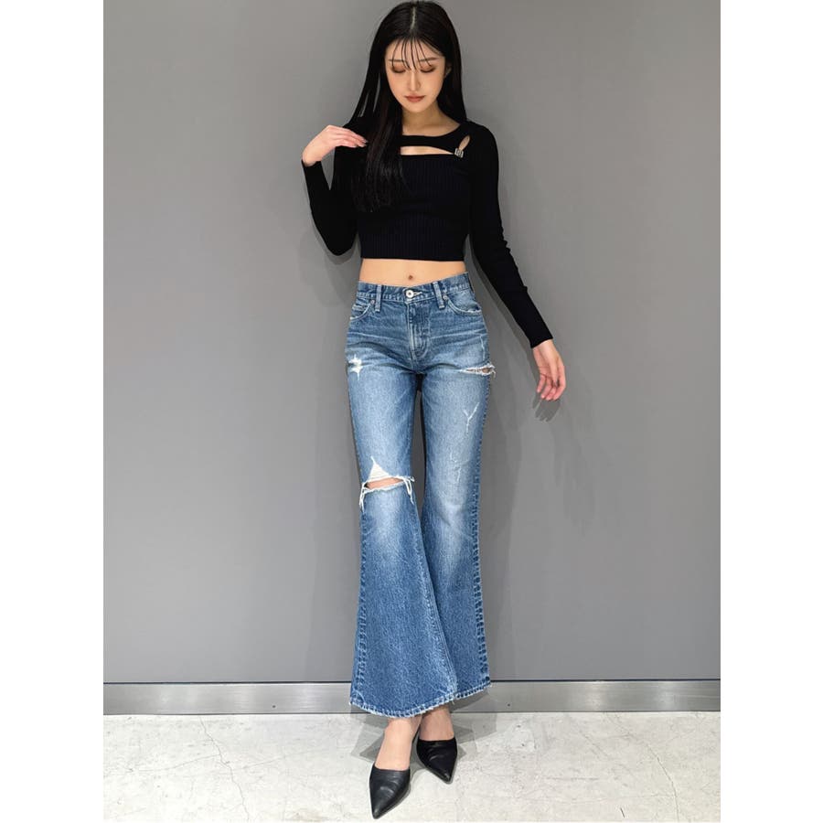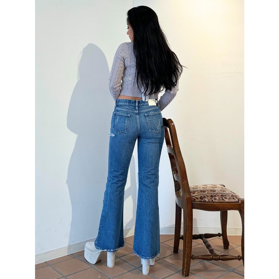 ミドルウエストSIDE RIPPEDフレアデニムパンツ