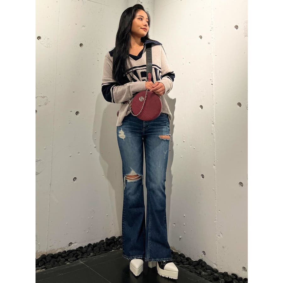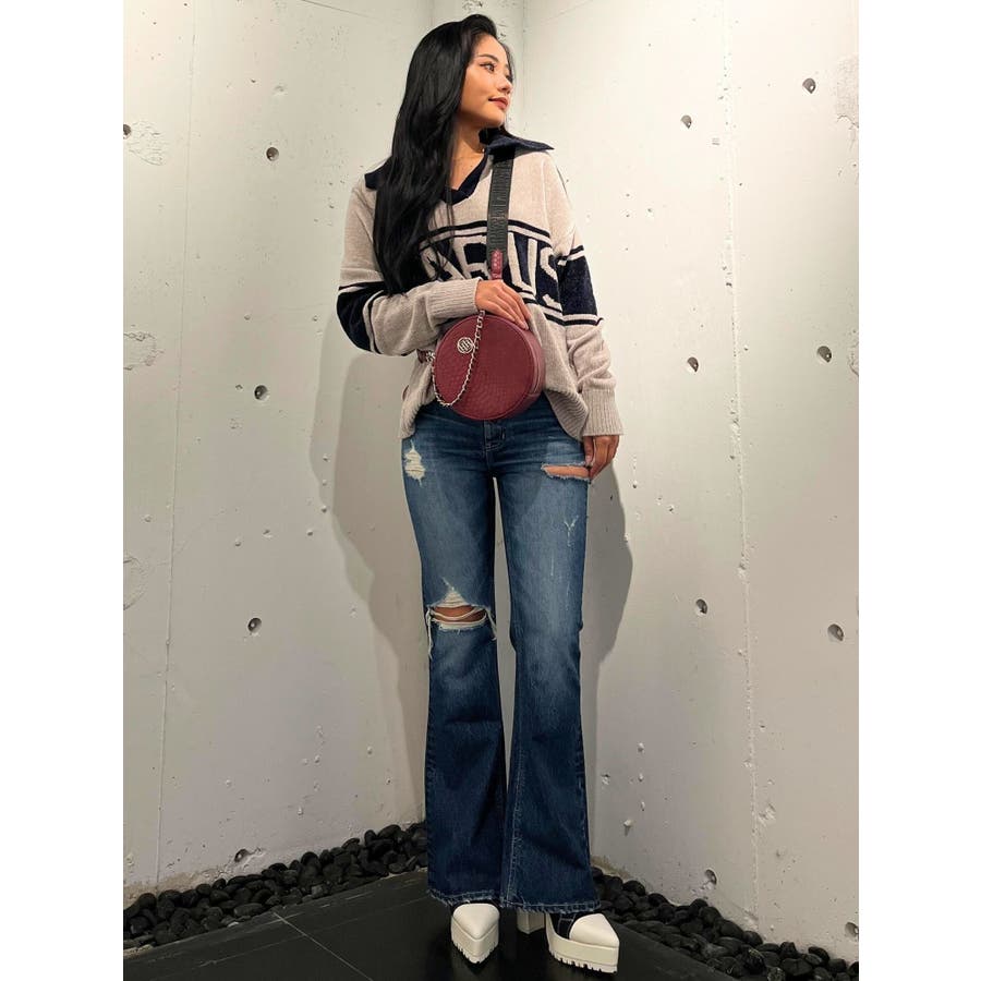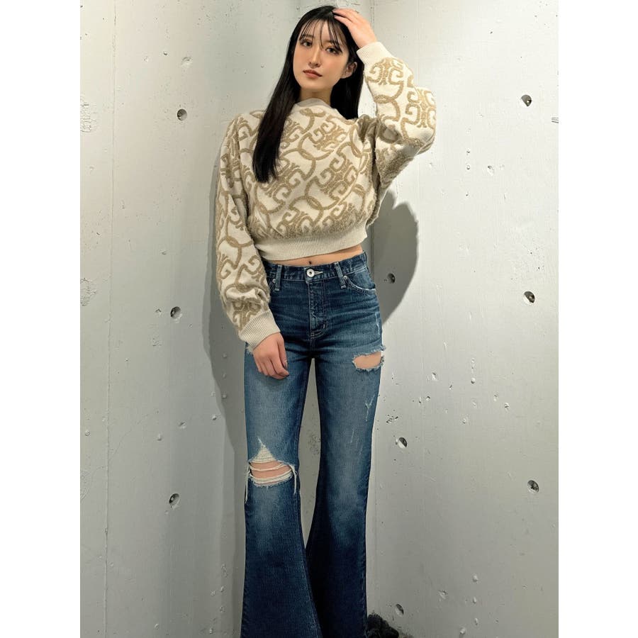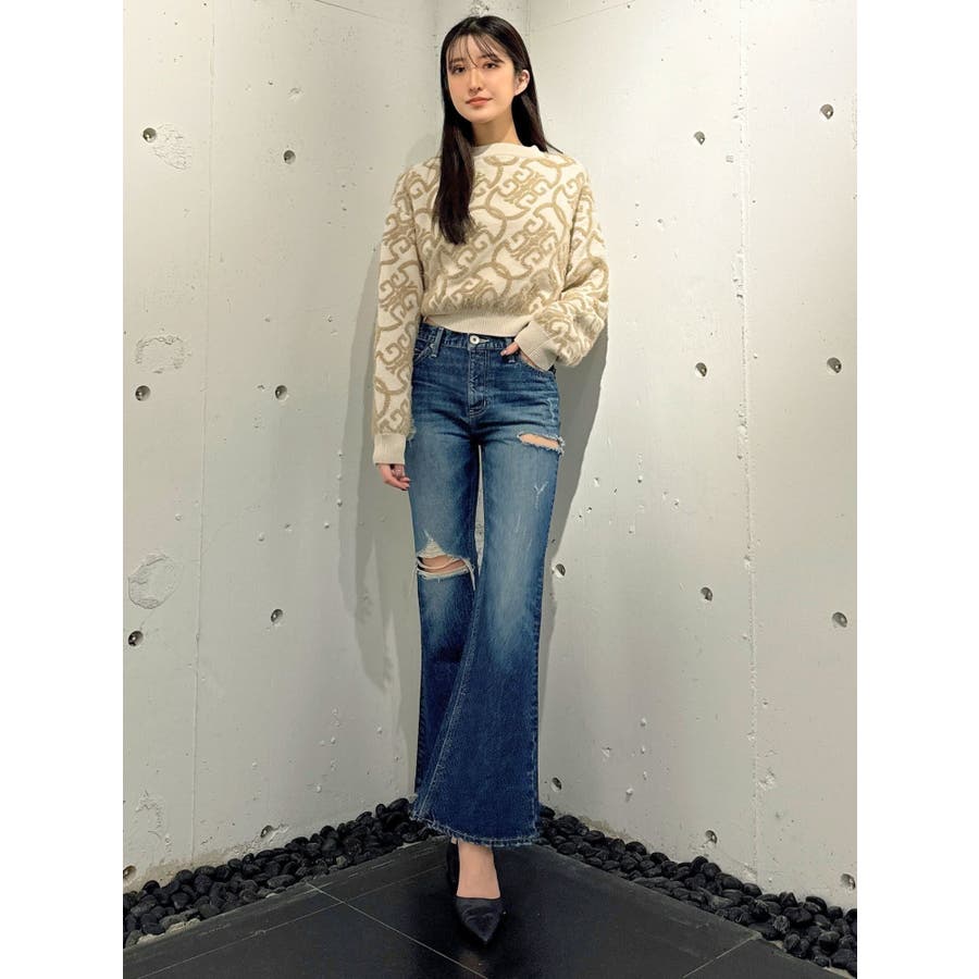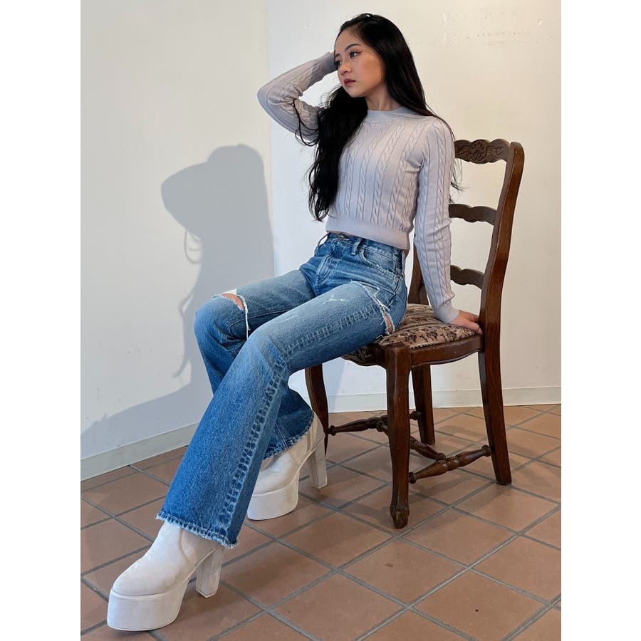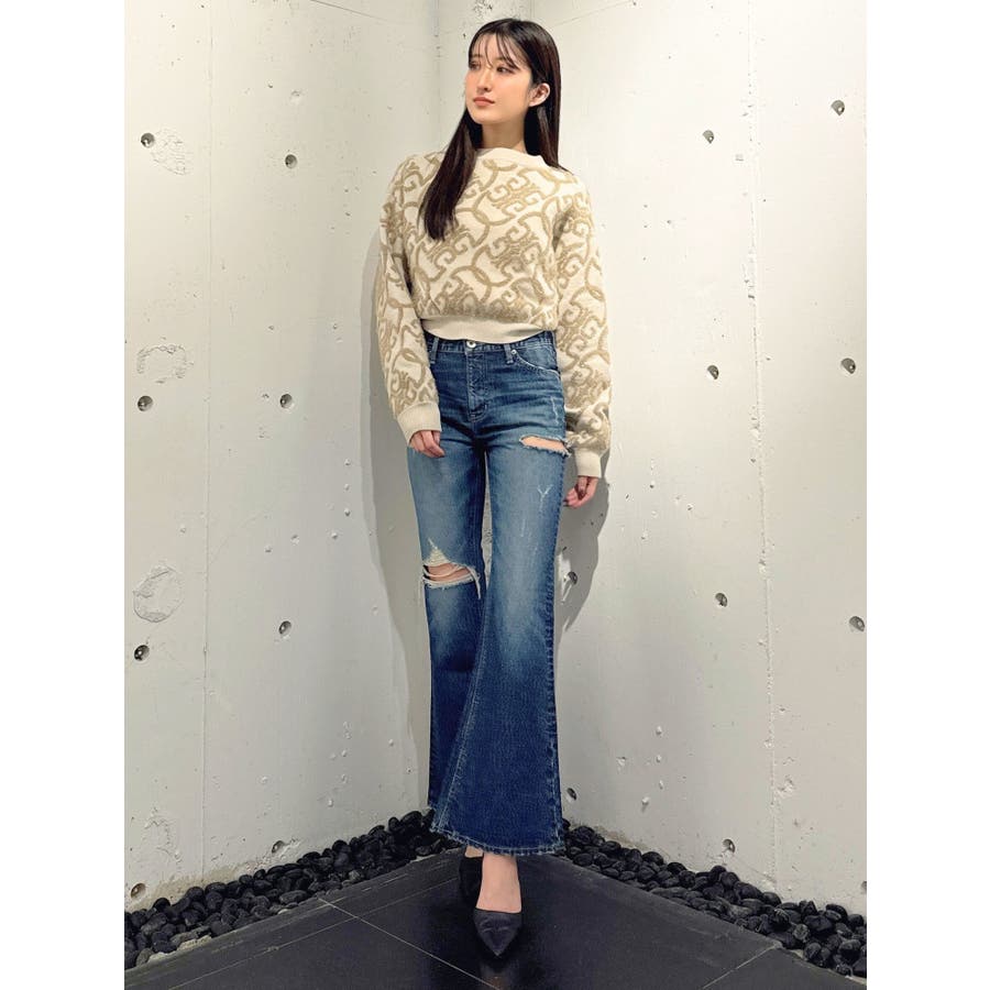 ミドルウエストSIDE RIPPEDフレアデニムパンツ