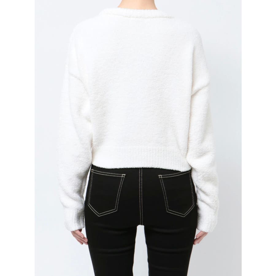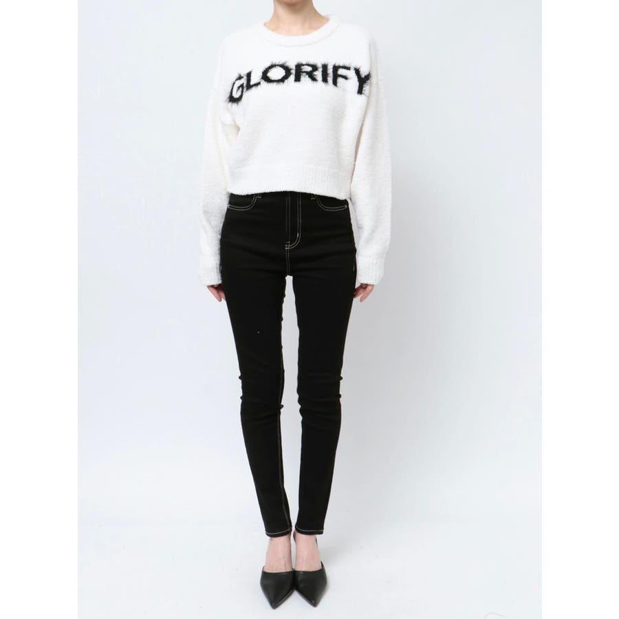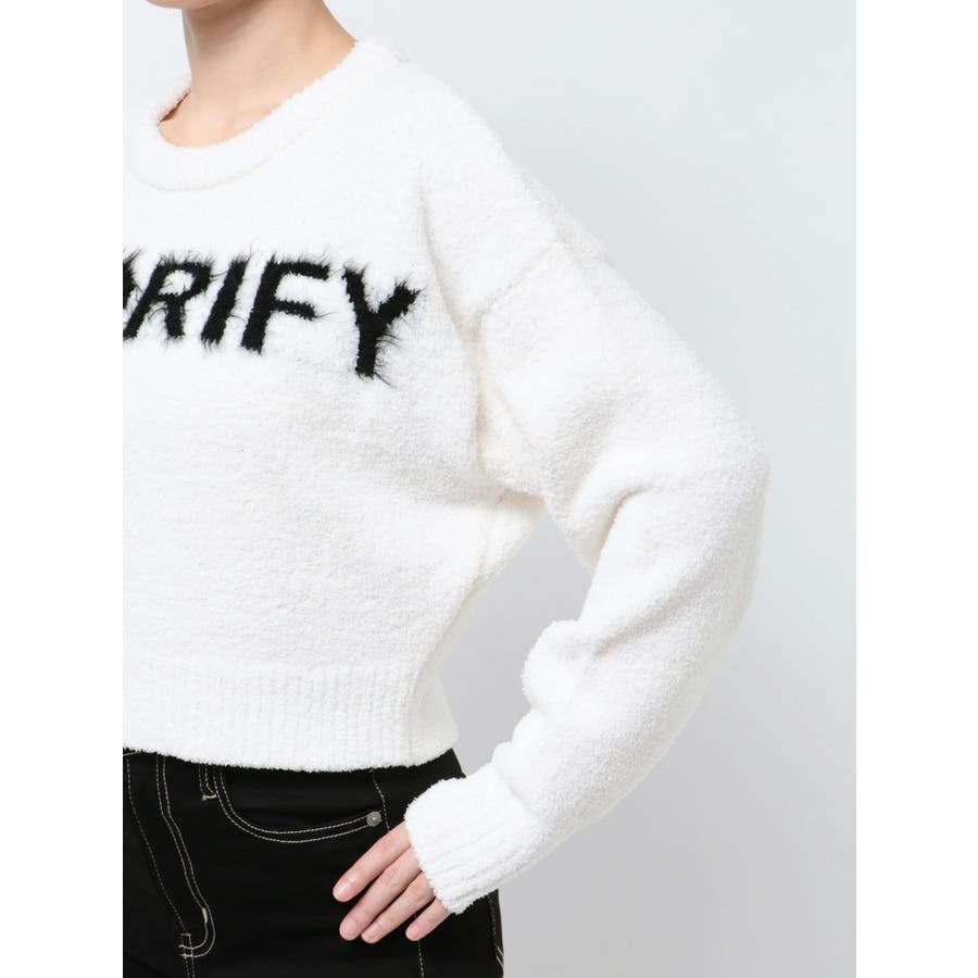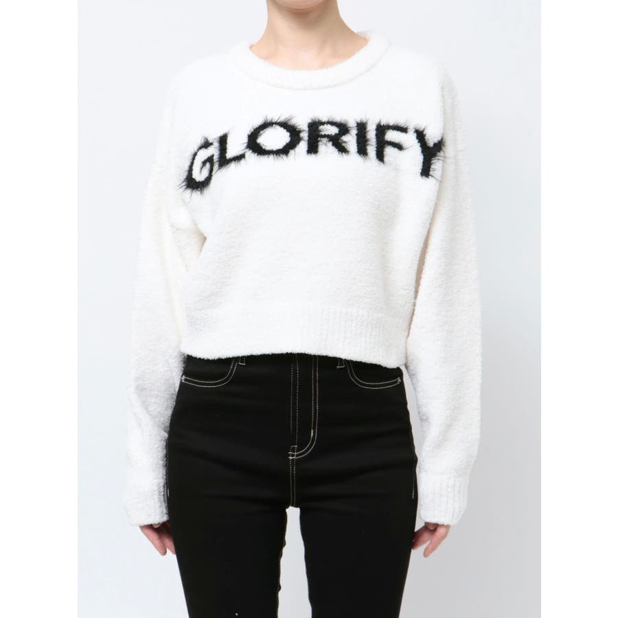 ■デザイン 人気のモール糸を使用した、肌触りの気持ちいいニットトップスです。 ロゴの部分がシャギー糸になっているので、デザイン性が高くなりシンプル過ぎないロゴ感がオシャレです。 『GLORIFY』意味:讃美 ■スタイリング 低身長の方はミニボトムと合わせてワンピース風に着こなしていただくのがオススメです。 レギンス合わせなど、ボトムスはタイトなものがバランスが良いです。 ■商品のお気に入り登録 再入荷通知やラスト1点、お得なプライスダウンの情報も受け取ることができます。 ぜひご登録ください◎ ・・・・・・・・・・・・・・・・・・・・・・ ※着用画像はフラッシュの加減で実際の製品と色味等が異なる場合がございますので、生地のズームアップ画像をご確認ください。 ※ご利用の端末画面の設定により実際の商品と色味が異なる場合がございます。 【商品特徴】透け感:なし伸縮性:あり生地の厚さ:普通サイズ感:ゆったり裏地:なしポケット:なし