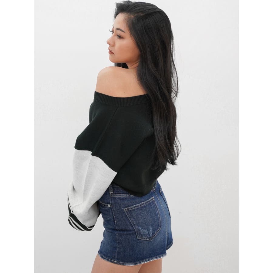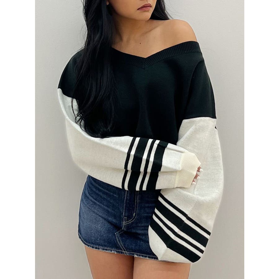 ■デザイン Vネックとオフショルダーの2wayで着用できるニットトップスです。 程よい厚みのある糸を使用しているので透け感も無く着用していただけます。 裾がキュっとなっているのでタックインスタイルでも使っていただけます。 ■スタイリング ハイウエストボトムとの相性抜群です。 フルレングス合わせなら、オフショルダーで着用していただくと程よい肌見せでGYDA(ジェイダ)らしいコーディネートになります。 ■商品のお気に入り登録 再入荷通知やラスト1点、お得なプライスダウンの情報も受け取ることができます。 ぜひご登録ください◎ ■この商品を見ている人におすすめ その他のニットトップスこちら ・・・・・・・・・・・・・・・・・・・・・・ ※着用画像はフラッシュの加減で実際の製品と色味等が異なる場合がございますので、生地のズームアップ画像をご確認ください。 ※ご利用の端末画面の設定により実際の商品と色味が異なる場合がございます。 【商品特徴】透け感:なし伸縮性:あり生地の厚さ:普通サイズ感:ゆったり裏地:なしポケット:なし