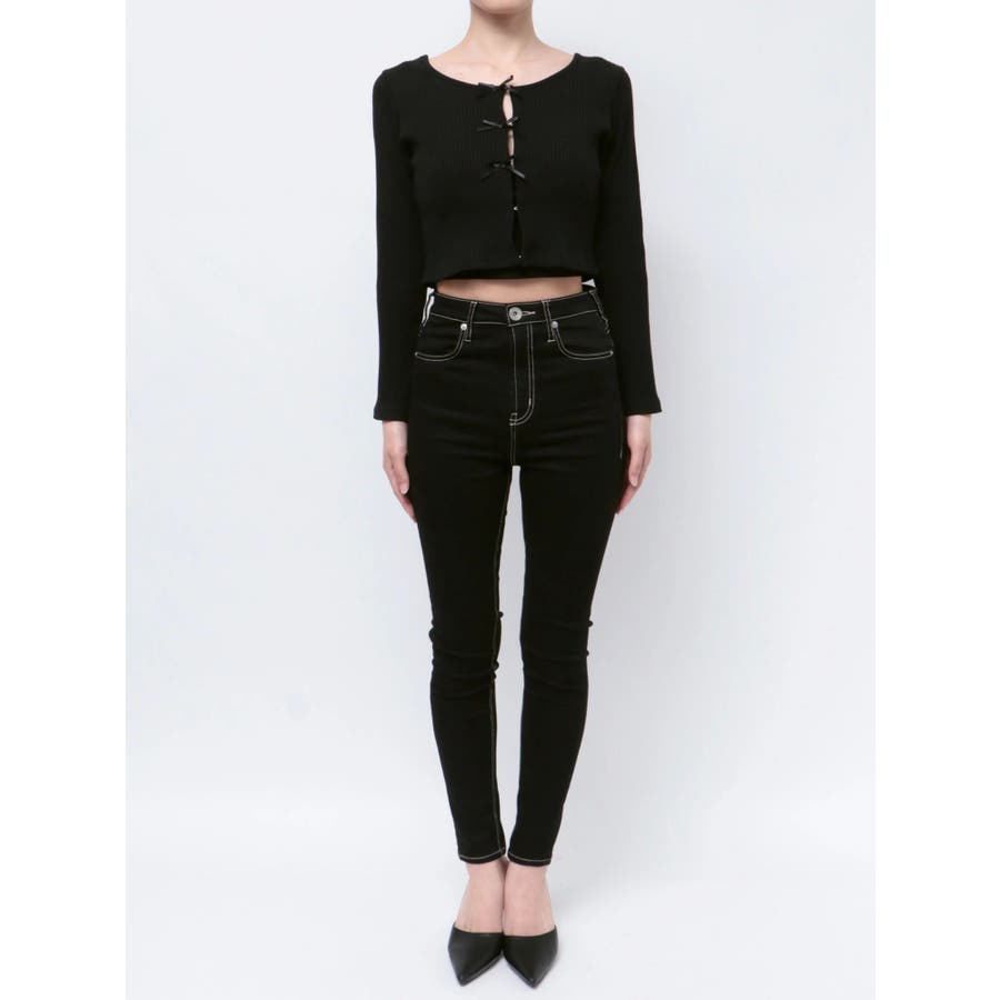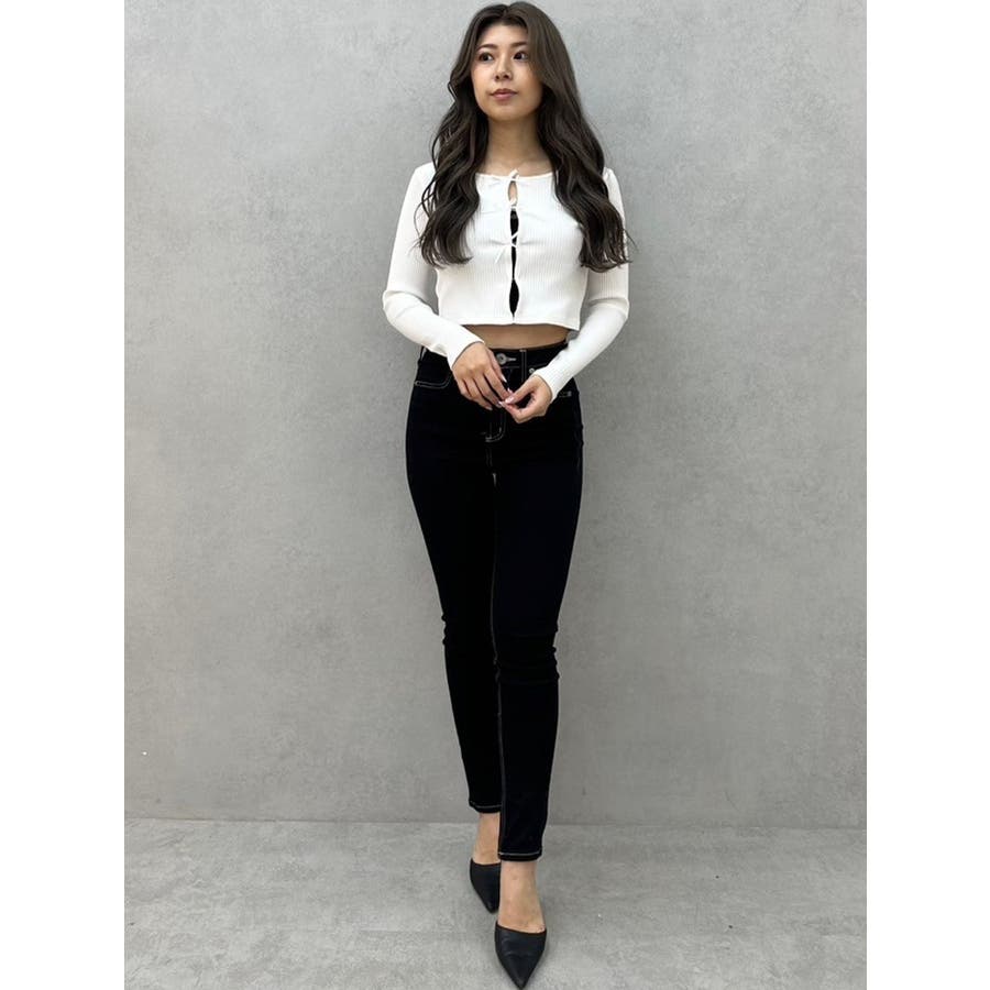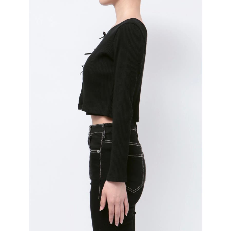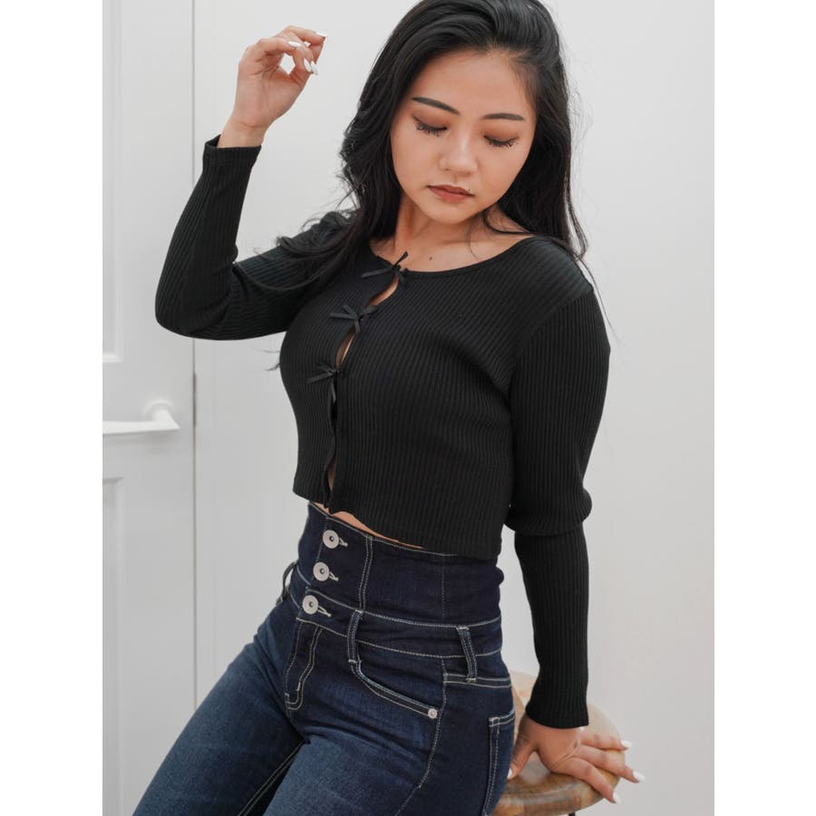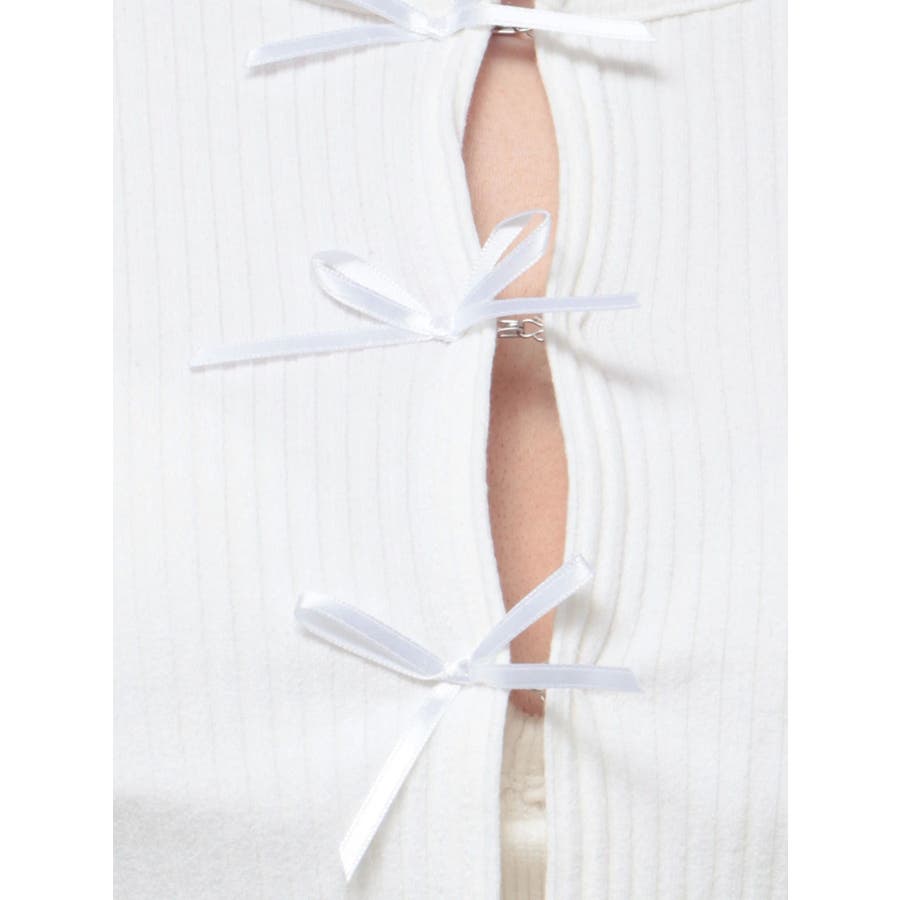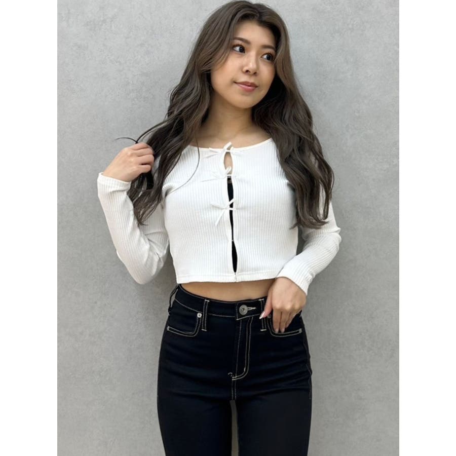 ■デザイン カーディガンとトップスに使える1枚。 ホックを全て閉じて前後で着用するとトップスの様に着用が可能です。 アウターのインナートップスとして大活躍する1枚です。 ■スタイリング ビスチェに合わせてスタイリングを楽しんでください。 GYDA定番デニムに合わせるのが◎ ・・・・・・・・・・・・・・・・・・・・・・ ※着用画像はフラッシュの加減で実際の製品と色味等が異なる場合がございますので、生地のズームアップ画像をご確認ください。 ※ご利用の端末画面の設定により実際の商品と色味が異なる場合がございます。